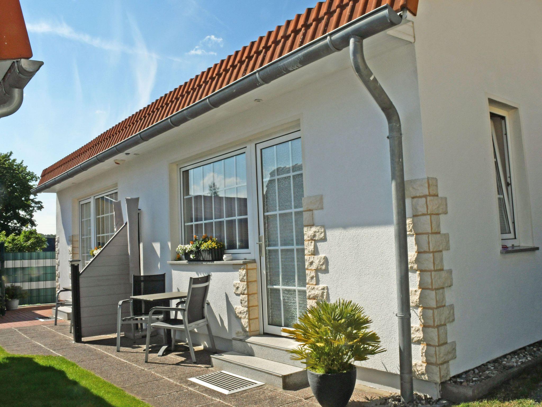 Unsere Ferienwohnungen (2 Erwachsene, komb. Wohn-/ Schlafzimmer, Küchenzeile, Bad/Dusche, Terrasse) befinden sich im Ostseebad Sellin, in neu gebauten Reihenhäusern, die sehr ruhig und sonnig liegen.