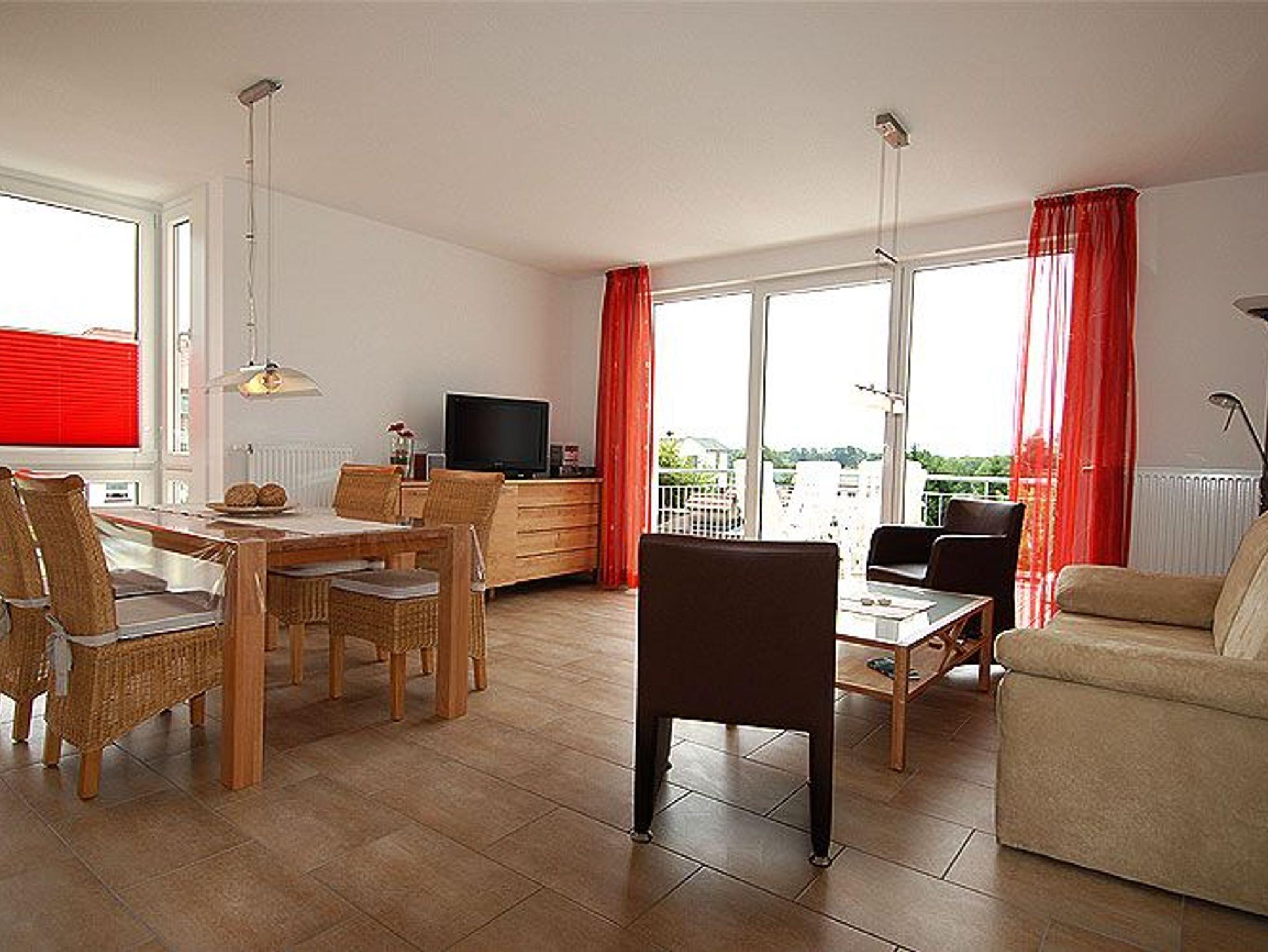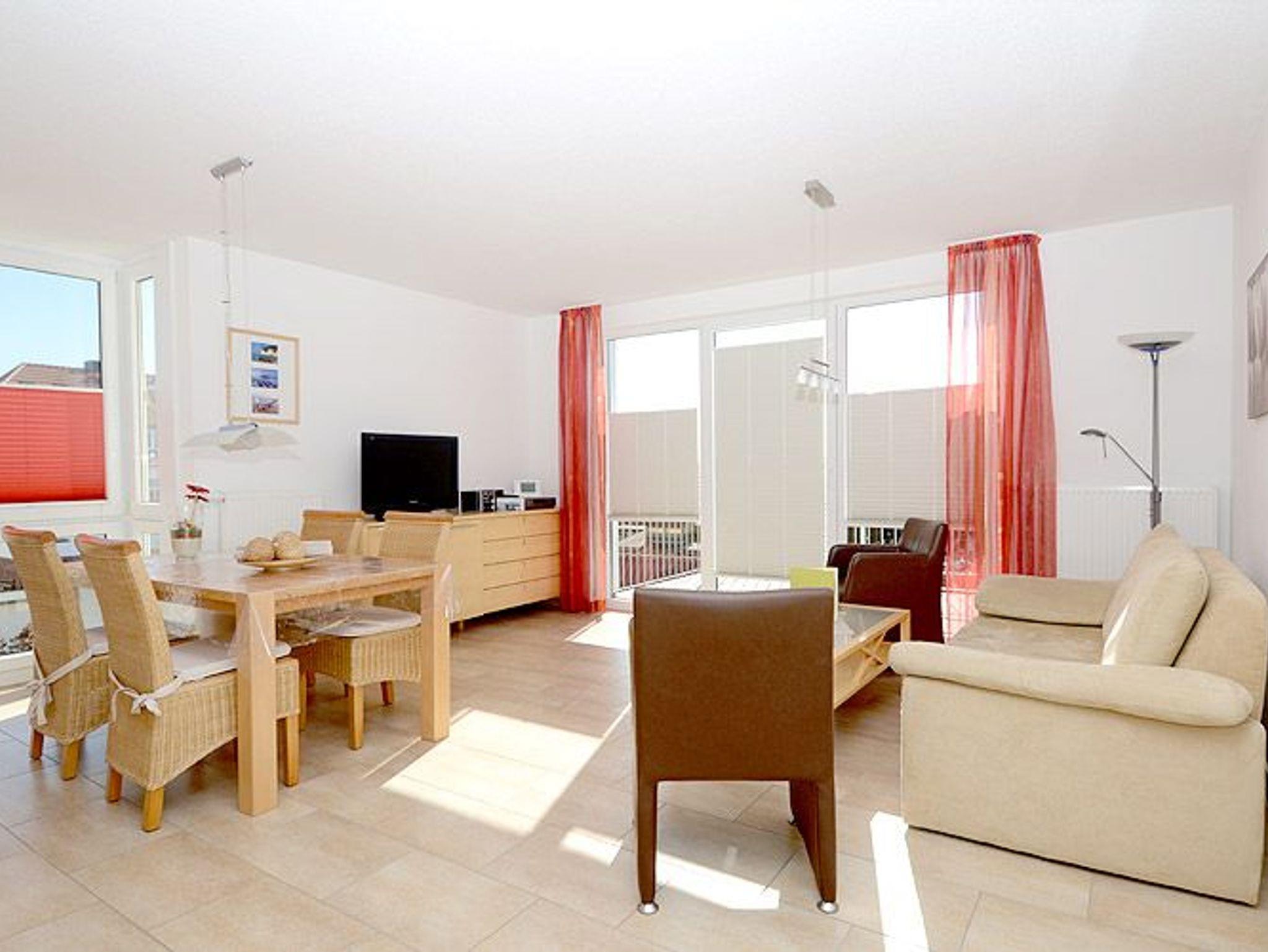 Dieses ca. 75 m² große und geschmackvoll eingerichtete 3-Raum-Appartement begrüßt Sie im 1. Obergeschoss und hat einen großen möblierten Balkon zur sonnigen Südseite.