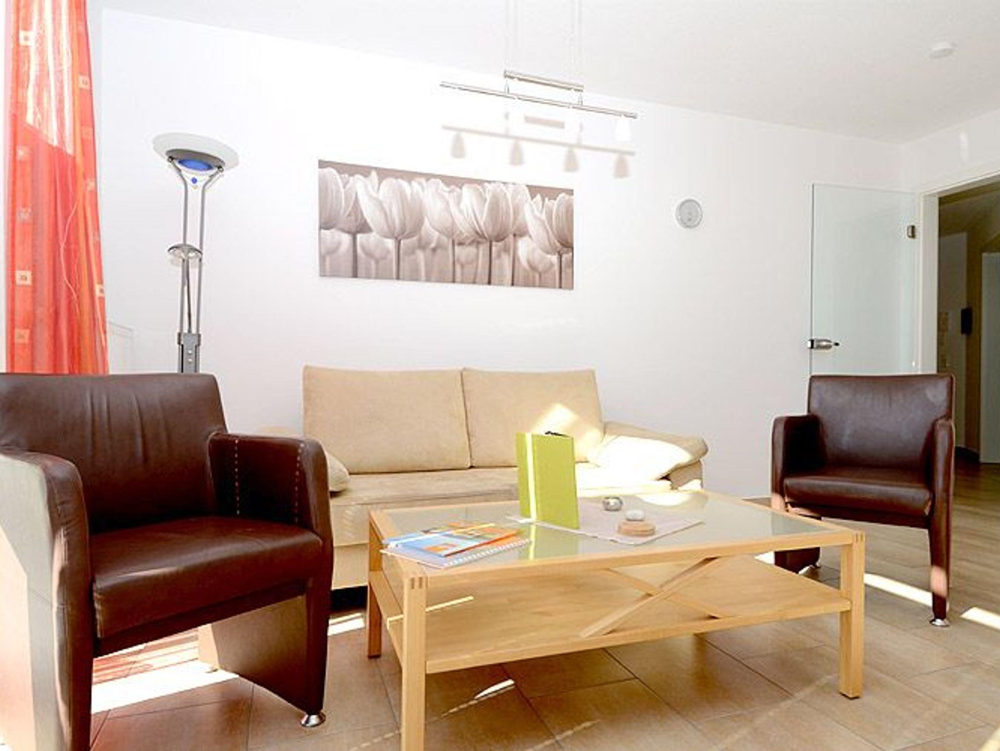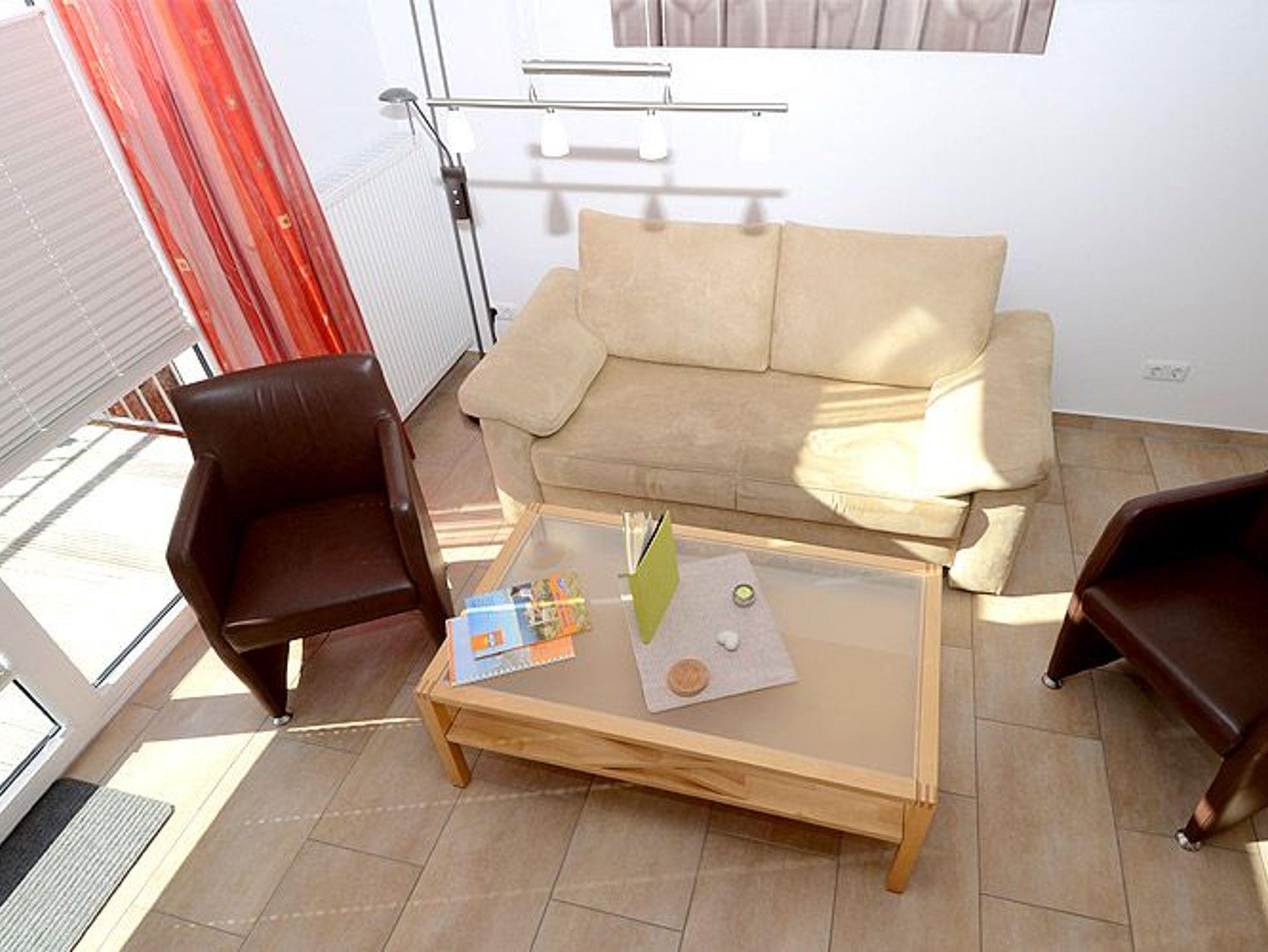 Vom Eingangsbereich aus gelangen Sie über den Flur in das modern ausgestattete Wohnzimmer. In diesem befinden sich u.a. ein Flachbild-TV, ein DVD-Player sowie eine Stereoanlage mit CD-Player. Kostenfreies W-LAN steht ebenfalls zur Verfügung.