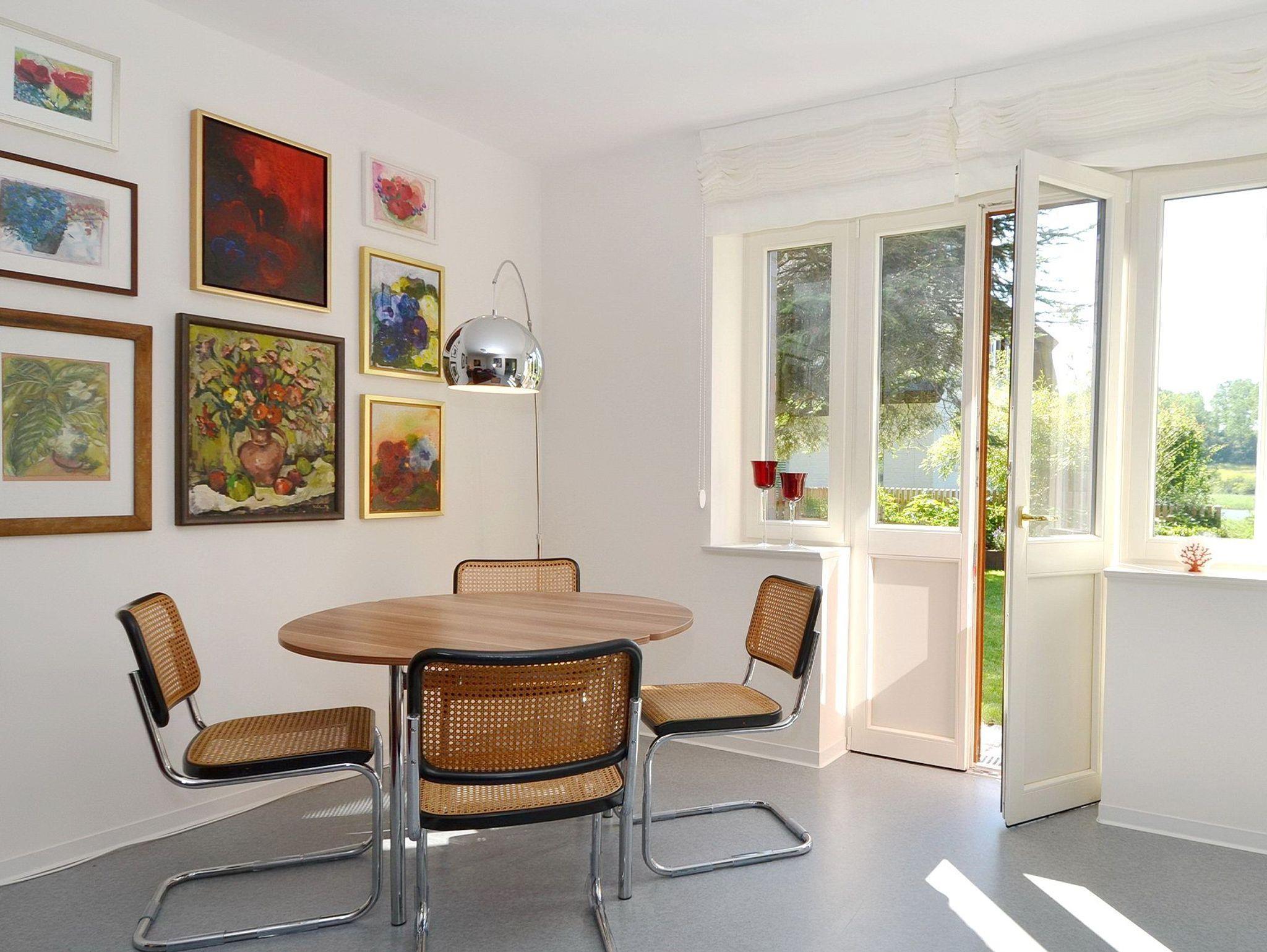 Der zur Küche hin offene Wohnraum beinhaltet einen Essplatz und eine Leder-Sitzgruppe mit einer Zweisitzercouch und 2 dazu gehörigen Sesseln sowie diverse Kunstobjekte. Vom Wohnraum aus gelangen Sie durch eine Terrassentür ins Grüne mit Gartenmöbeln und einem idyllischen Wasserblick. Ein Internetzugang per W-LAN steht zur Verfügung!