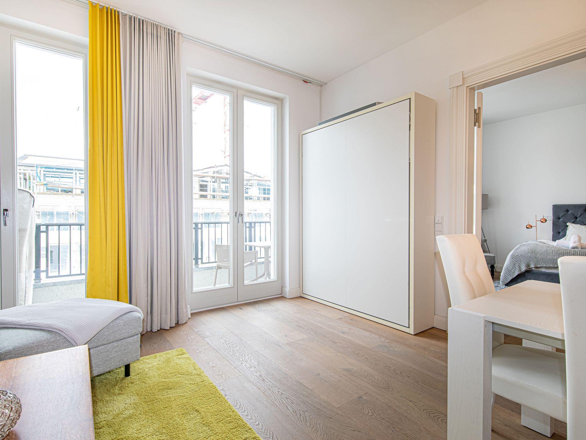 Die Ferienwohnung FIRST Galene befindet sich in der 4. Etage des Hauses FIRST Sellin und bietet auf 89 m² Platz für maximal 6 Personen. Sie verfügt über ein Schlafzimmer, ein hochwertiges Schrankbett im Wohnzimmer, sowie ein ausklappbares Etagenbett und einem Badezimmer, wodurch hier Platz für die ganze Familie vorhanden ist. Zur Ausstattung gehört ein Tiefgaragenstellplatz um Ihr Auto sicher unterzubringen. Die modern eingerichtete Küchenzeile ist mit einer Spülmaschine ausgestattet, um Ihnen das lästige Abwaschen zu ersparen.