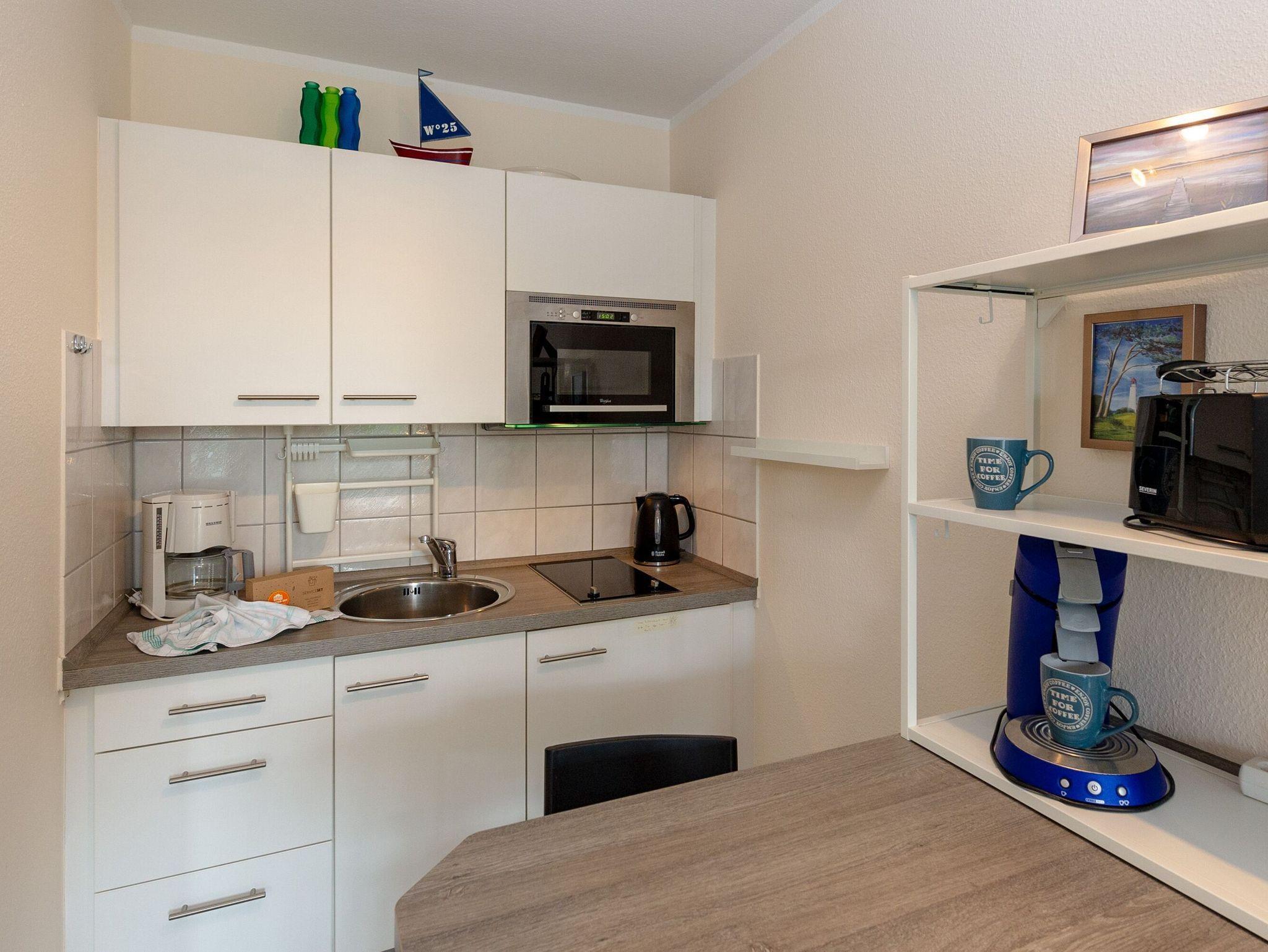 Herzlich Willkommen im gemütlichen Wohnbereich mit integrierter Küche und Ess-Theke für drei Personen. Für den guten Start in Ihren Urlaubstag sorgt ein entspanntes Frühstück mit frischen Brötchen vom Bäcker nebenan, krossen Toastbrot und duftendem, aromatischen Kaffee, je nach Ihrem Geschmack aus der Cafissimo Kapselmaschine oder aus der Standard Kaffeemaschine. Oder möchten Sie Ihren Lieblingstee aufbrühen? Dafür steht Ihnen ein Wasserkocher und eine Teekanne zur Verfügung. Nutzen Sie die Mikrowelle, den Kühlschrank mit Gefrierfach und die zahlreichen Küchenutensilien für die Kreation Ihrer Mahlzeiten.