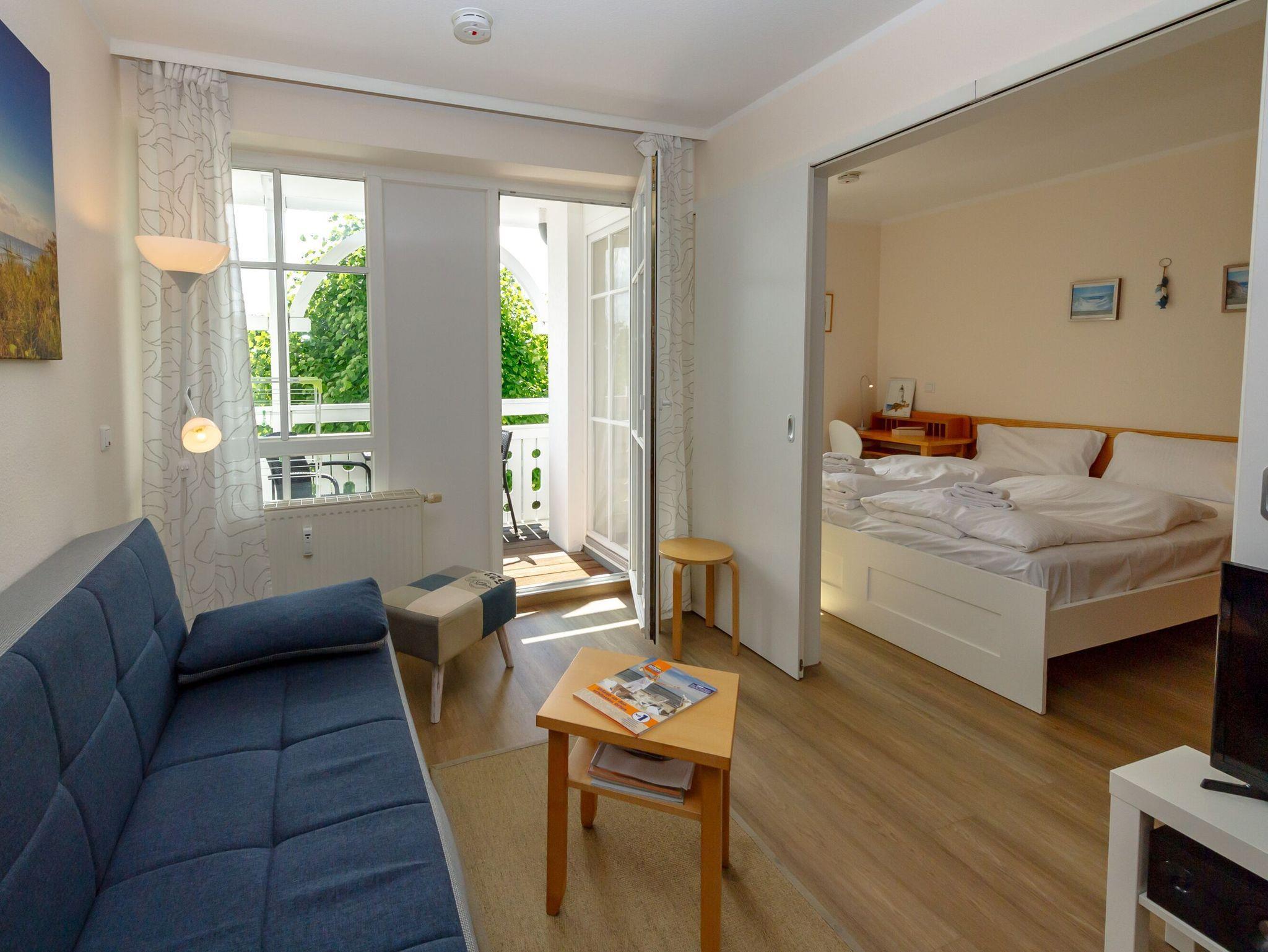 Nach einem erlebnisreichen oder entspannten Tag auf Rügen lädt das Sofa (Aufbettung für eine zusätzliche Person) zum Fernsehen, Lesen oder Musikhören ein. Oder lassen Sie Ihren schönen Urlaubstag auf dem gemütlichen Balkon mit Abendsonne und einen guten Glas Wein ausklingen.