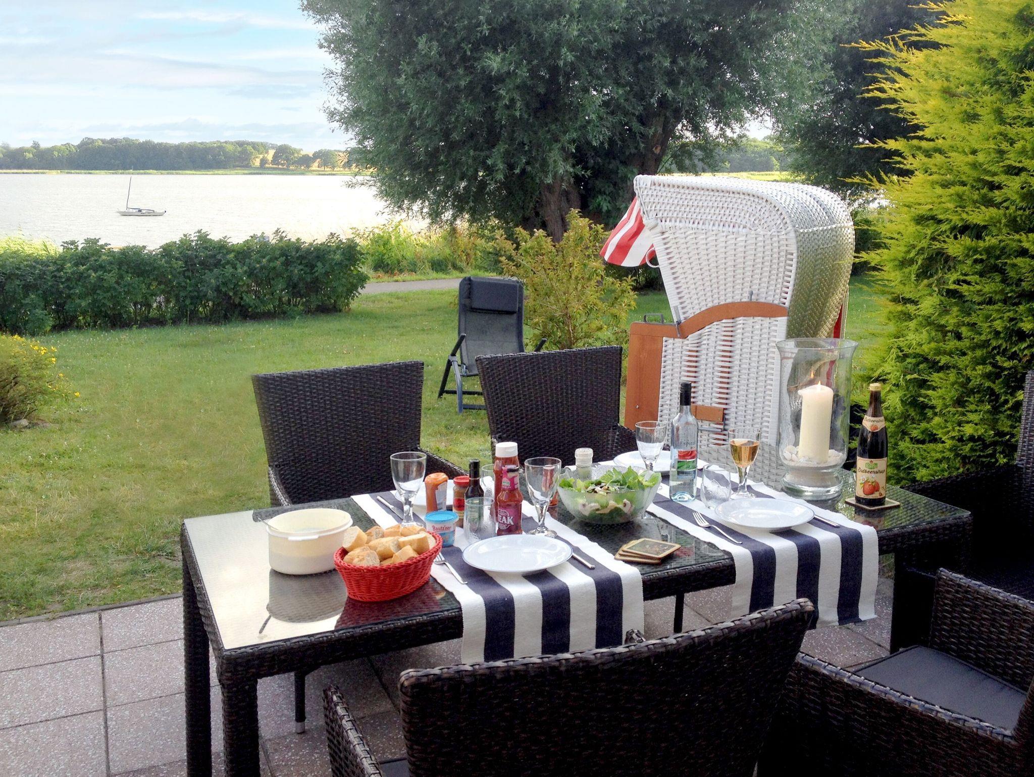 Speisen können Sie wahlweise an der gemütlichen Sitzecke gleich neben der Küche oder auf der Terrasse draußen in der frischen Ostseeluft. Die Sonne haben Sie hier vom späten Vormittag bis in die Abendstunden zu Gast und können den herrlichen Seeblick genießen.