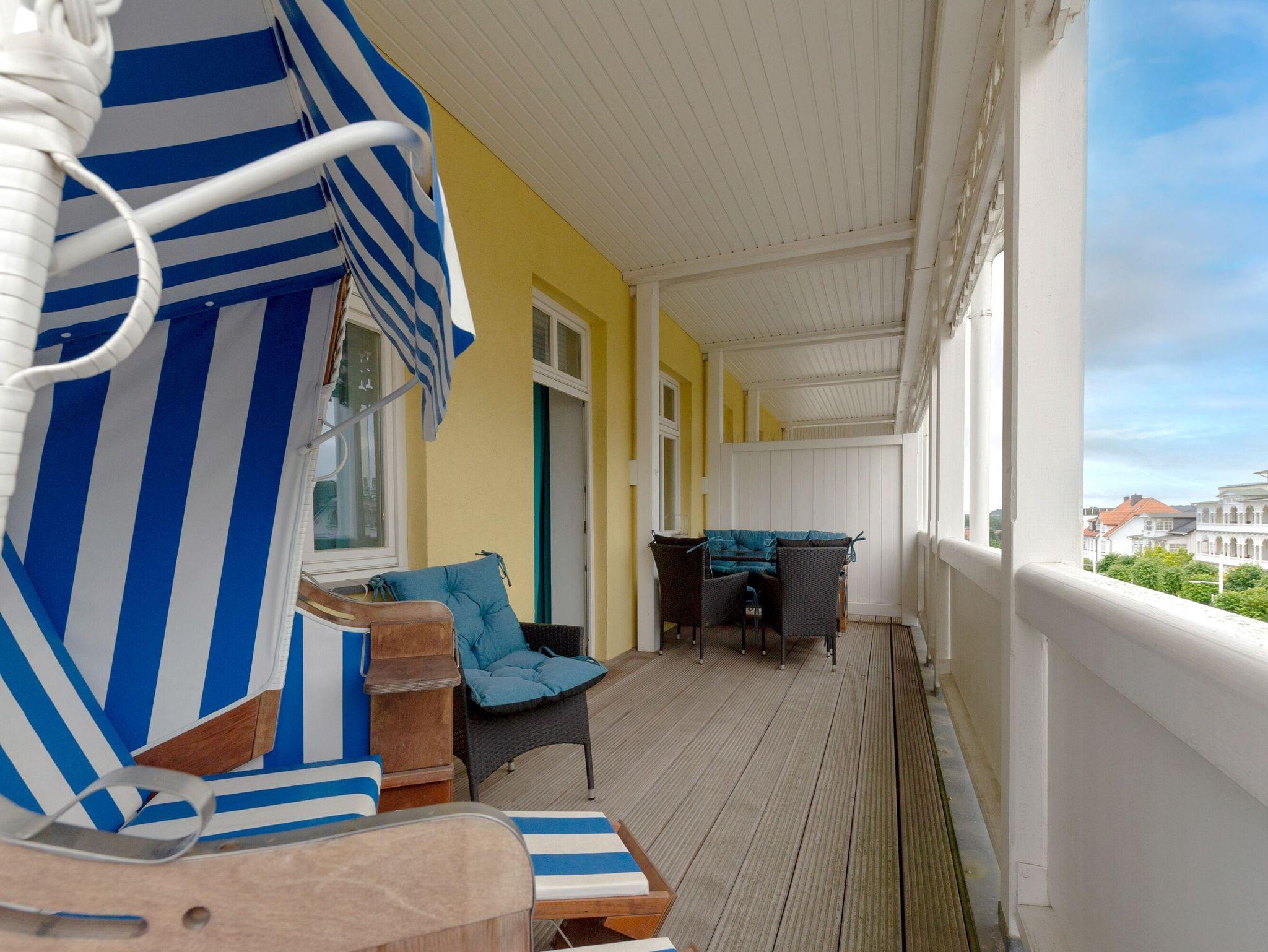 Dieses gemütliche 2-Raum-Appartement mit großem, überdachten Balkon zur Abendsonne begrüßt Sie im zweiten Obergeschoss der Villa Freya und verfügt über rund 50 m² Wohnfläche.