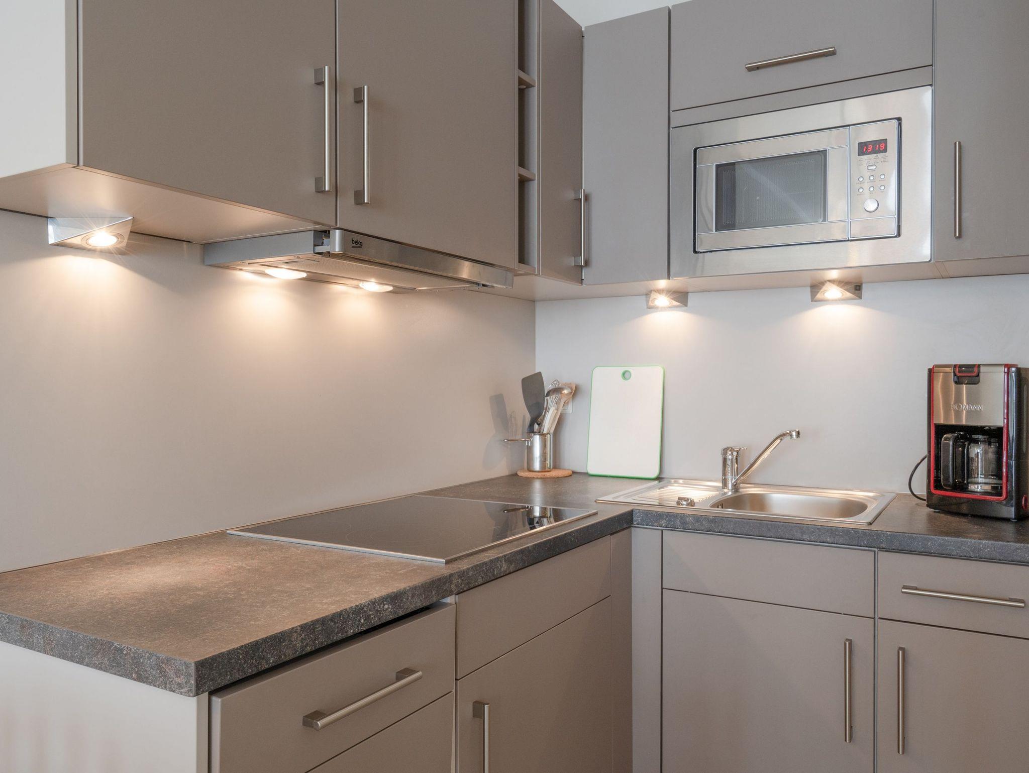 Die Ausstattung der Ferienwohnung umfasst kostenloses WLAN und eine Erstausstattung an Bettwäsche. Das Schlafzimmer verfügt über ein Doppelbett und kann durch Verdunklung für eine angenehme Nachtruhe sorgen. Im Wohnzimmer befindet sich zudem eine Doppelschlafcouch. Das Badezimmer ist mit einer Badewanne, einem WC, einem Föhn und einem Kosmetikspiegel ausgestattet. Die offene Küche lässt mit Geschirrspüler, Mikrowelle, Kaffeemaschine und Toaster keine Wünsche offen. Ein Fernseher mit 3 Sky-Sendern rundet die hochwertige Einrichtung ab. Auf dem Balkon in Südostlage können Sie den Ausblick und die Sitzgruppe genießen und sich entspannen. Die Ferienwohnung ist ein Nichtraucher-Apartment und Haustiere sind nicht erlaubt.