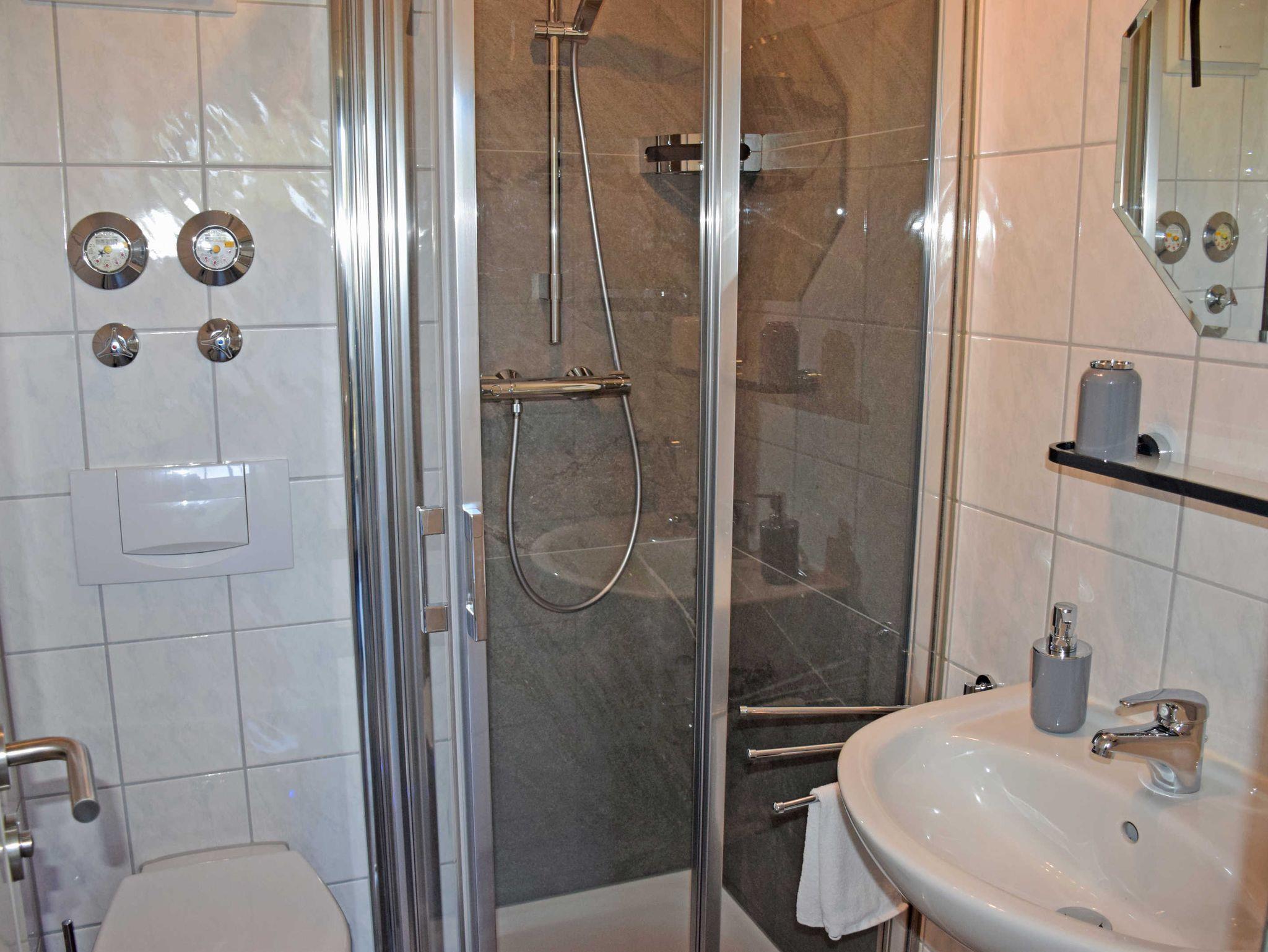 Für unsere kleinsten Gäste können Sie ein Kinderreisebett und ein Hochstuhl auf Wunsch für 5 Euro zusätzlich je Übernachtung buchen. Das moderne Bad ist mit Dusche, WC und Waschtisch ausgestattet.