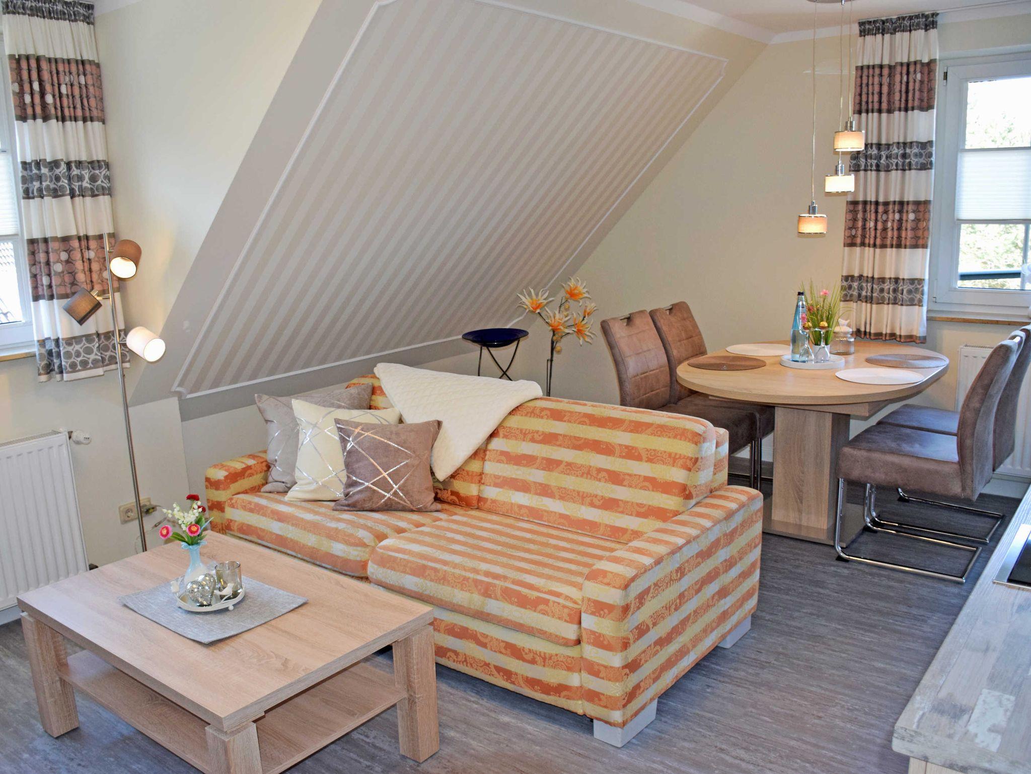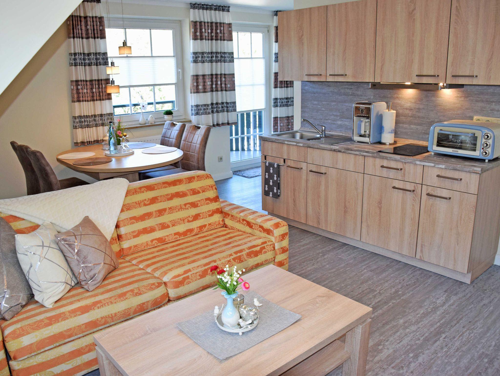 Unser moderne und liebevoll eingerichteten Ferienappartements am Granitzwald (ca. 48 qm, 1 Wohnzimmer, 1 Schlafzimmer; max. 3 Erw., mit WLAN - Anschluss) befinden sich im Obergeschoss eines 2000 neu erbauten Wohnhauses. Das Haus liegt sehr ruhig und naturnah direkt am Beginn der Garnitz mit herrlichen Misch- und Buchenwäldern. Bis zum kilometerlangen, feinsandigen Badestrand an der Ostsee sind es nur ca. 1.500 m.