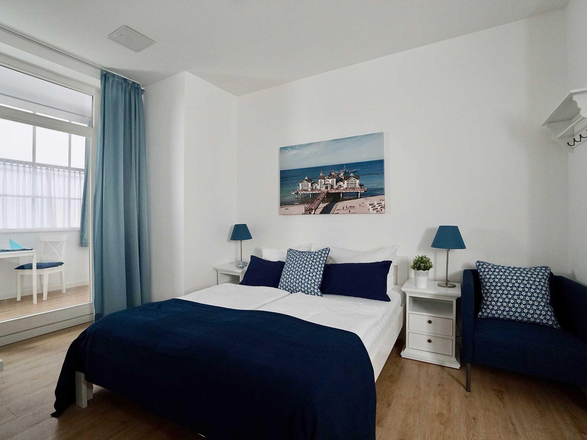 Das gemütliche Appartement Granitz (H) bietet Ihnen auf 30 - 34m² Platz für 2 Personen. Vom bequemen Doppelbett aus haben Sie einen direkten Blick auf den Flachbildfernseher. Entspannen können Sie in diesem Appartement sehr bequem auch im Wintergarten. Hier können Sie gemütlich frühstücken oder den Abend bei einem Gläschen Wein verbringen. Der WLAN-Zugang und ein SodaStream steht Ihnen kostenfrei zur Verfügung. In der modernen Pantryküche finden Sie neben einem Kühlschrank, Kaffeemaschine und Wasserkocher sogar ein 2-Platten-Cerankochfeld, um kleine Mahlzeiten zuzubereiten. Im modern gefliesten Badezimmer finden Sie neben WC und Waschbecken auch eine Dusche. Ein Babybett (bis zwei Jahre) kann bei Bedarf aufgestellt werden. Ein Fön gehört ebenfalls zur Ausstattung. Dieses Appartement liegt im Erdgeschoss, 1. oder 2. Obergeschoss mit Südost- bzw. Südwest-Ausrichtung.