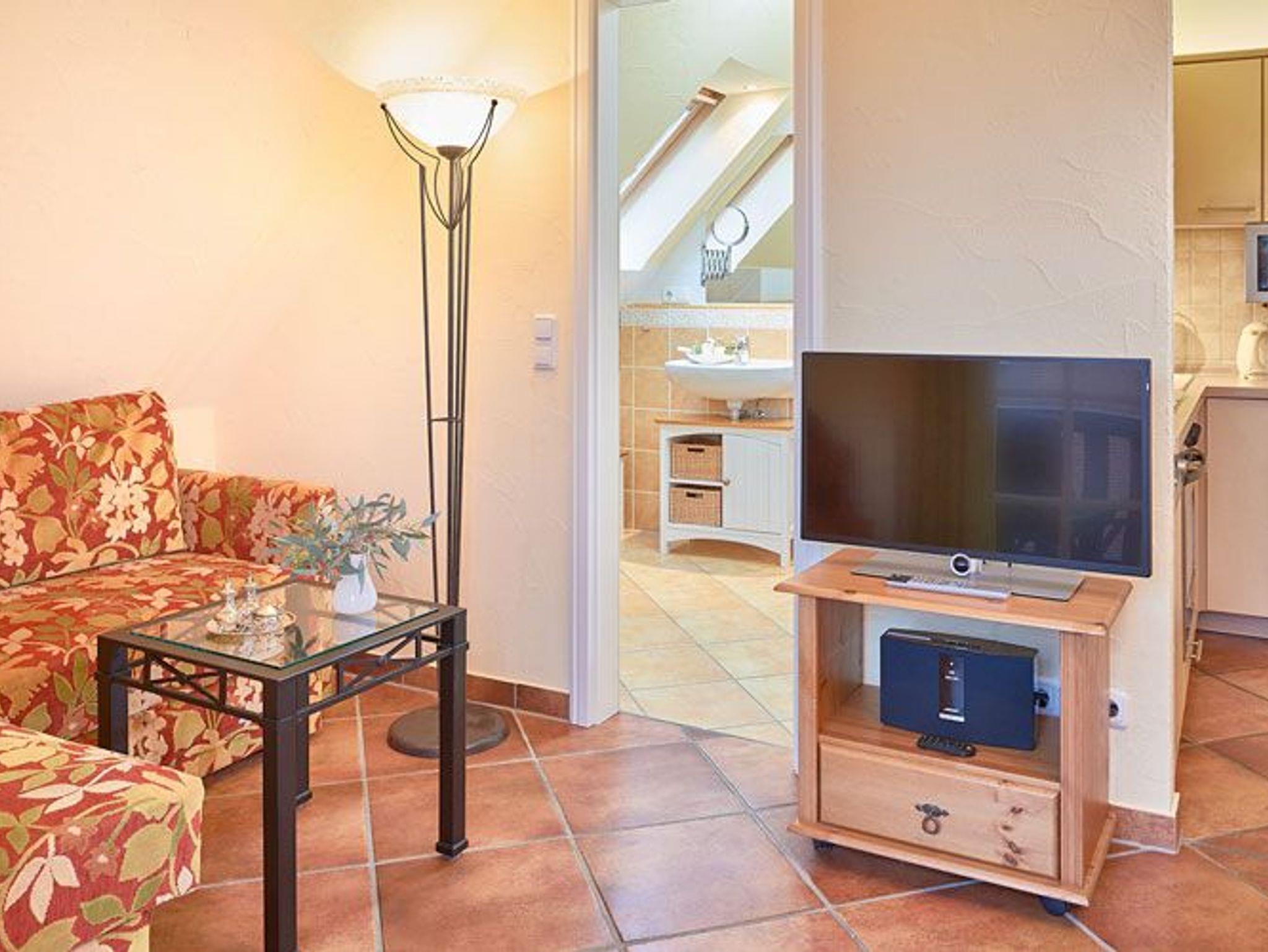 Im Wohnzimmer befinden sich eine gemütliche Eckcouch mit einem Loewe-Flatscreen-TV mit Kabel Digital Home HD-Empfang sowie eine Bose-Sound-Touch 20 - ein Spitzenklangerlebnis mit Internetradio. Sie können Ihre Musik über Smartphone oder Tablet aus per Bluetooth abspielen. Auf Wunsch stellen wir Ihnen auch einen DVD-Player zur Verfügung.