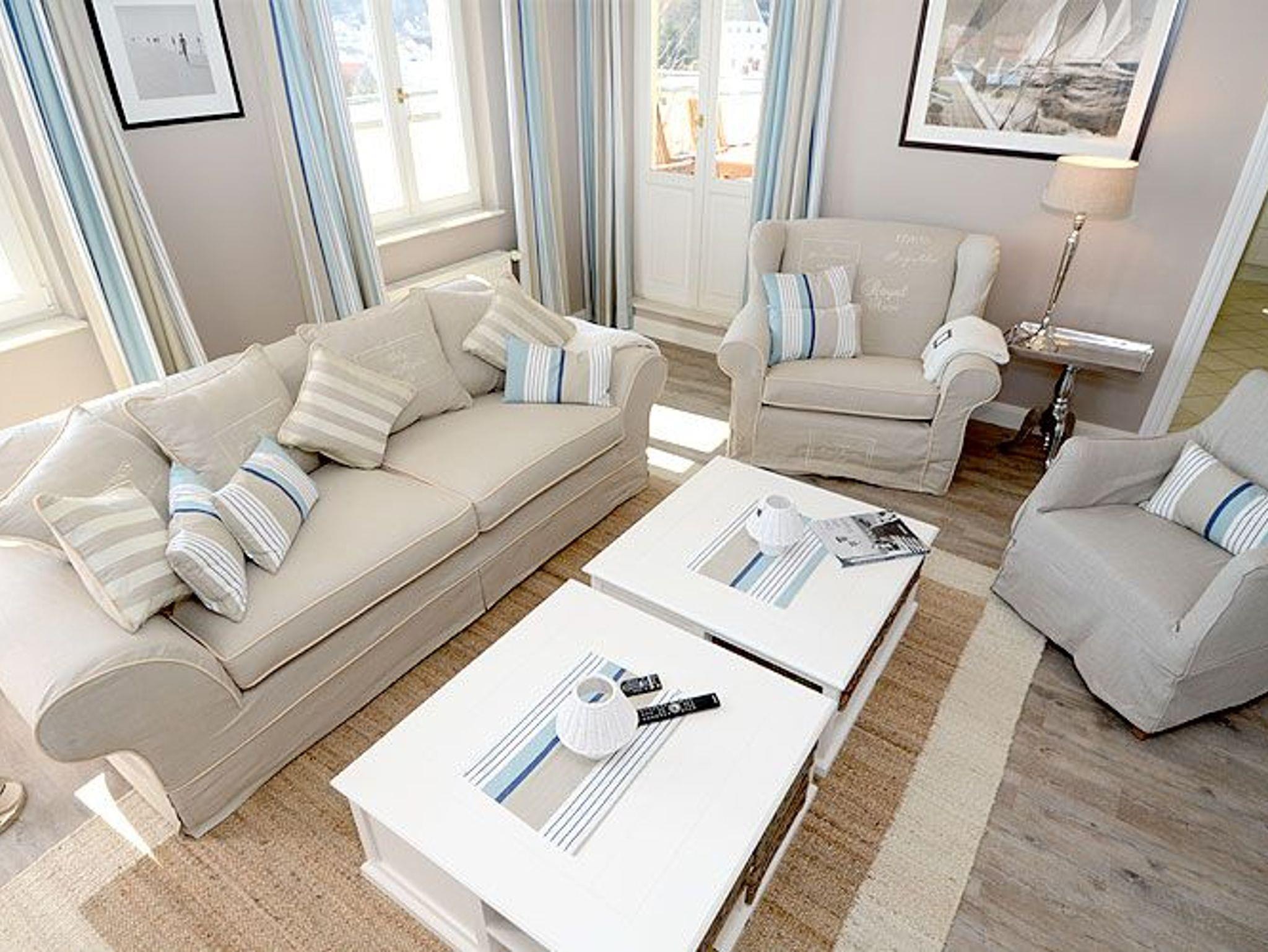 Wenn Sie für Ihr Wohlbefinden viel Raum brauchen, dann ist dieses Penthouse der ideale Ort für Ihren Urlaub. Die wunderschönen Landhausmöbel, ausgesuchte Stoffe und die warmen Erdtöne schaffen mit den leicht maritimen Akzenten ein ganz einzigartiges Wohlfühlambiente.
