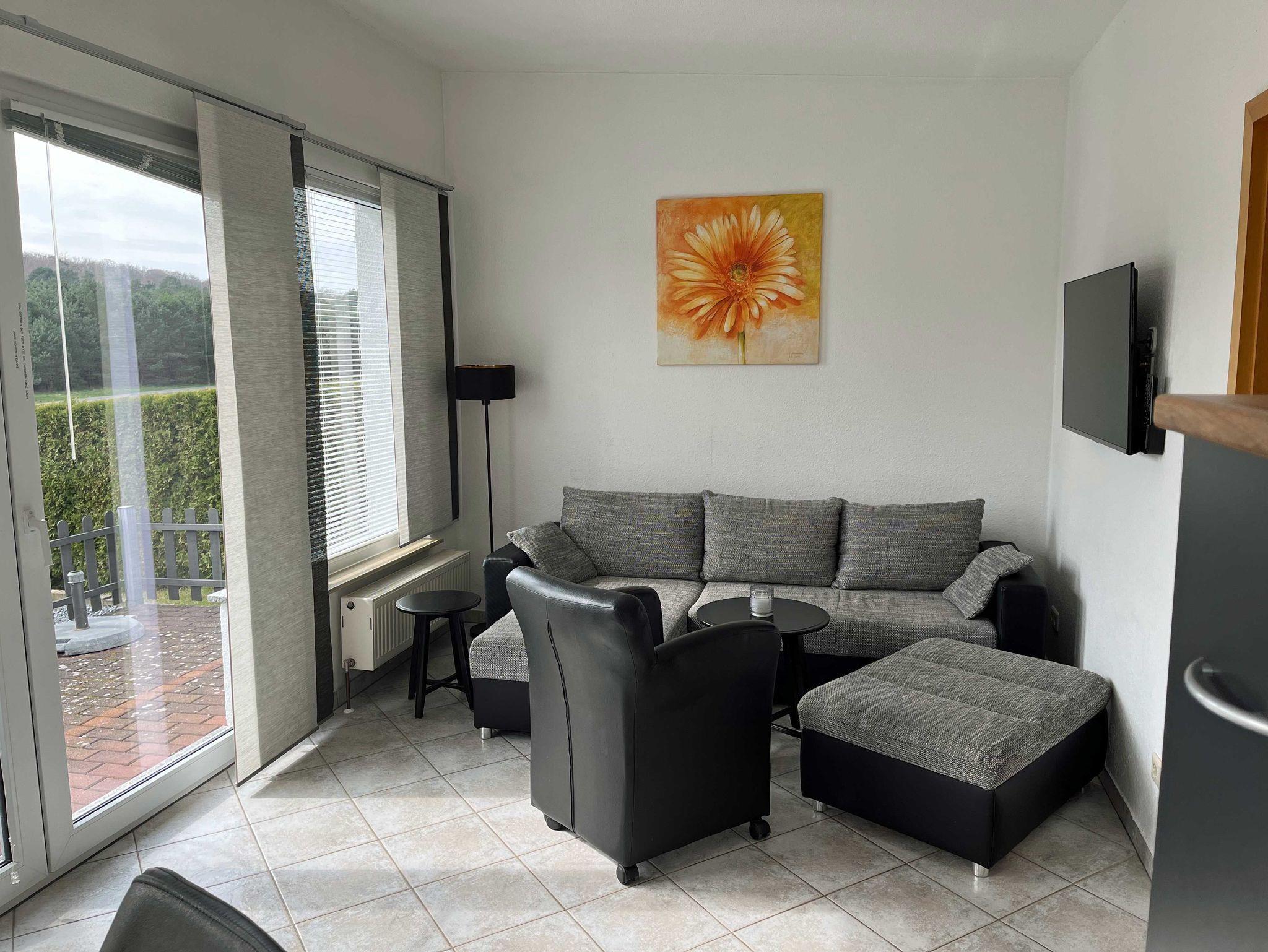 Das Ferienhaus ist ausgestattet mit einer Küche, Wohnbereich, Schlafzimmer und Bad und in allen Bereichen ist Wlan vorhanden.