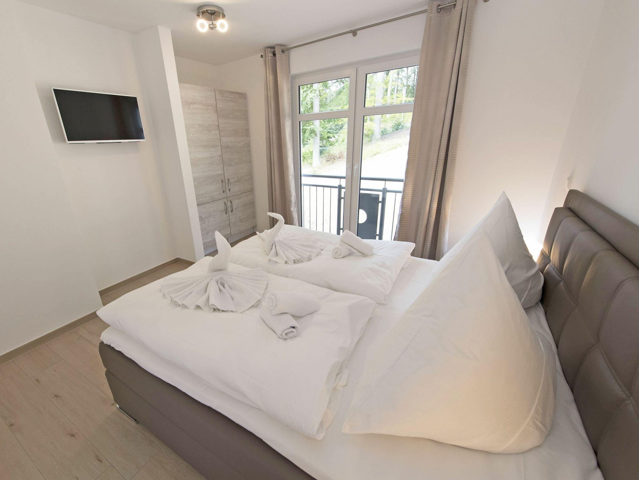 Dieses modern und stilvoll eingerichtete 3-Raum-Appartement befindet sich im 2. Obergeschoss der Villa Louisa und verfügt über einen Wohnfläche von ca. 83 m² mit möblierten Südbalkon. Mit Fußbodenheizung und bodentiefen Fenstern versehen, werden Sie sich in dieser komfortablen Nichtraucher-Ferienwohnung rund ums Jahr wohl fühlen.