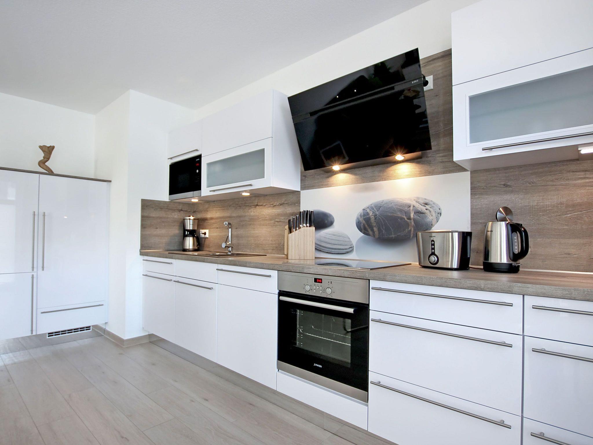 Im lichtdurchfluteten Wohn-/Essbereich erwarten Sie eine große gemütliche Sitzecke, ein Full-HD Fernseher, eine Stereoanlage mit Bluetooth für externe Geräte, eine hochwertig eingerichtete Küche mit Induktionskochfeld, Backofen, Mikrowelle, eine große Kühl-Gefrierkombination, Geschirrspüler, Kaffeemaschine, Wasserkocher, Toaster etc. sowie ein großer Esstisch.