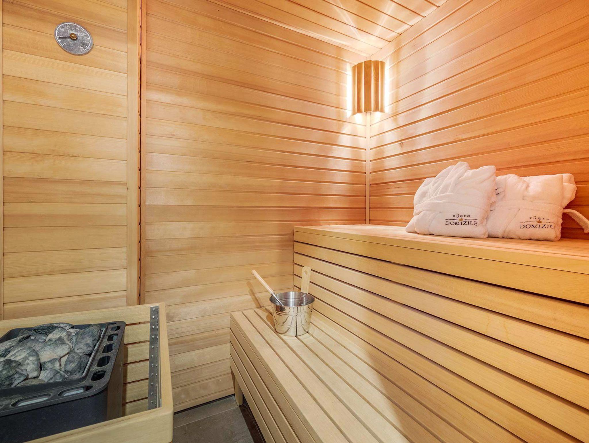 Der Wohn- und Essbereich lädt mit hochwertigen Leder- und Eichenmöbeln, integrierter Designerküche und modernster Unterhaltungselektronik zum gemeinsamen Entspannen ein. Für kuschelige Gemütlichkeit sorgen der Kamin, die Sauna mit Farblicht und eine Fußbodenheizung. Auch das stilvolle Schlafzimmer und das Interieur des Masterbads mit seinem Designwaschtisch und der ebenerdigen Dusche werden Sie begeistern. Auf der südwestlich ausgerichteten Terrasse stehen Ihnen bequeme Sitzmöbel und ein BBQ-Grill zur Verfügung.