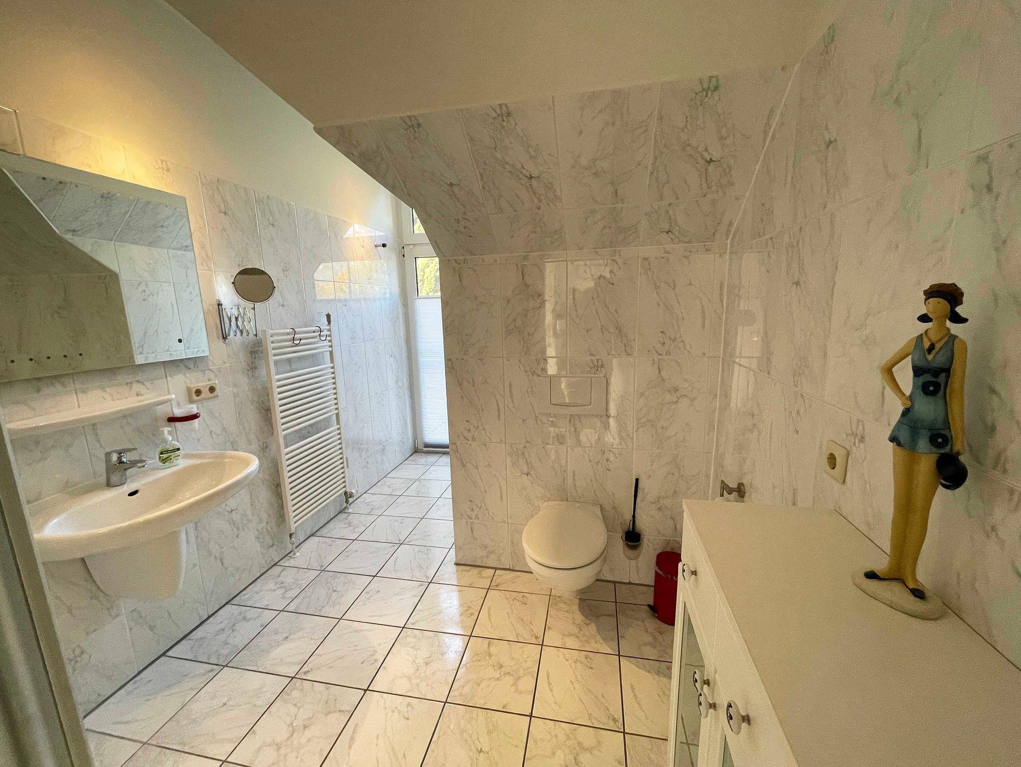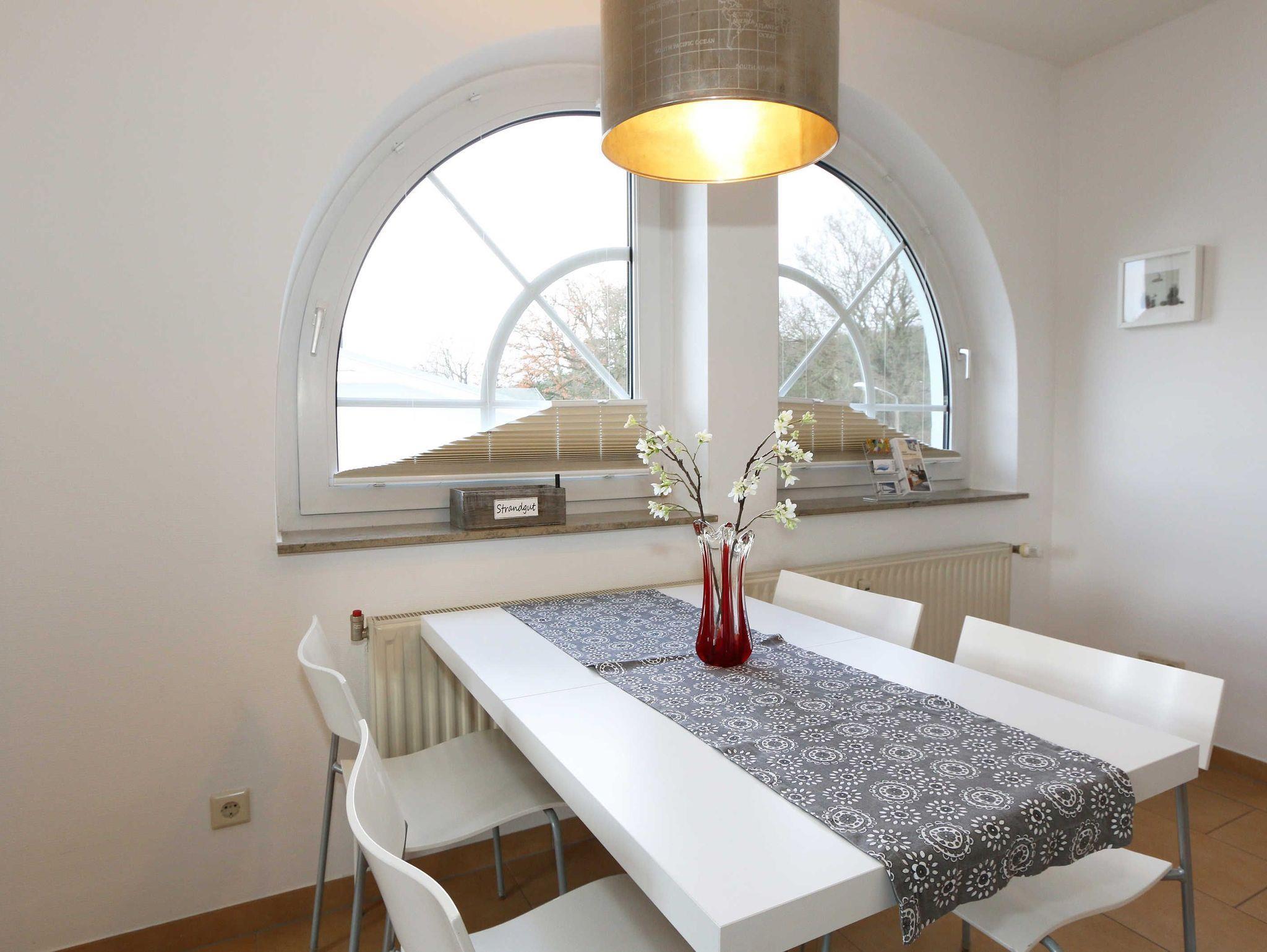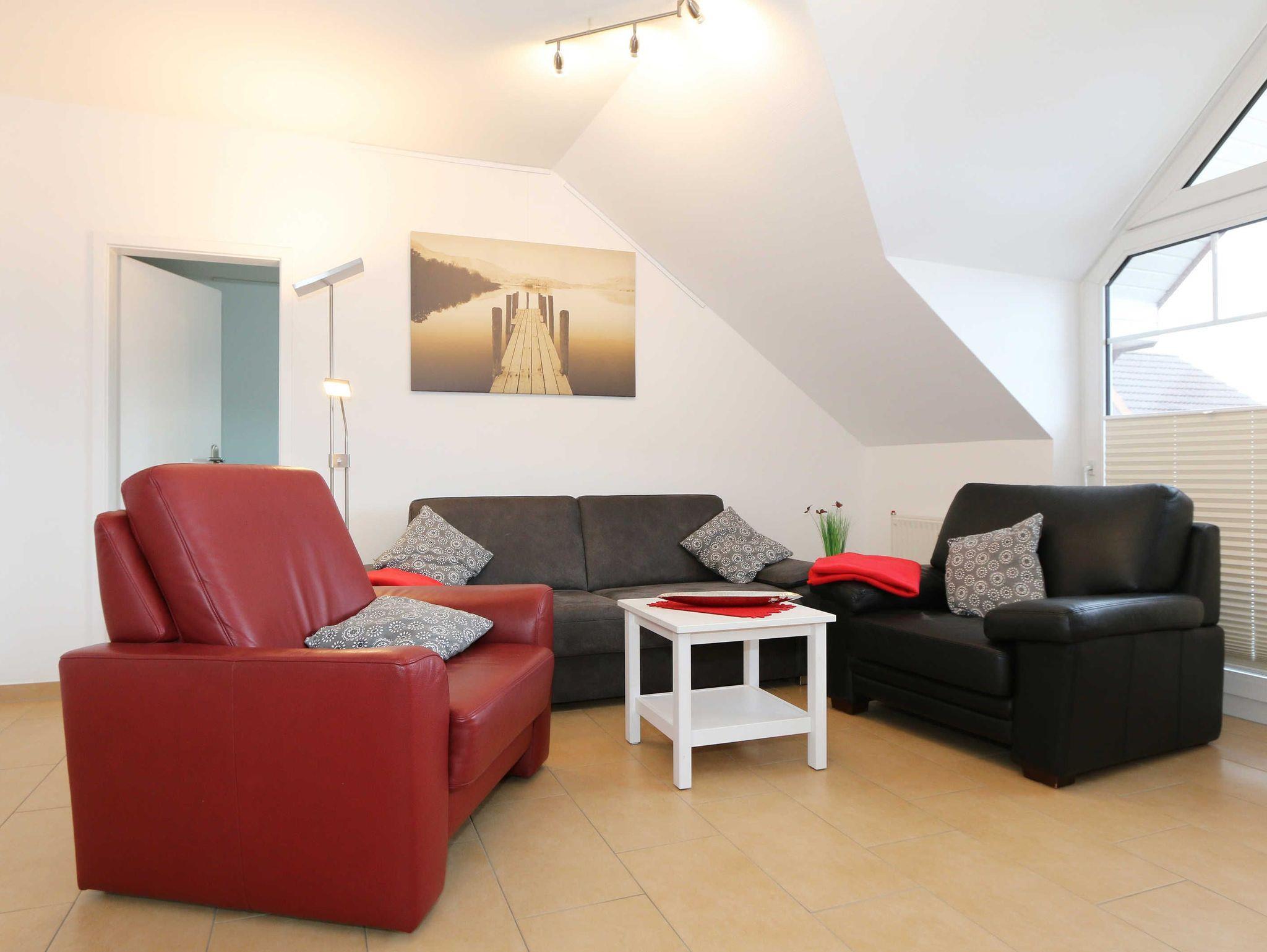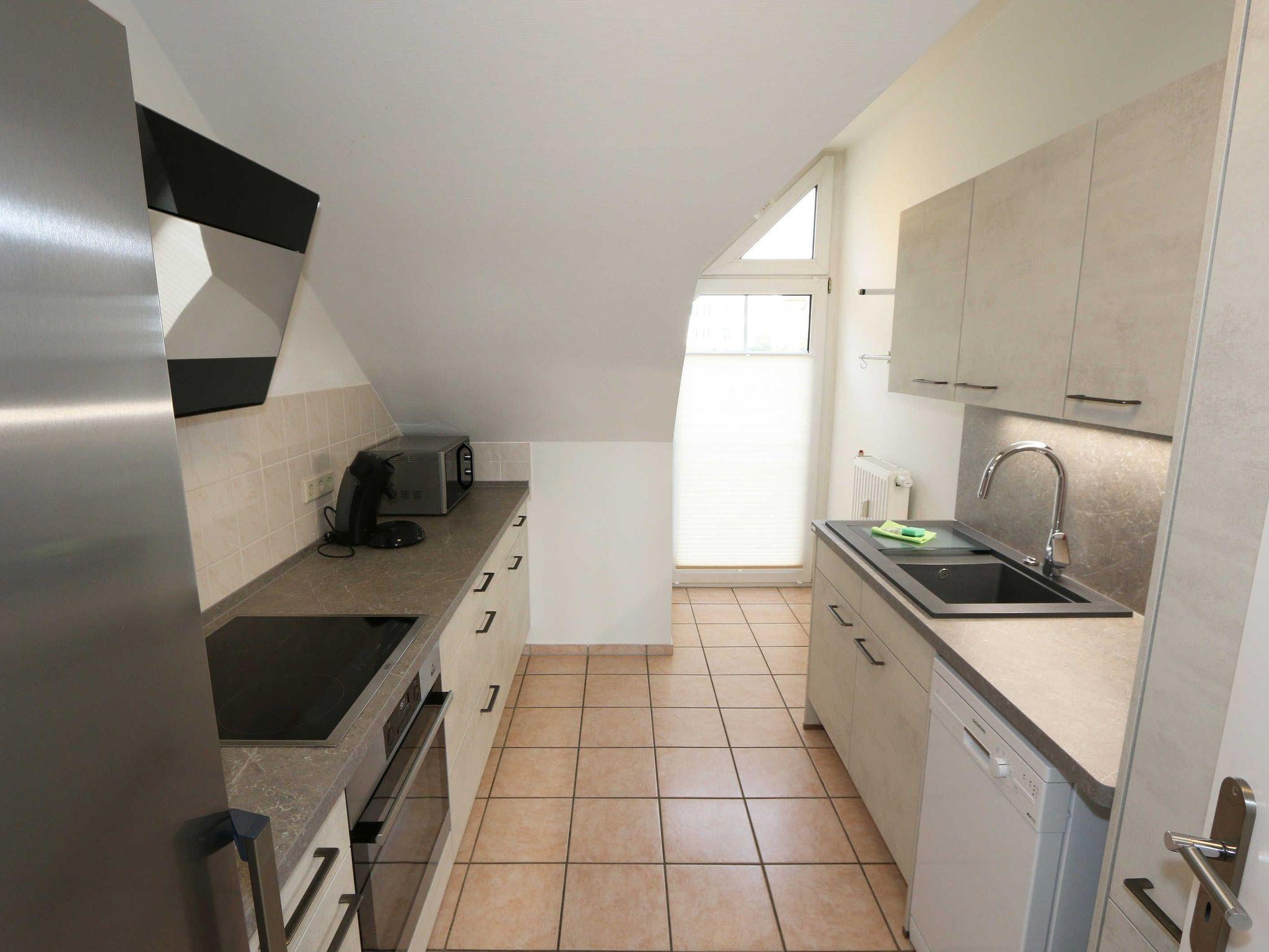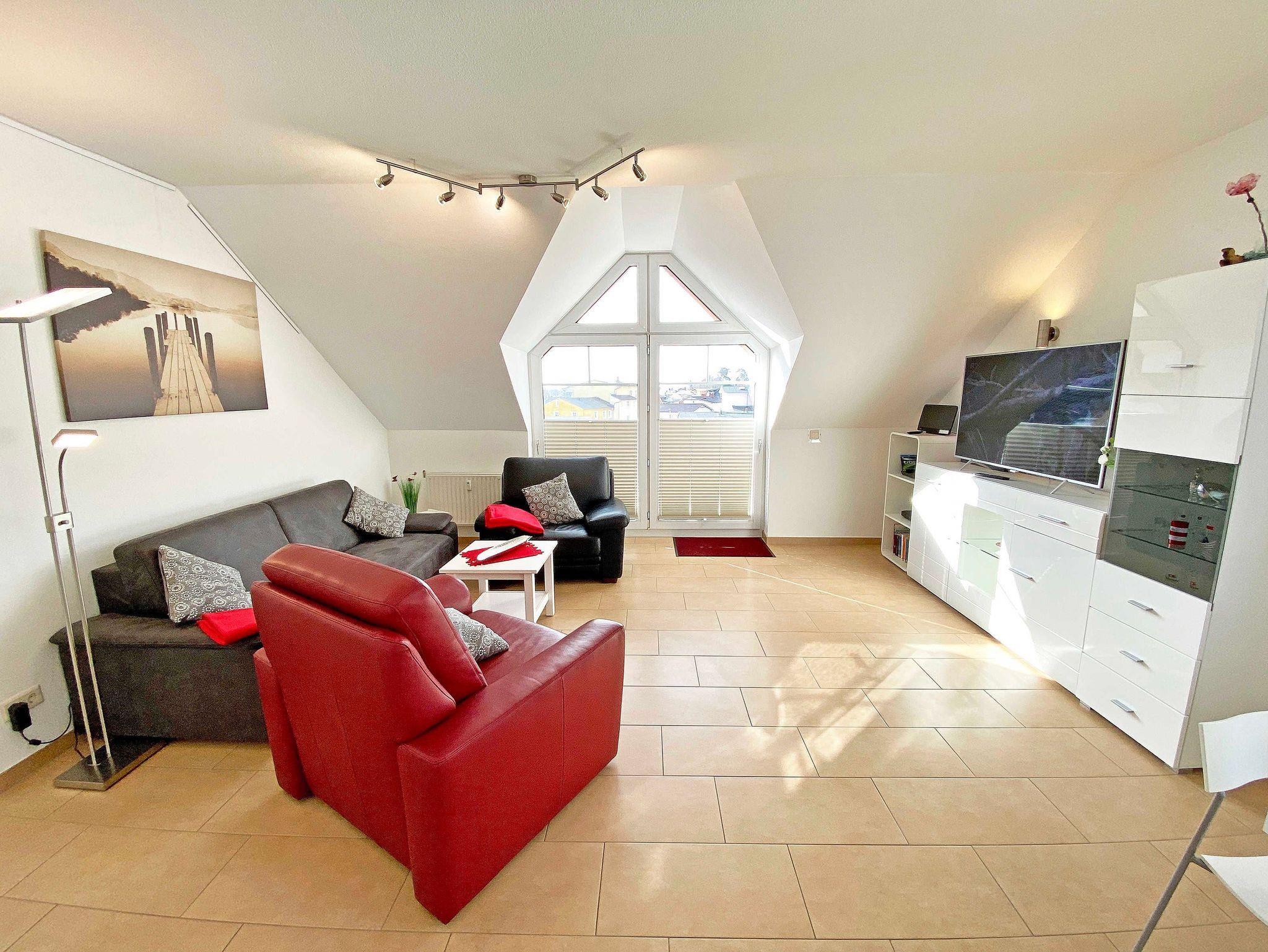 Wir möchten Sie in unsere modern und geschmackvoll eingerichtete Ferienwohnung einladen. Die Nichtraucherwohnung befindet sich in der 2. Etage im Dachgeschoss des Hauses und bietet mit Ihren ca. 60 m² ausreichend Platz für 2 bis 4 Erwachsene. Der großzügige Wohnbereich ist mit einer gemütlichen Schlaf-Couch (Aufbettung für die 3./4. Person, 1,40m x 2,00m), 2 Leder-Sesseln, eine Leselampe und einem Couchtisch ausgestattet. Ein Sideboard mit Smart-TV, Blue Ray Player und Mini-Stereo-Anlage mit USB-Anschluss runden diesen Bereich ab. Auch im Urlaub müssen Sie nicht auf das Internet verzichten. Der WLAN-Anschluss ist für Sie inklusive. Für das gemeinschaftliche Vergnügen finden Sie in der Wohnung zudem Gesellschaftsspiele und eine kleine Auswahl an Urlaubslektüre. Der erweiterbare Esstisch mit 4 Stühlen bietet genug Platz, um alle Mahlzeiten einzunehmen. Vom Wohnbereich gelangen Sie auf den bestuhlten und kleinen Süd-Balkon. Die bodentiefen Fenster sorgen für eine freundliche, lichtdurchflutete Atmosphäre. Für Ihren erholsamen Schlaf finden Sie im Schlafzimmer ein Doppelbett (1,80m x 2,00m) nebst Nachttischablagen. Der Kleiderschrank bietet genug Platz für Ihre Urlaubsgarderobe. Für die kleinen Gäste ist im Schlafzimmer das Aufstellen eines Kinderreisebettes möglich. Hier finden Sie auch einen weiteren Smart-TV, welcher aber nur zum Streamen genutzt werden kann. Ein Hochstuhl sowie ein Kinderreisebett (ohne Matratze und Bett-Inlett) stehen für Sie kostenlos zur Verfügung. Die separate Küche ist komplett eingerichtet und bietet mit einem 4 Zonen-Ceranfeld, einen Backofen, einen Geschirrspüler, eine Kühl-/Gefrier Kombination, einer Mikrowelle, einer Kaffee- und eine Senseo-Kaffeepad-Maschinen, einen Wasser- und Eierkocher, einen Toaster sowie vielen weiteren Küchenutensilien alles, worauf man auch zu Hause nicht verzichten möchte. Das großzügige Bad mit Tageslicht verfügt über einen Waschtisch, WC, Dusche, Kosmetikspiegel, Fön und einer Handtuch-Heizung. Insektenschutzgitter sind in den Räumlichkeiten vorhanden. Im Keller des Hauses können Sie - gegen eine Extragebühr - eine Waschmaschine und Trockner nutzen. Hier können Sie auch Ihre Fahrräder einschließen. Den eigenen Stellplatz für Ihren PKW Nr. 13 finden Sie auf dem Grundstück. Ein gern gesehener Gast ist gegen eine Gebühr auch Ihr 4-Beiner. Die Erstausstattung eines Wäschepaketes (komplette Bettwäsche, 1 Duschhandtuch, 1 kleines Handtuch) können Sie bis 14 Tage vor Anreise gegen einen Aufpreis dazu buchen oder durch eigene ergänzen. Ab 2 gebuchten Paketen erhalten Sie einmalig 1 Geschirrhandtuch und 1 Duschvorleger dazu.