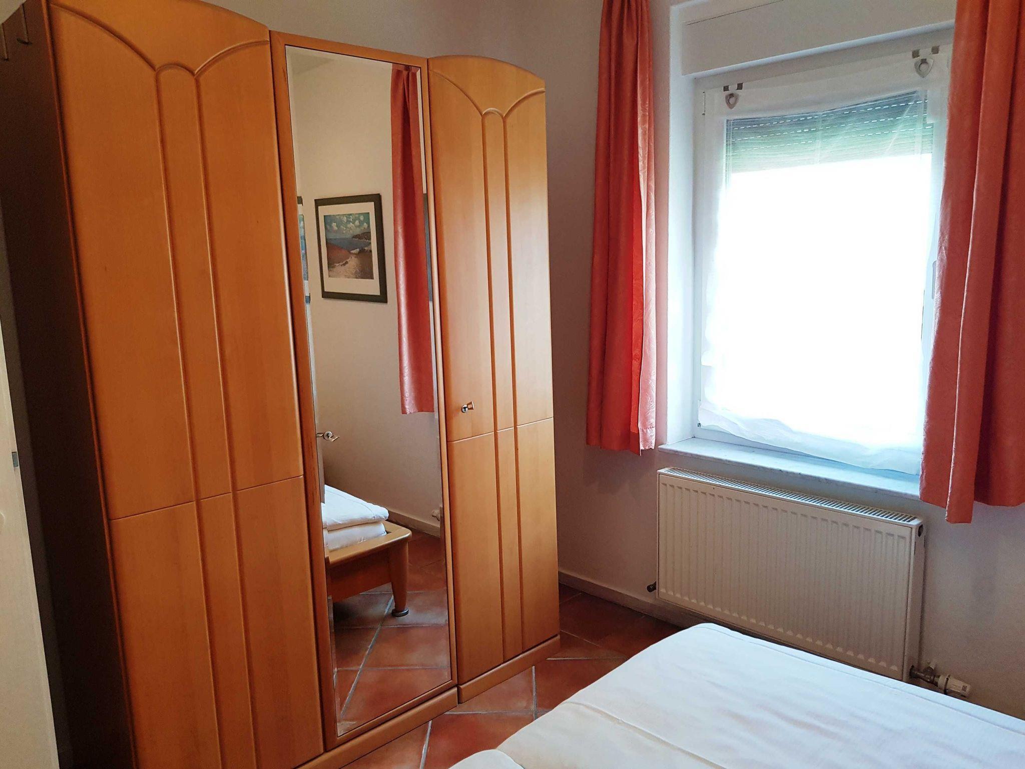 • 1 Schlafzimmer mit großem Doppelbett. 1 kleines Zimmer mit Einzelbett.