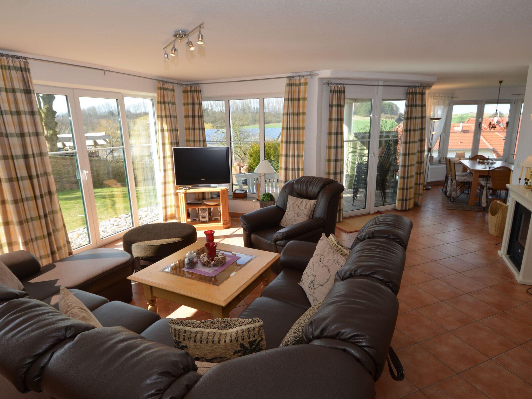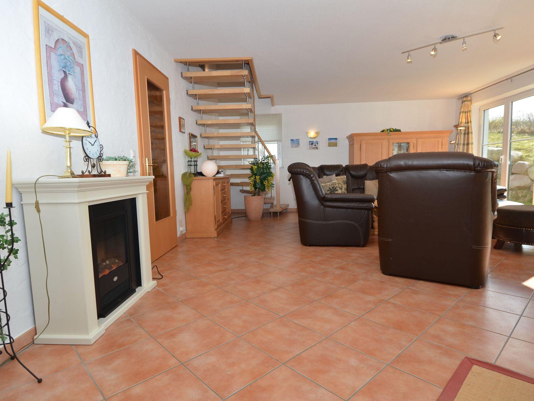 Im Wohnzimmer befinden sich eine große Couchgarnitur, ein Flachbild-Fernseher, eine Stereoanlage mit CD-Player und ein elektrischer Kamin für die besonders romantischen Stunden. W-LAN ist kostenfrei verfügbar.