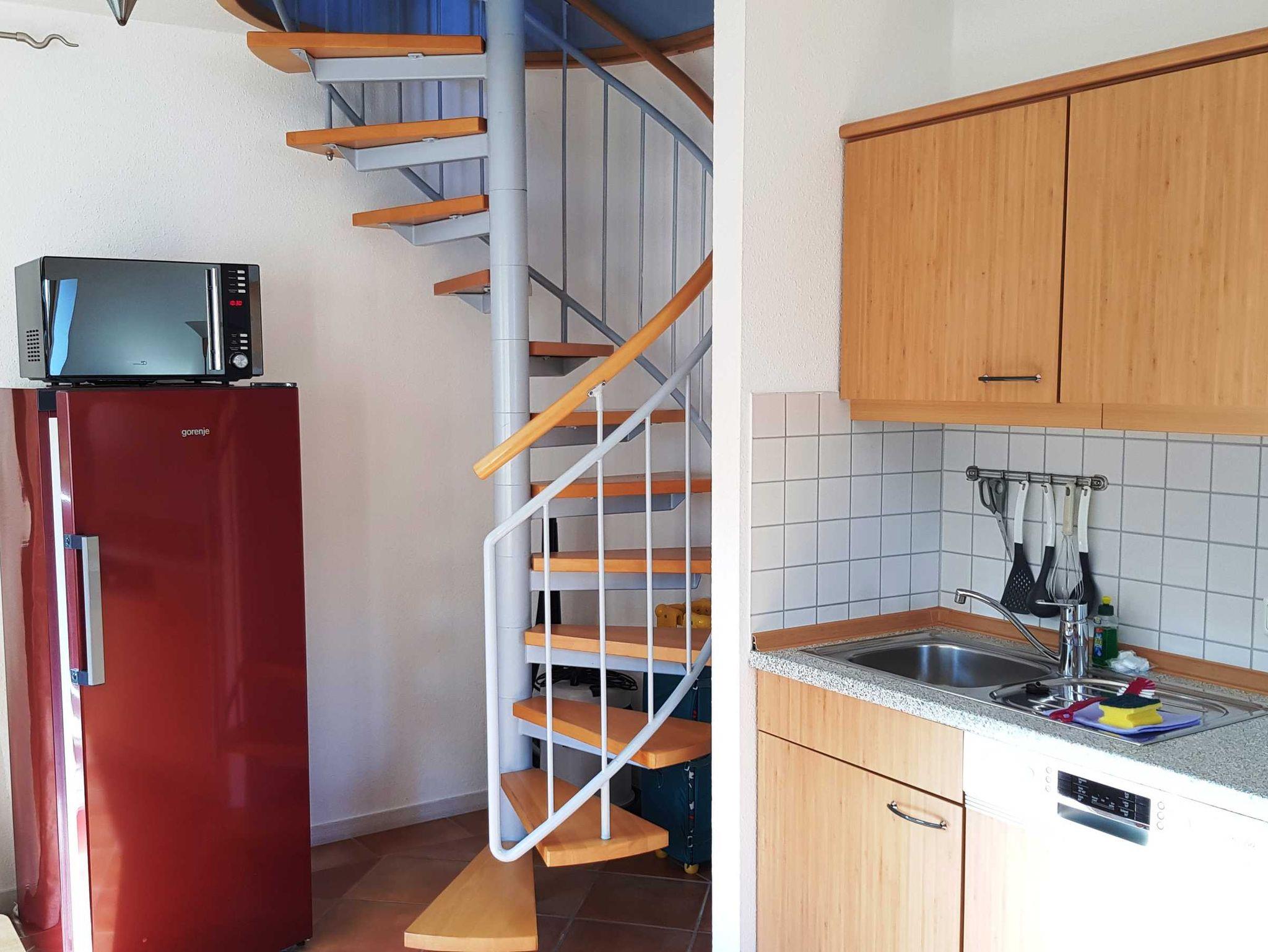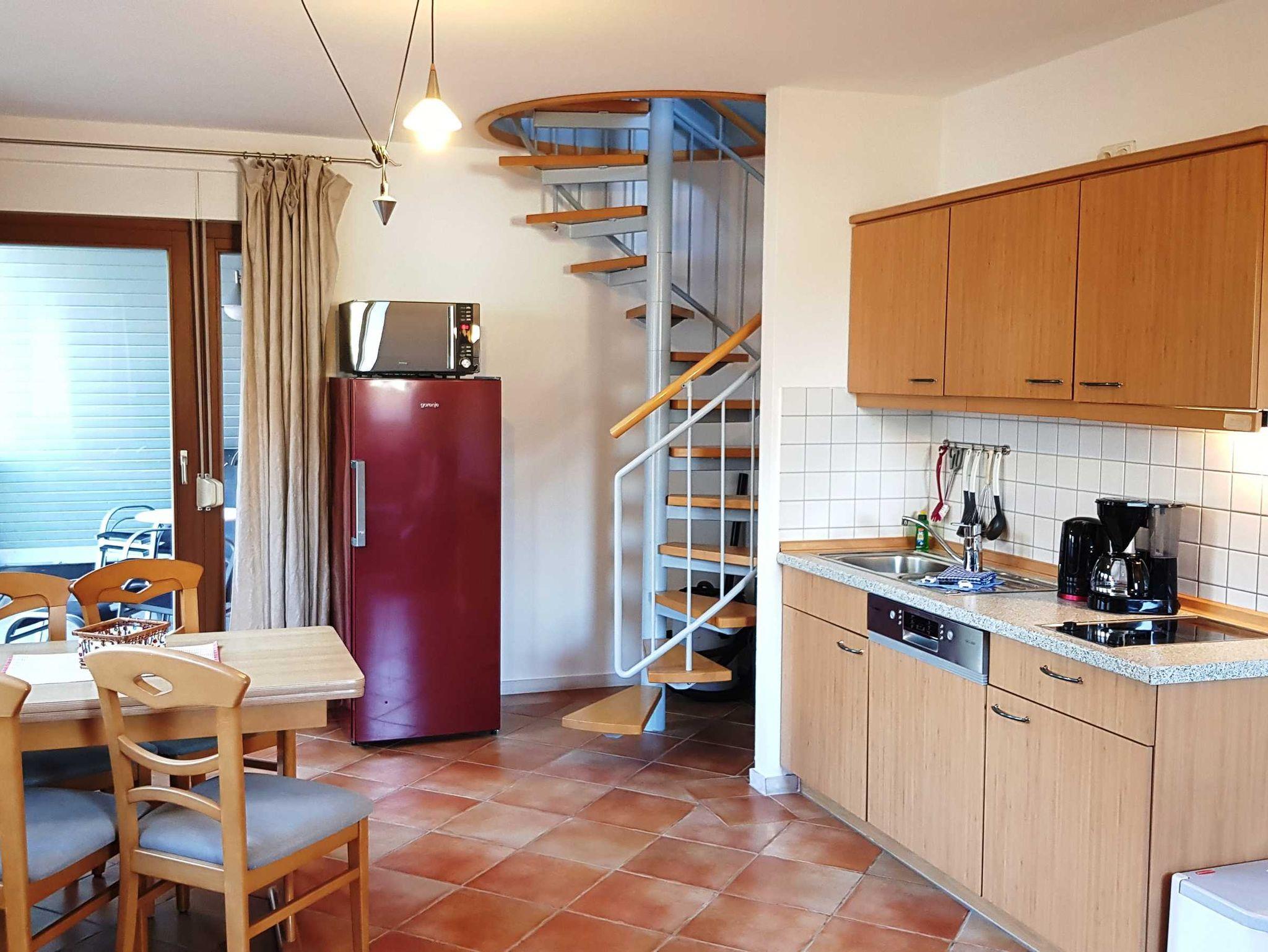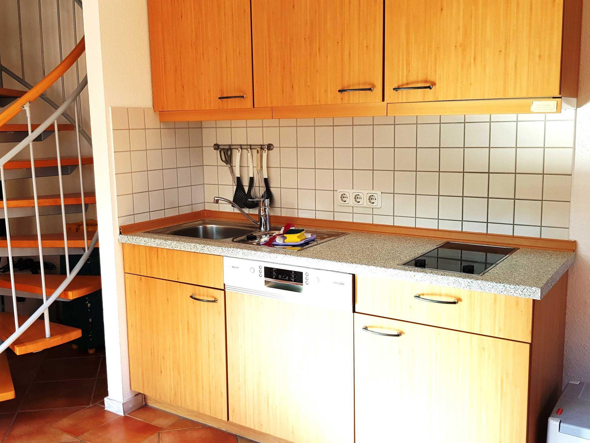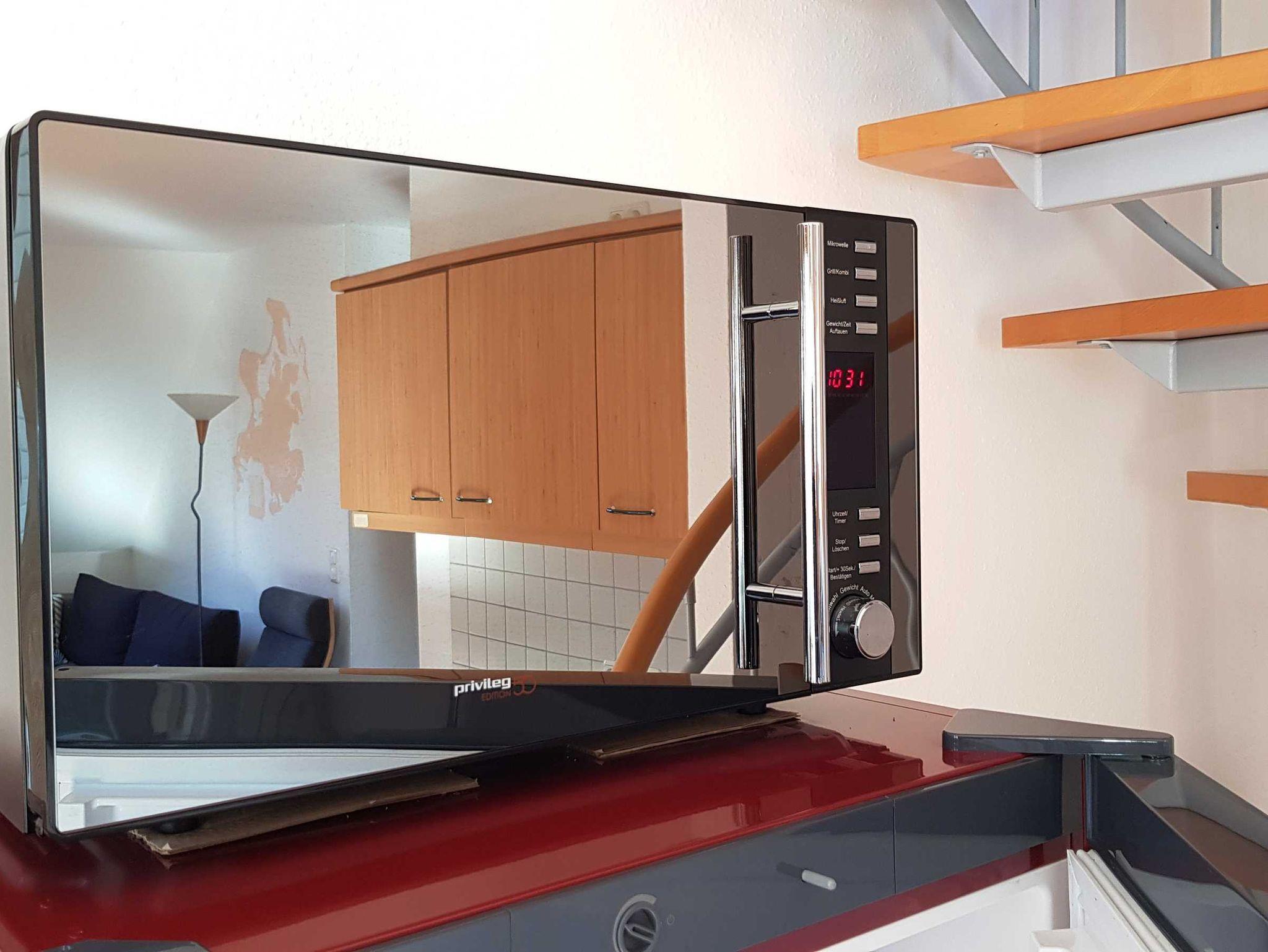 Die Küchenzeile ist komplett ausgestattet mit Mikrowelle, Geschirrspüler und Kühlschrank mit Gefrierfach. Alle nötigen Küchenutensilien, sowie ausreichend Besteck sind vorhanden. WLAN und Telefon ins deutsche Festnetz stehen frei zur Verfügung.