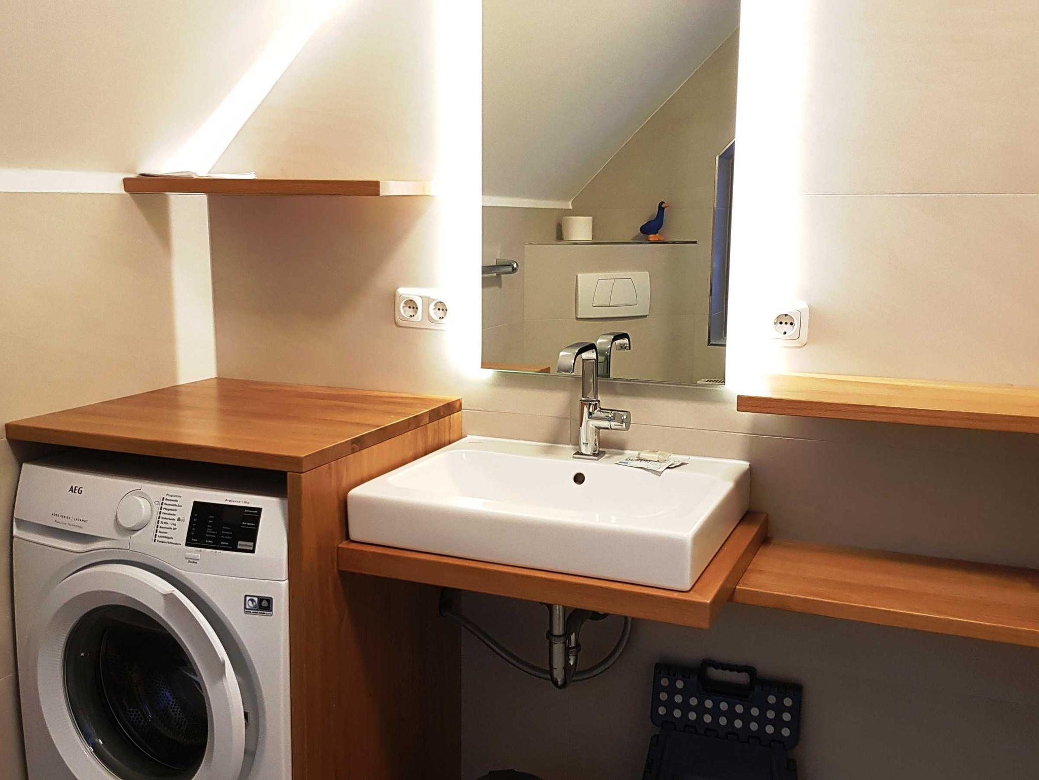 Münzwaschmaschine und -trockner stehen im Keller des Hauses zur Verfügung.