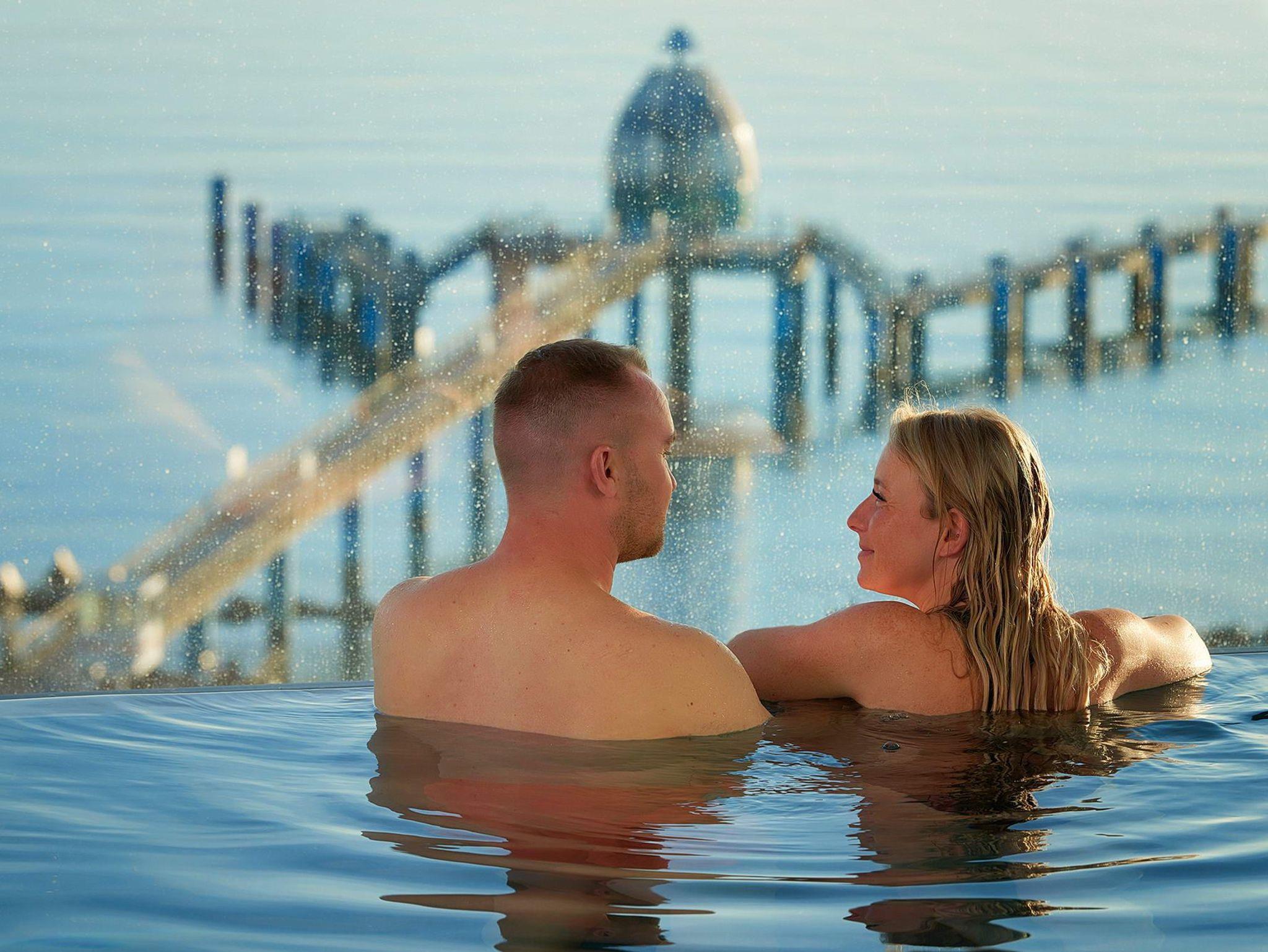 Und das Allerbeste: Genießen Sie ganz nach Lust und Laune von der weitläufigen Balkonterrasse aus den atemberaubenden Sonnenaufgang über dem Meer oder die Abenddämmerung mit Blick auf die romantisch beleuchtete Seebrücke. Und das selbst an kühleren Tagen dank der fest an der Decke installierten Infrarot-Wärmestrahler.