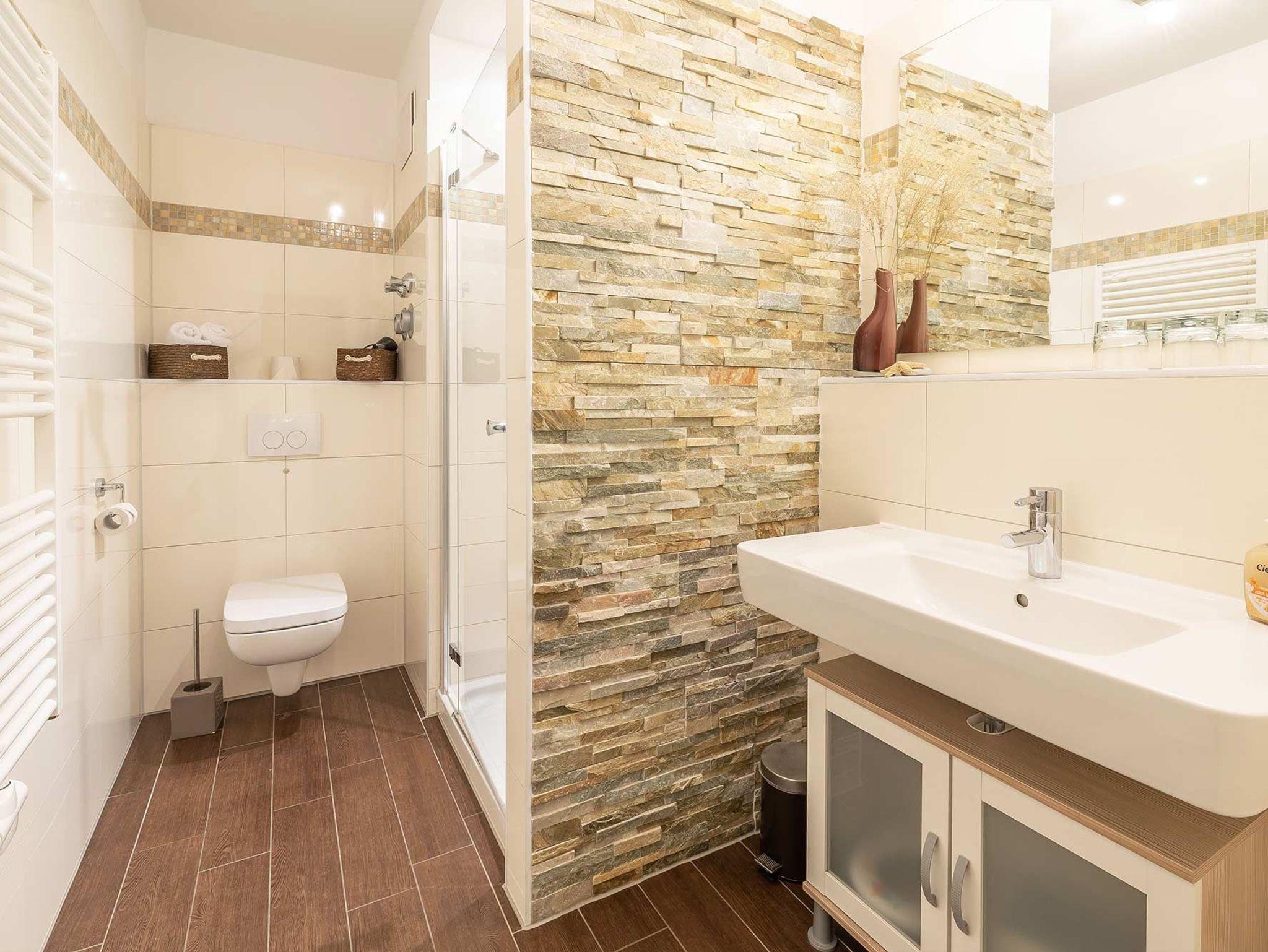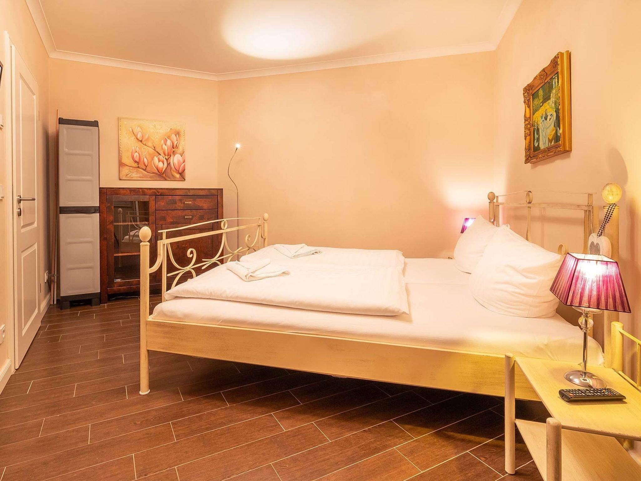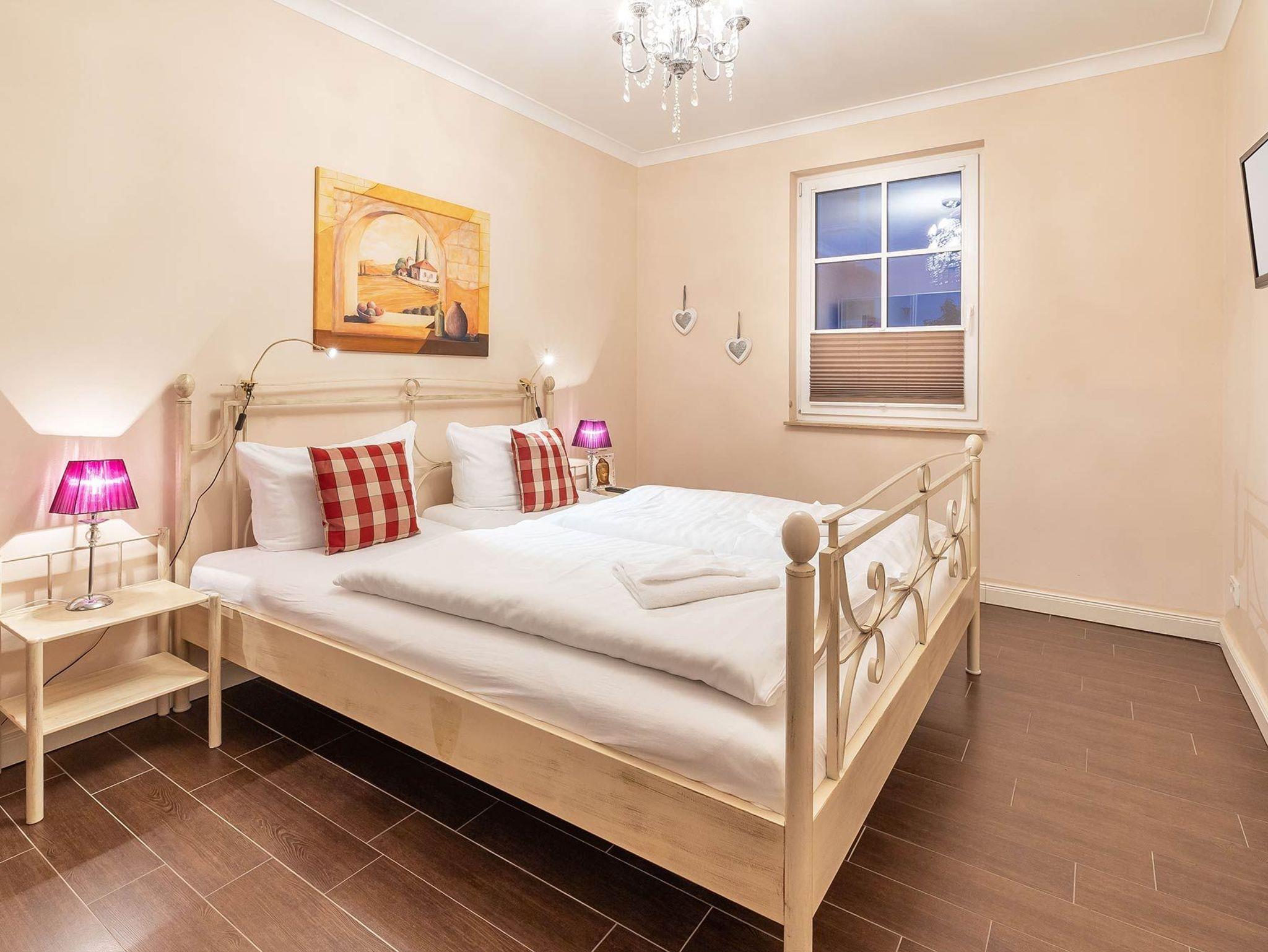 Als Ruckzugsort erwartet Sie in den beiden Schlafzimmern jeweils ein stilvolles Metallbett (180x200 cm) und ein großer geräumiger Kleiderschrank. Die Ferienwohnung verfügt über ein modernes Duschbad.