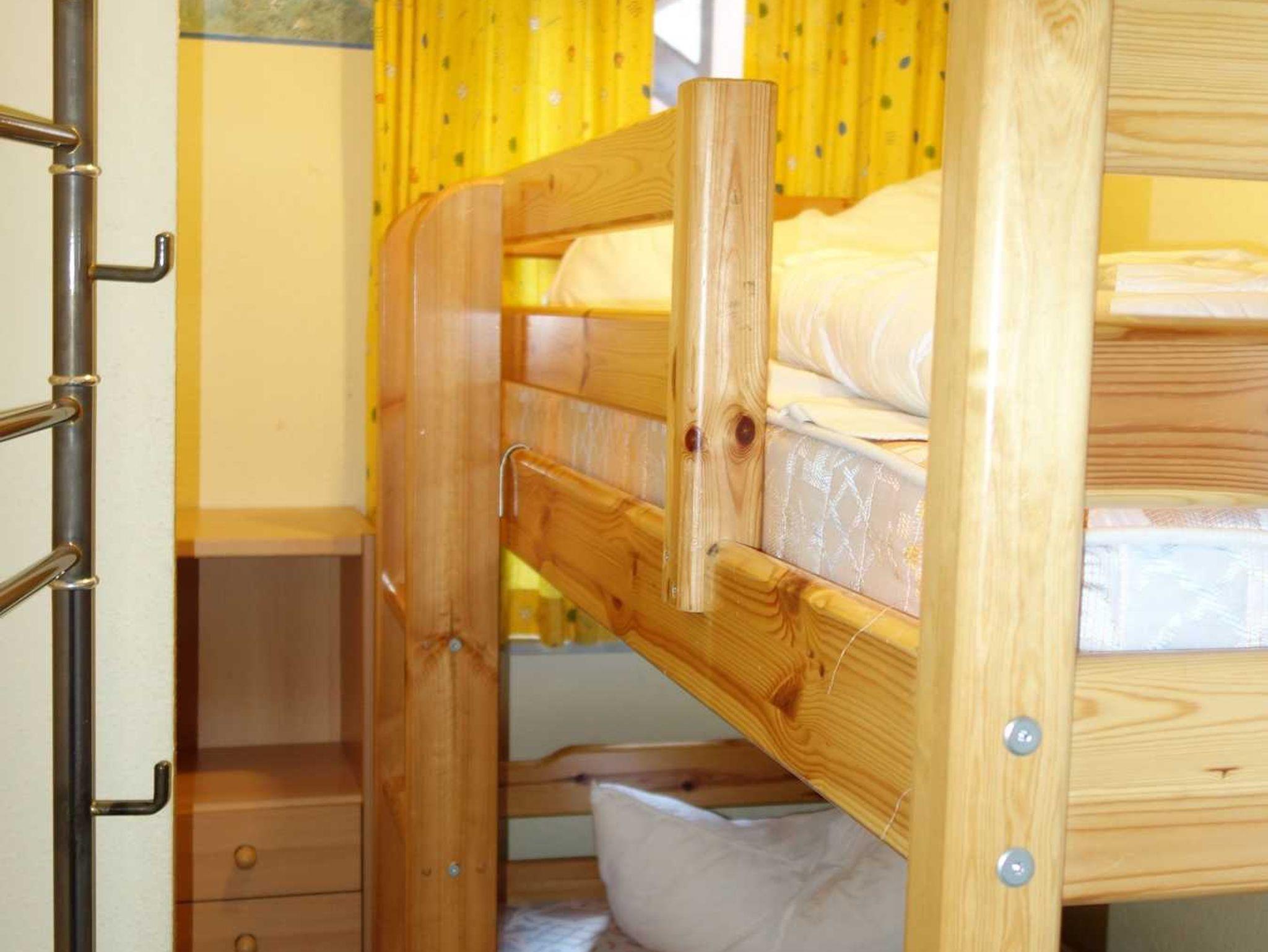 Das erste Schlafzimmer ist mit einem Doppelbett sowie einem großzügigen Kleiderschrank ausgestattet. Das zweite Schlafzimmer ist eine Koje für Kinder mit Etagenbett und einem Fenster.
