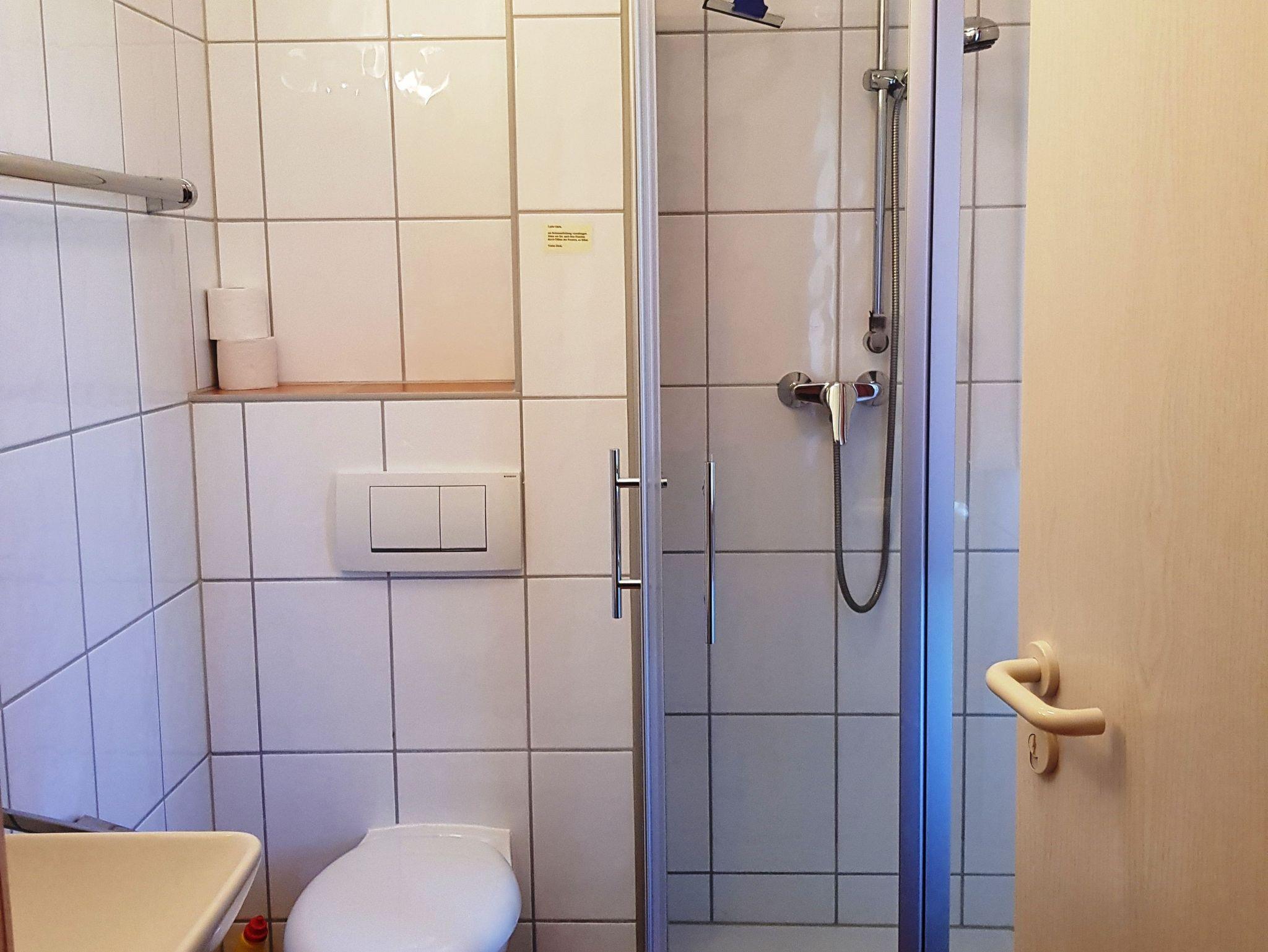 Münzwaschmaschine und -trockner stehen im Keller des Hauses zur Verfügung.