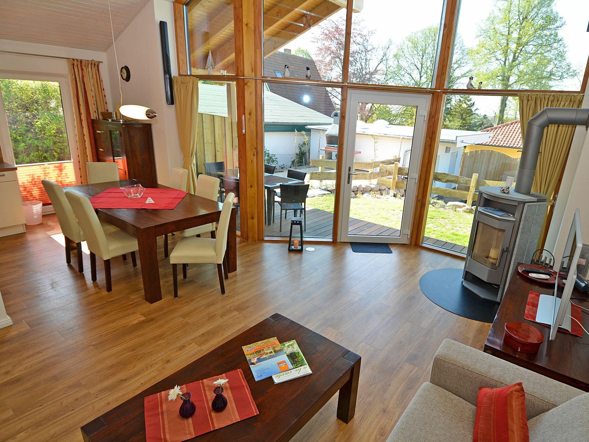 Der Wohnbereich ist großzügig und exklusiven eingerichtet mit einer gemütlichen Sitzecke, einem großen Esstisch, einem großen LCD-Fernseher, einer BOSE-Stereoanlage mit 5.1-Kanal-Surround-Sound inkl. CD-/DVD-Player sowie mit einem Kaminofen für die kuscheligen Stunden an den kalten Tagen.
