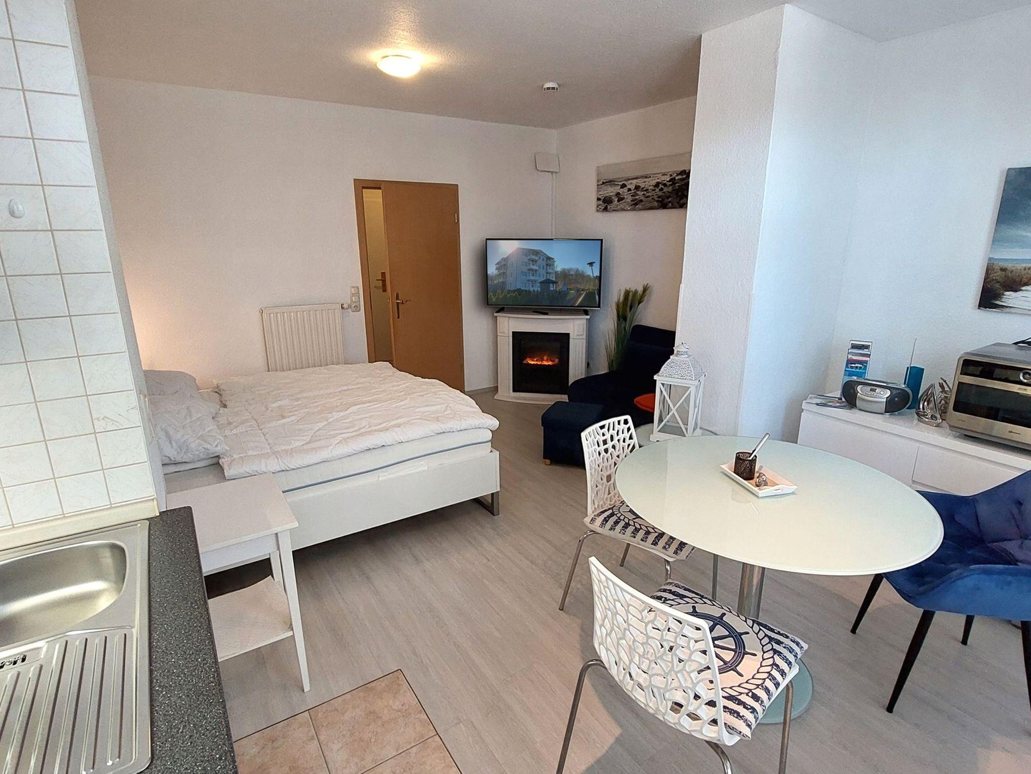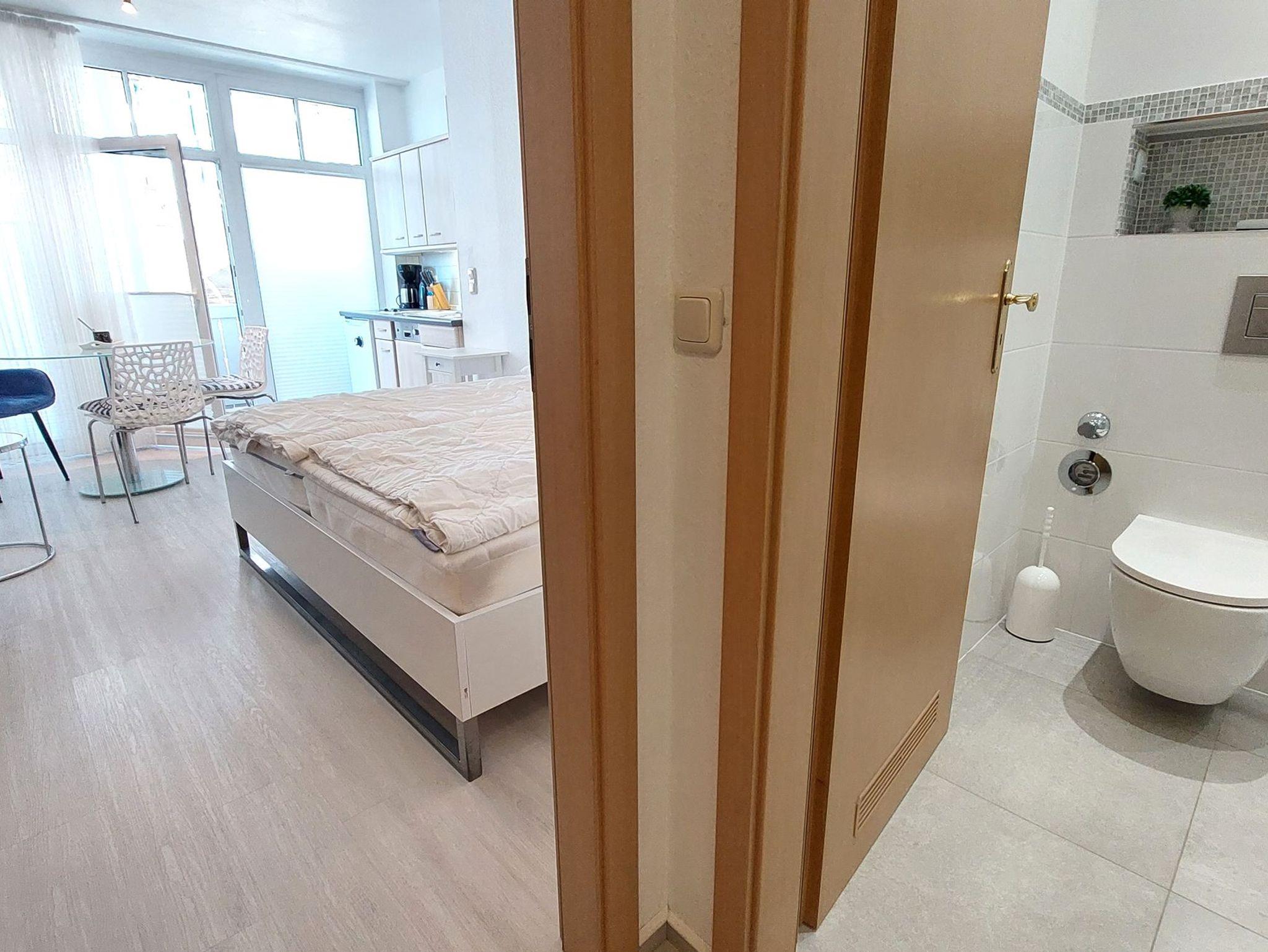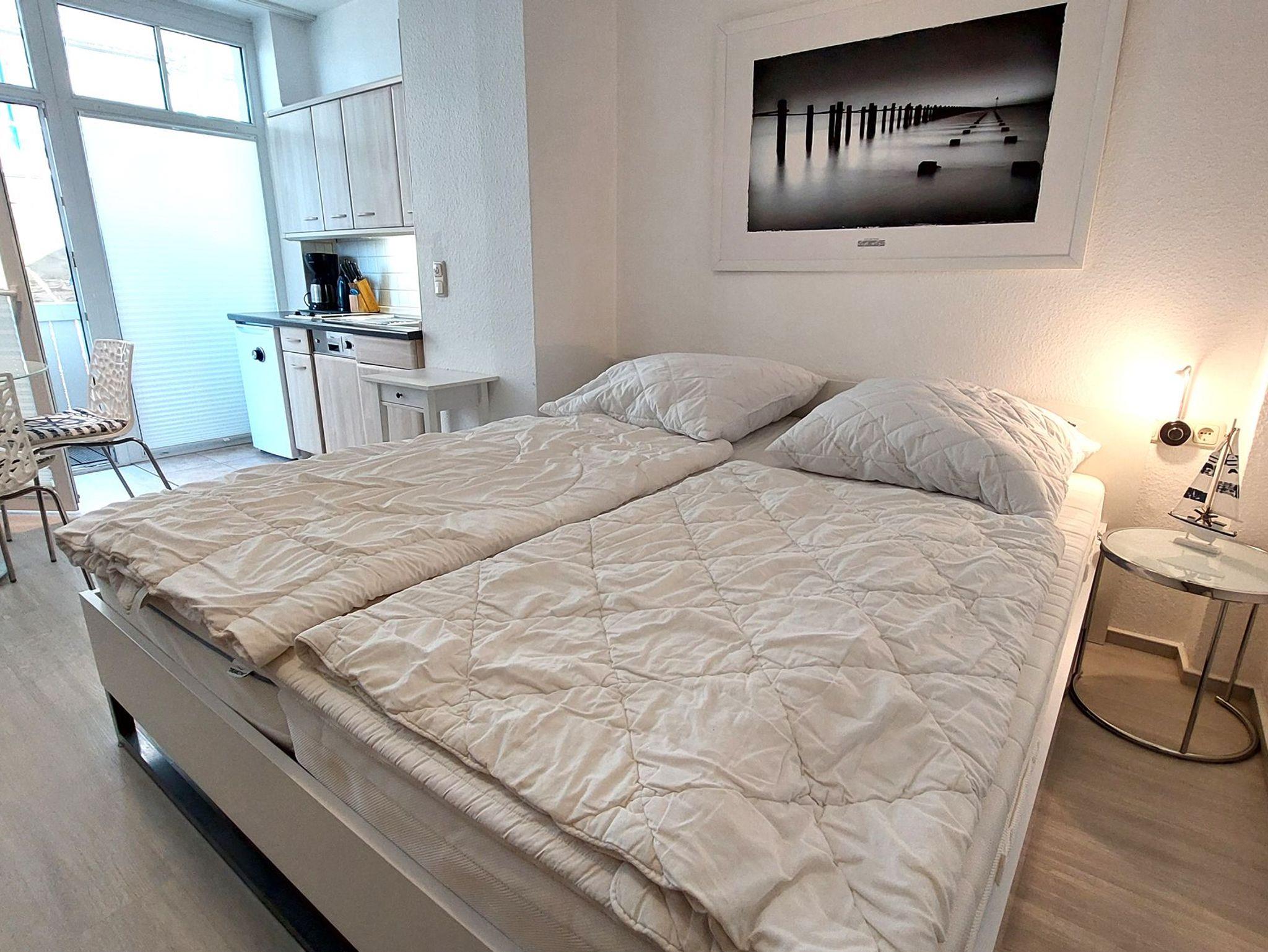Das Nichtraucher-Einraum-Appartement 68RB6 Strandnah befindet sich im ersten Obergeschoß der Residenz Seeblick und ist bequem per Lift zu erreichen. Die knapp 30 qm sind bestens eingerichtet für 2 Personen aber auch eine Dritte würde auf dem Schlafsofa Platz finden.