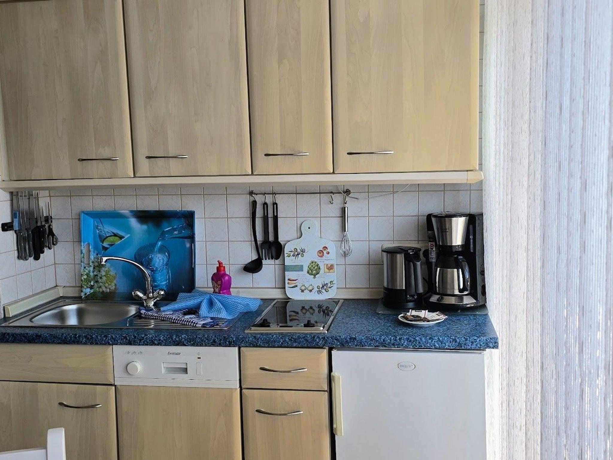 Das 1 Raumappartement hat einen Wohn-Schlafraum mit Doppelbett für 2 Pers.und einer ausziehbaren Couch, Smart -TV ,CD Stereoanlage ,Esstisch, gut ausgestattete Küchenzeile mit Geschirrspüler, Kaffeemaschine, Toaster und Microwelle. Babybett ( ohne Wäsche )und Hochstuhl für die kleinen stellen wir für 10 Euro zur verfügung ( bitte vorbestellen ) .