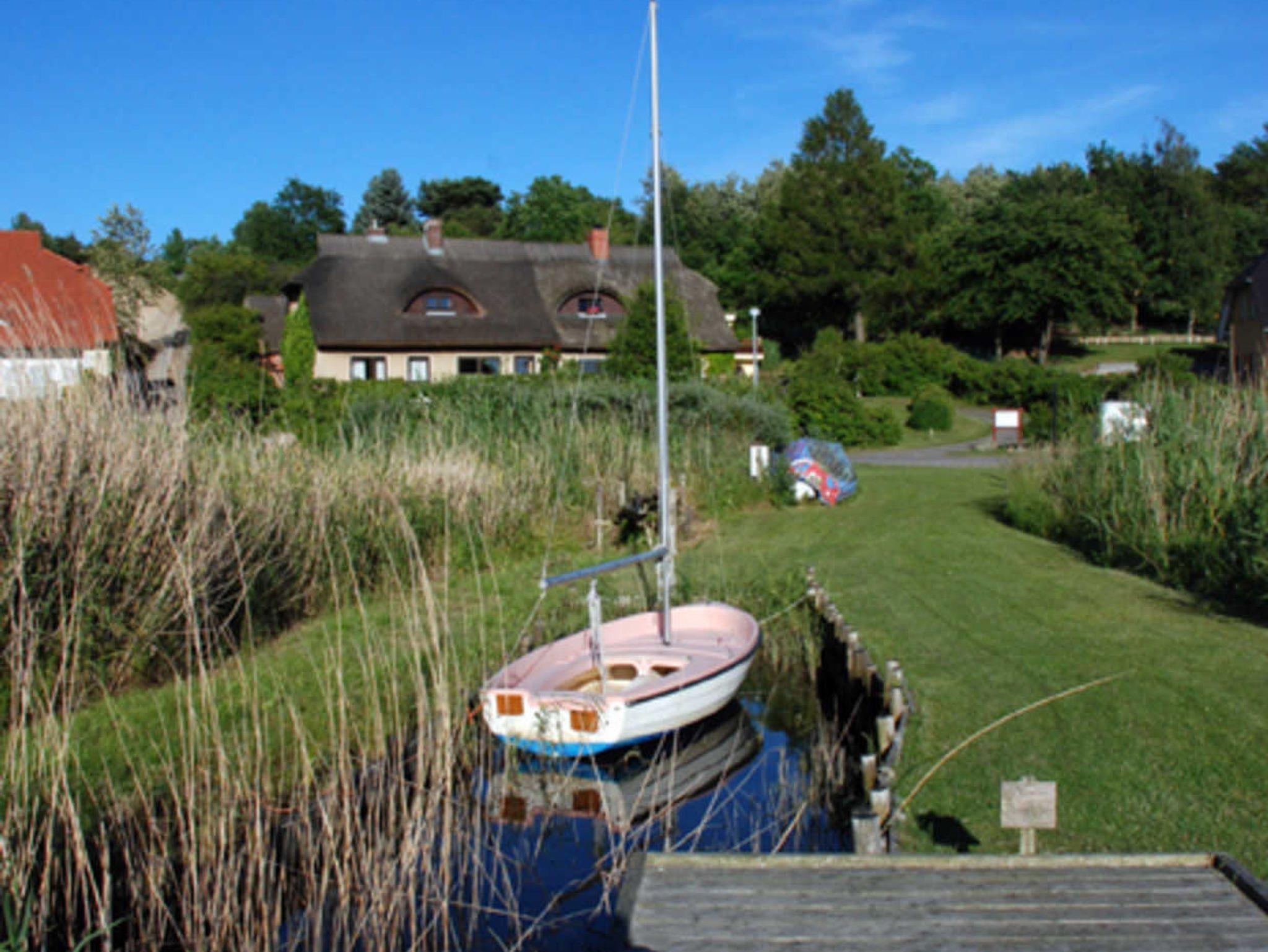 Zu jedem Ferienappartement gehört eine Terrasse mit Gartenmöbeln bzw. eine Sitzgelegenheit im Garten. Es besteht die Möglichkeit zum Grillen nach Absprache mit den Gastgebern (Reetdach!). Am Objekt gibt es auch einen kleinen Bootssteg im Schilf, an dem gern auch kleine Boote oder Jollen anlegen können.