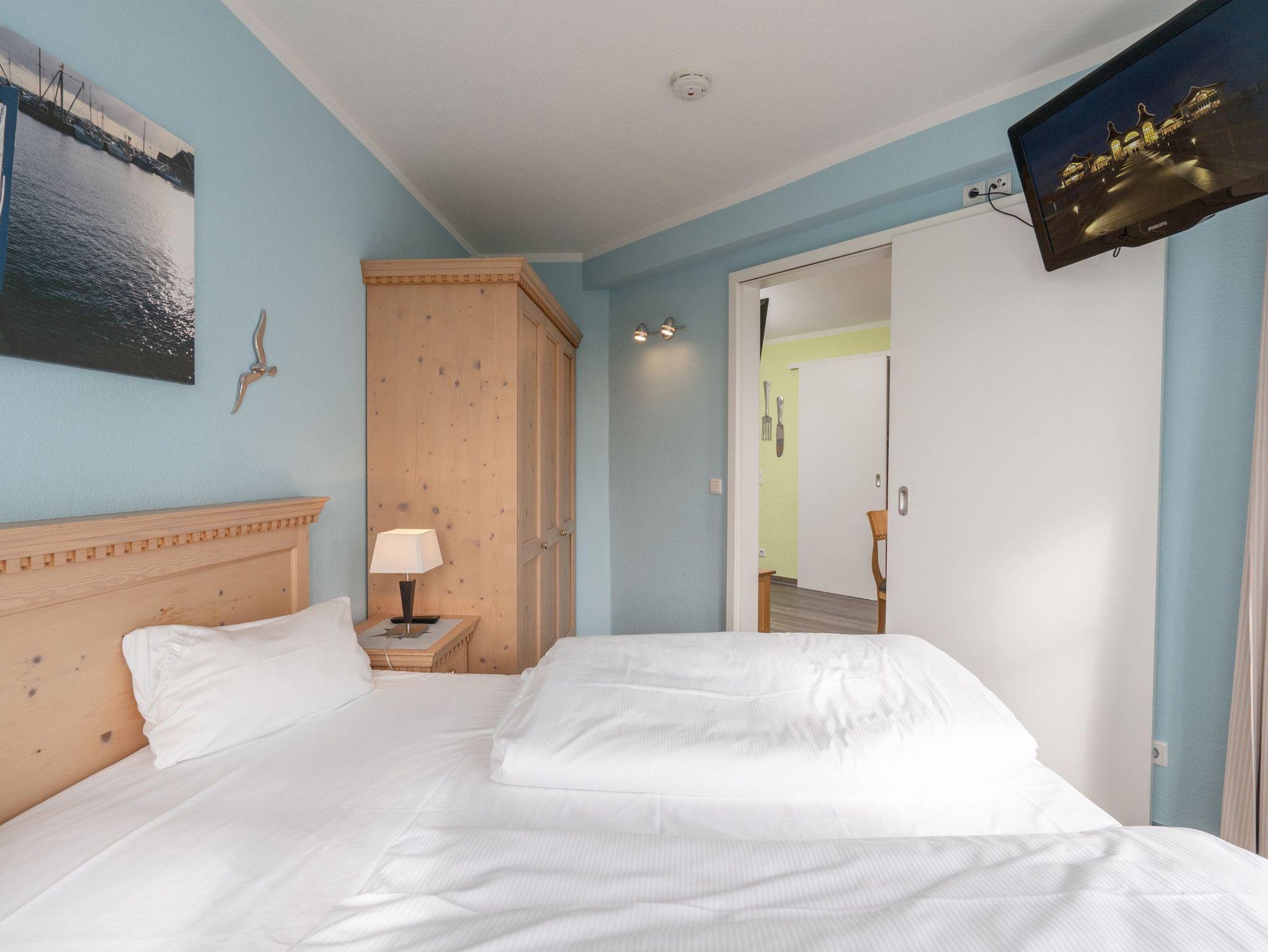 Die Ferienwohnung verfügt über 3 Fernseher, kostenfreies WLAN und die Erstausstattung an Bettwäsche ist inklusive. Das Schlafzimmer mit Verdunklung verfügt über ein Doppelbett, im Wohnzimmer befindet sich zusätzlich eine Doppelschlafcouch. Darüber hinaus verfügt die Ferienwohnung über ein Bad mit Dusche sowie ein separates WC. Die voll ausgestattete, offene Küche mit Backofen, Mikrowelle, Geschirrspüler, Kaffeemaschine und Toaster lässt keine Wünsche offen. Ein Fernseher inkl. 3 Sky-Sender rundet die hochwertige Einrichtung ab.