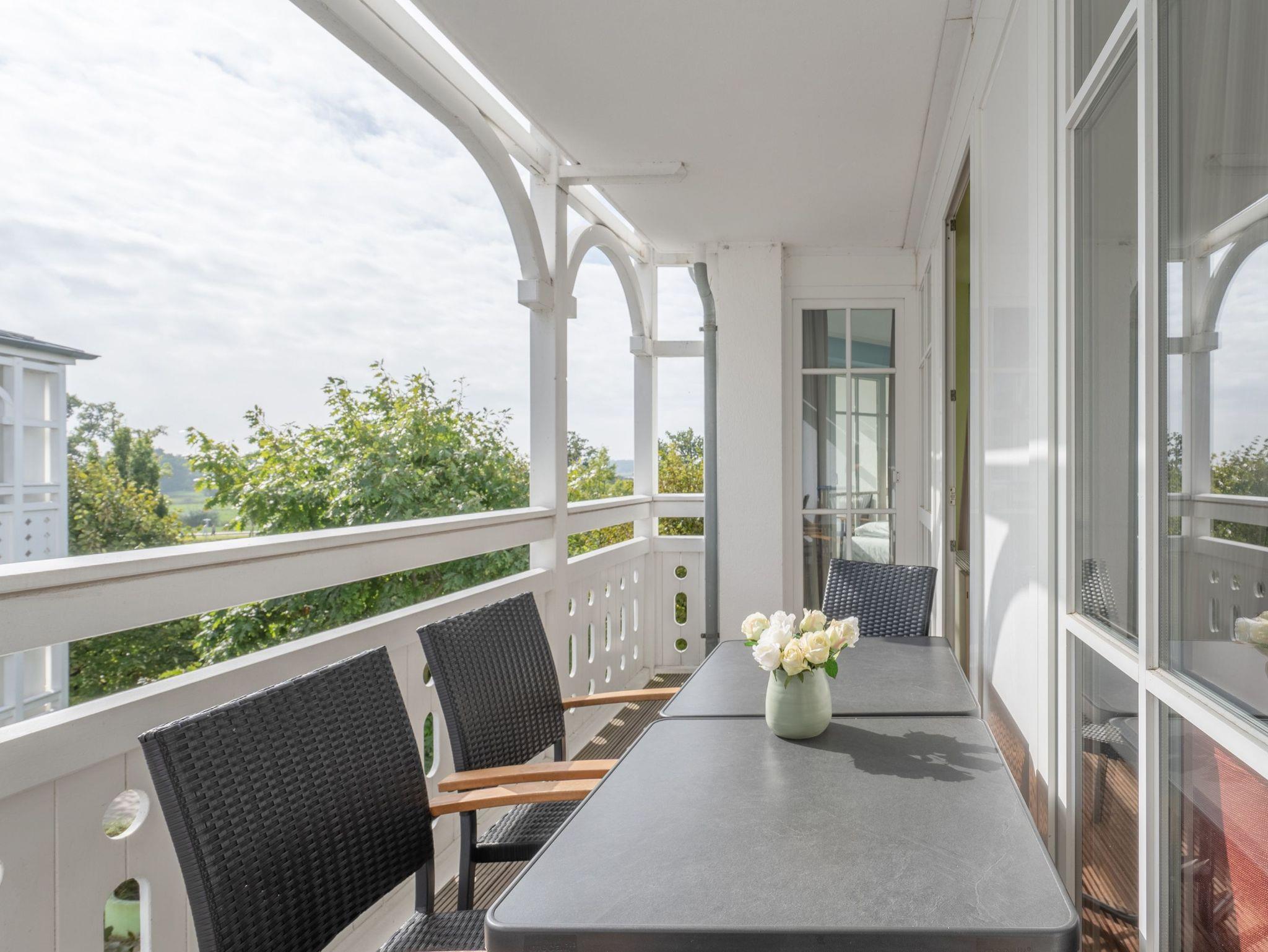 Nach einem erlebnisreichen Urlaubstag können Sie auf dem Balkon in Südostlage Platz nehmen. Der Ausblick und die Sitzgruppe sorgen hier für ein wunderbares Urlaubsgefühl. Im Nichtraucher-Apartment sind keine Haustiere gestattet.
