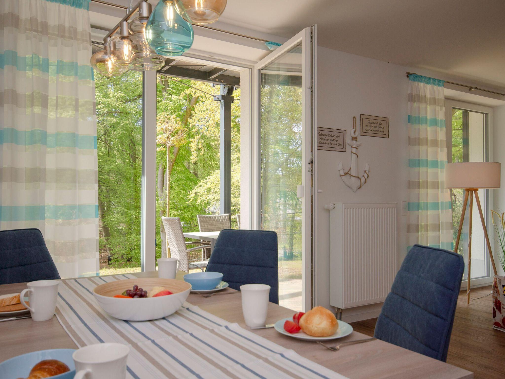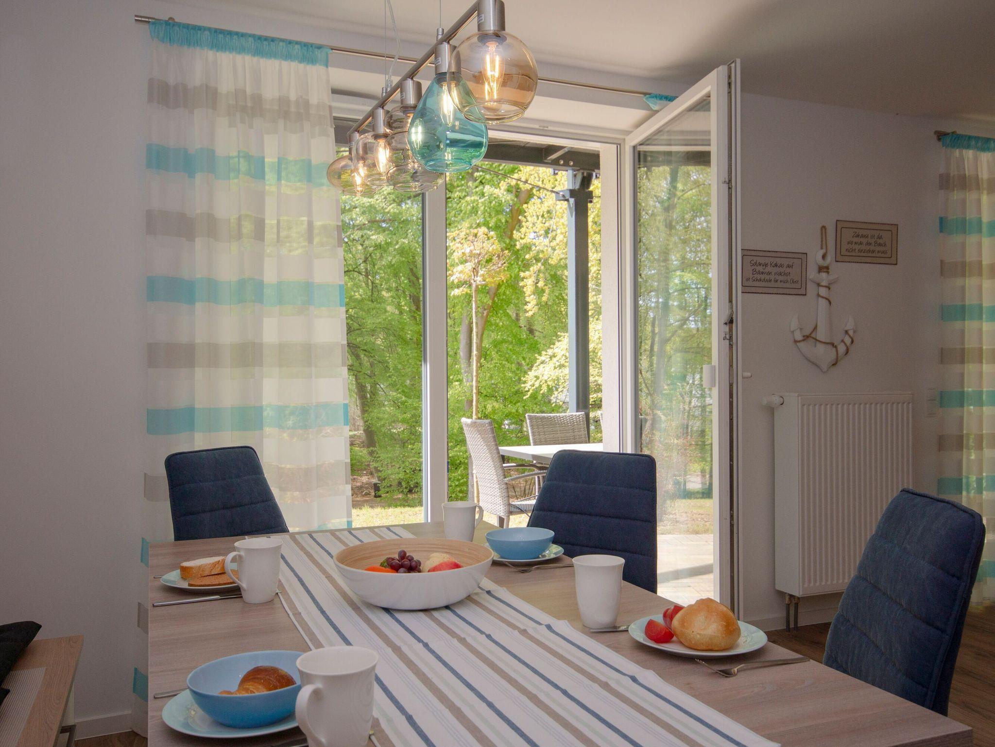 Das gemütliche Wohnzimmer mit Essbereich und offener Küche lädt zum Verweilen ein. Die voll ausgestattete Küche überzeugt in Sachen Hochwertigkeit und Ausstattung auf ganzer Linie. Neben einem Induktionskochfeld, einem Backofen und einer Mikrowelle stehen Ihnen allerlei Küchenkleingeräte zur Verfügung. Auf der komfortablen Couchgarnitur können Sie nach einem anstrengenden Wandertag in den Zicker Alpen einfach mal die Seele baumeln lassen. Im Wohn- sowie in einem der Schlafbereiche befindet sich jeweils ein Smart-TV. Der direkte Zugang zur sonnigen Terrasse mit einer tollen Naturaussicht runden das perfekte Urlaubsgefühl gekonnt ab. Eine Fliegengitter-Tür ist vorhanden. Die Nutzung der Sauna ist für alle Gäste möglich. Die Nutzungszeit beträgt 10 Minuten pro 1 € (es werden 1-€-Münzen benötigt).