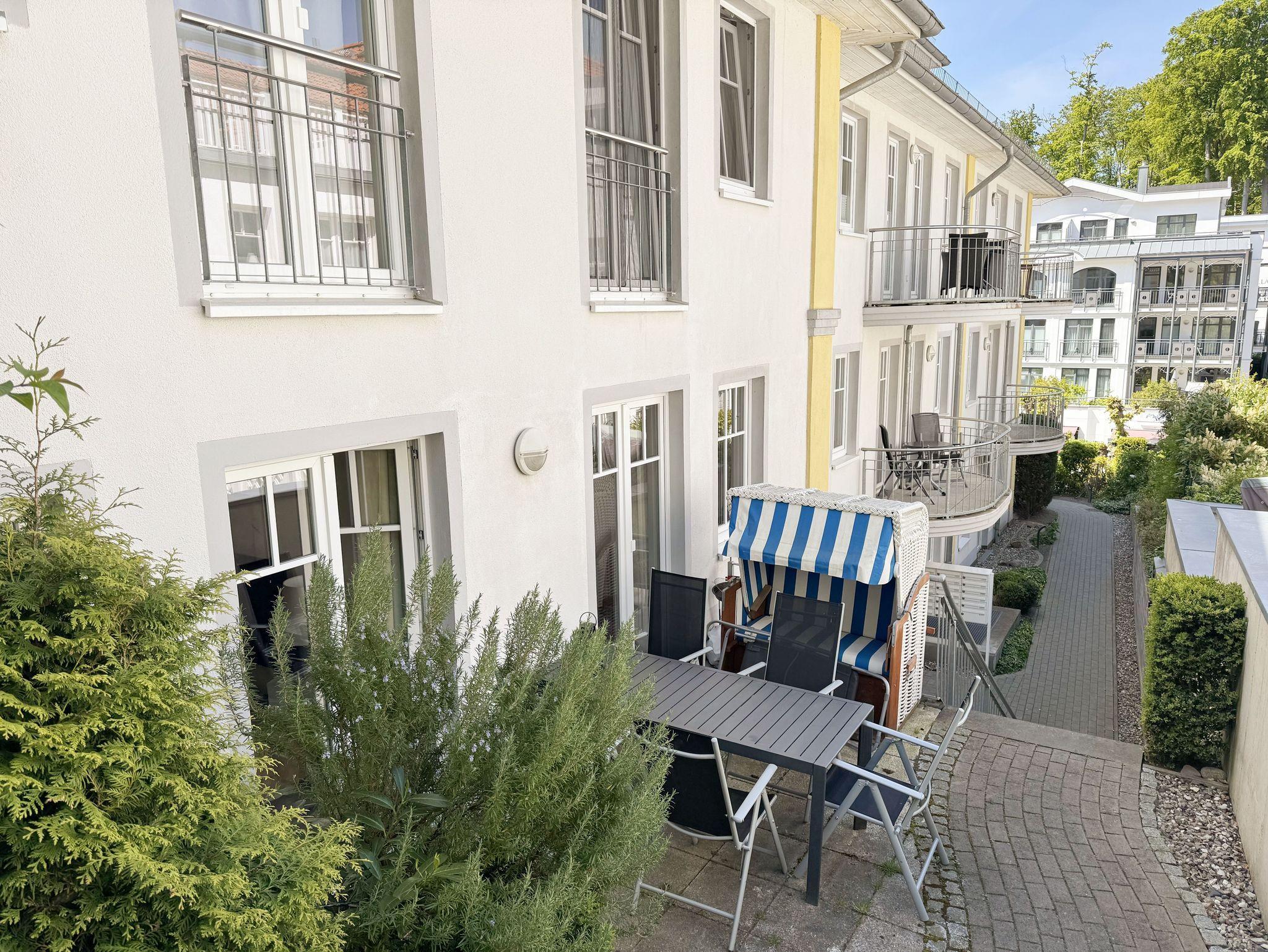 Die Villa Rosa befindet sich in bester Lage Sellins, in der Wilhelmstraße. Die Wilhelmstraße mit ihren prächtigen Villen im Stil der Bäderarchitektur, Cafés und Restaurants liegt im Herzen von Sellin und ist die erste Adresse dieses Ostseebades. Von hier aus erreichen Sie die Seebrücke und den herrlichen Strand, die etwa 200 m von der repräsentativen Villa Rosa entfernt sind. Auch ein Fahrradverleih, sowie die Freizeittherme sind in näherer Umgebung. Die hochwertig eingerichtete 3-Zimmer-Wohnung 09 Strandgut befindet sich in ruhiger Lage im 1. Obergeschoss mit Terrasse (Nord/West-Ausrichtung). Die Wohnung ist für 2 bis 5 Feriengäste ausgelegt. Fast ein Alleinstellungsmerkmal der Villa Rosa ist der stilvolle Wellnessbereich mit Sauna, Dampfbad und Ruheraum, der diese Wohnung auch für die kühleren Tage empfiehlt.