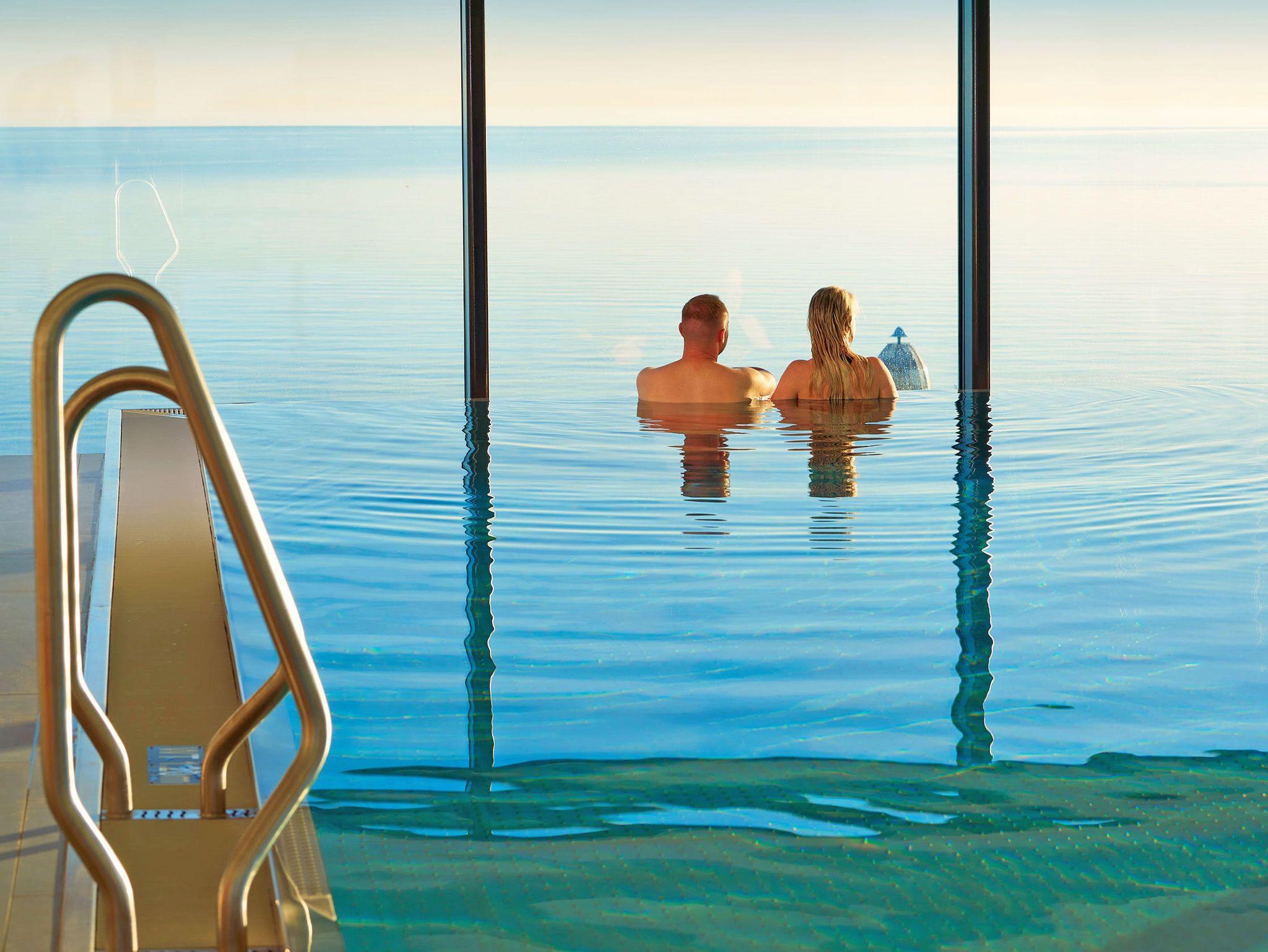 Über den eigenen Zugang oder den Fahrstuhl gelangen Sie direkt auf die großzügige Hotel Dachterrasse mit Strandkörben, Sonnenliegen, Saunen und einem[nbsp]Sky-Pool mit dem Sie die Badesaison über den Sommer hinaus verlängern können.