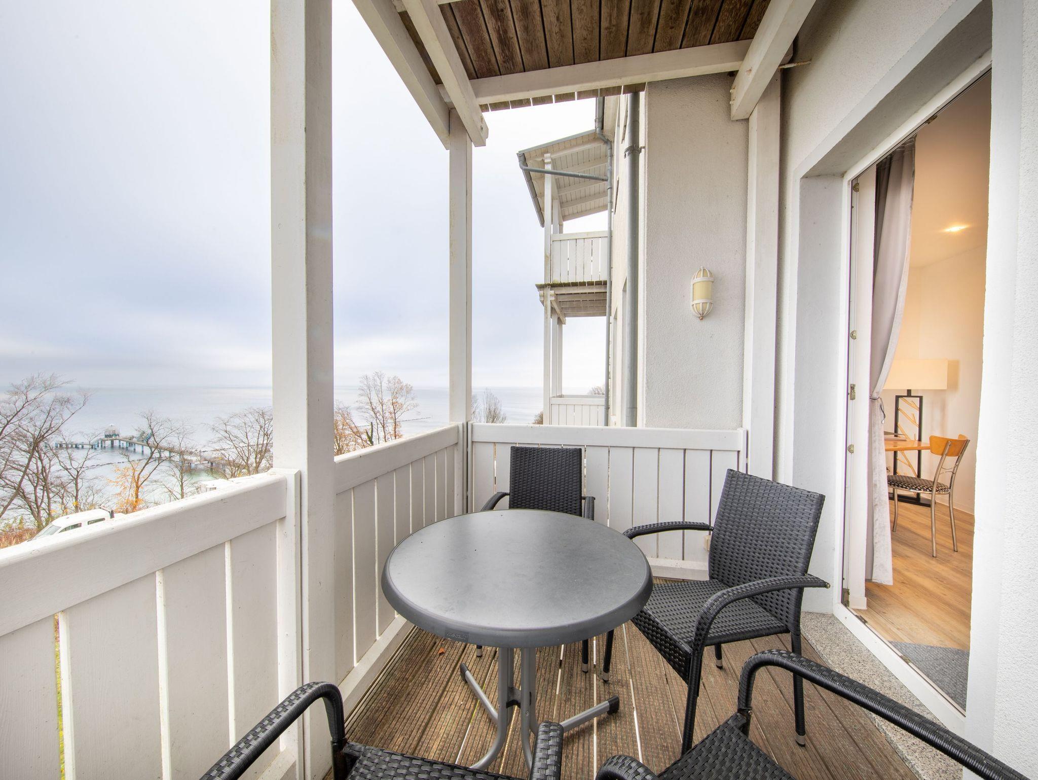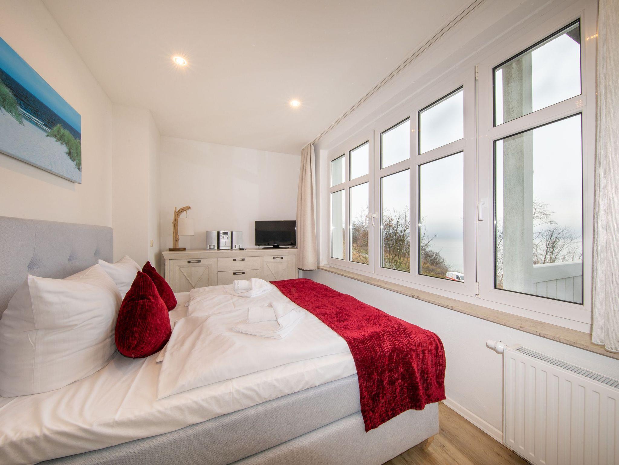 In direkter Nachbarschaft der Selliner Flaniermeile Wilhelmstraße und der Seebrücke Sellin thront die Residenz Seeblick hoch oben am Hochufer. Die Ferienwohnung 17 befindet sich in der dritten Etage des Hauses und bietet direkten Meerblick. Auf ca. 65qm Wohnfläche erstrecken sich 1 Eingangsbereich, 2 Schlafzimmer, 1 Bad und eine Küche. Die moderne Ausstattung der Wohnung, sowie die fantastische Lage, lassen dieses Domizil zu Ihrem perfekten Ausgangspunkt für Unternehmungen werden. Für Ihr Auto steht Ihnen ein für Sie reservierter Stellplatz zur Verfügung. Ebenso angenehm ist der Aufzug des Hauses, welcher Sie bis in die dritte Etage zur Wohnung bringt. Ebenso verfügt das Haus über einen Saunabereich zur gemeinschaftlichen Nutzung.