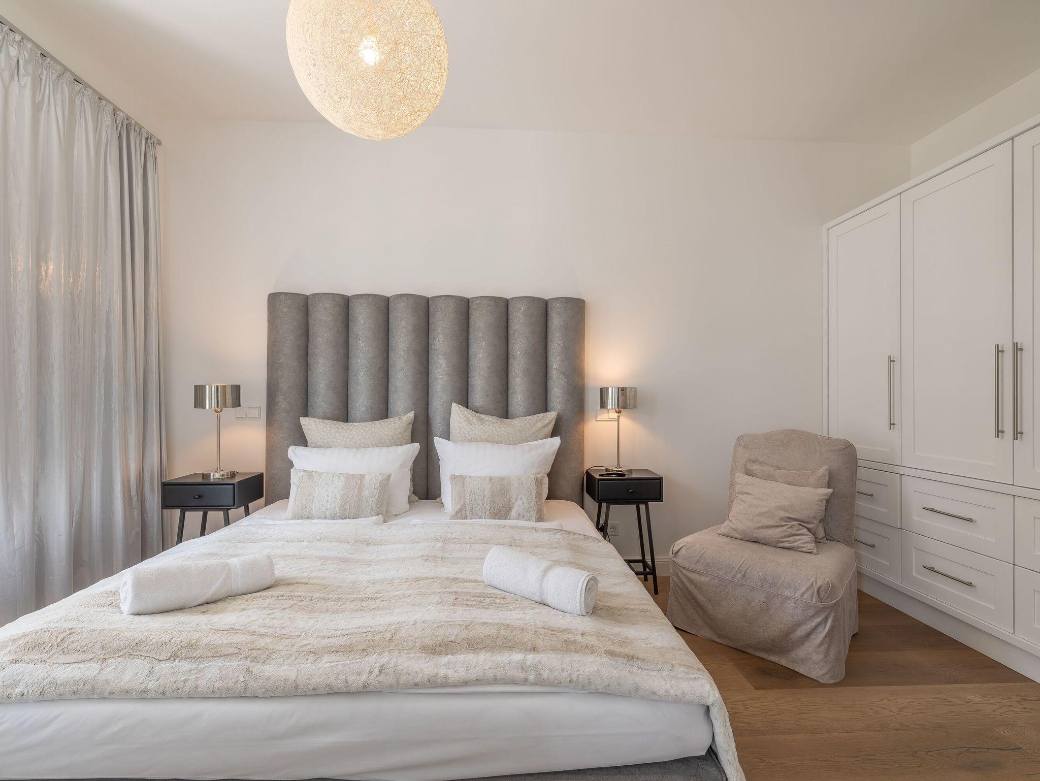 Das Schlafzimmer mit einem Boxspringbett (180x200) bietet Ihnen genügend Schlafkomfort und Stauraum. Sie haben auch die Möglichkeit die große Doppeltür zum Wohnzimmer zu öffnen um ein völlig anderes Raumerlebnis zu erfahren.