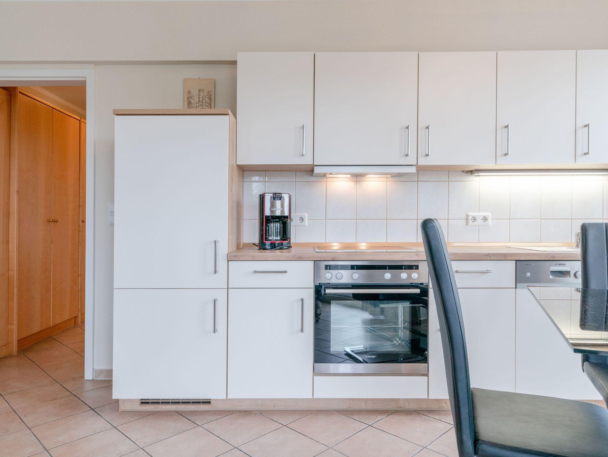 Die Wohnung verfügt über ein gemütliches Schlafzimmer und ein Badezimmer. Zur Ausstattung gehören ein Flachbildfernseher, eine Kaffeemaschine (Filter), ein Geschirrspüler, Bettwäsche sowie WLAN-Anschluss. Auch Haustiere sind willkommen. Der Balkon lädt zum Entspannen und Genießen ein.