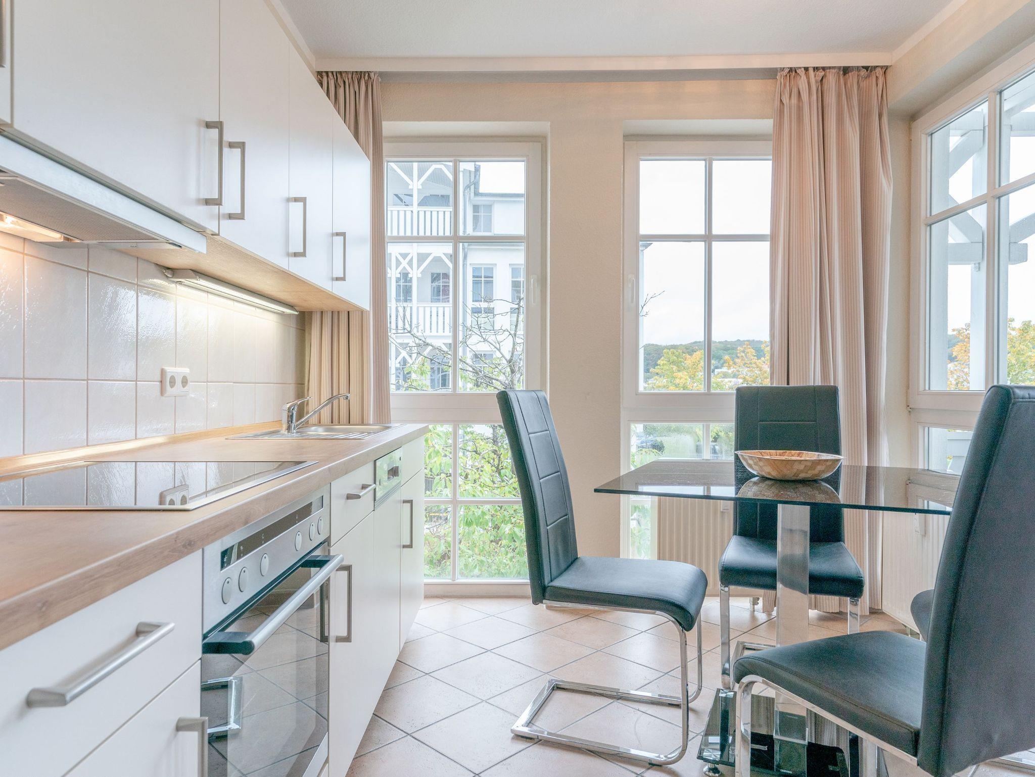 Die Ferienwohnung 400 bietet auf 50 m² Platz für bis zu 4 Personen. Sie befindet sich im Haus Baabe in der 1. Etage und mit einem Aufzug ganz bequem zu erreichen.