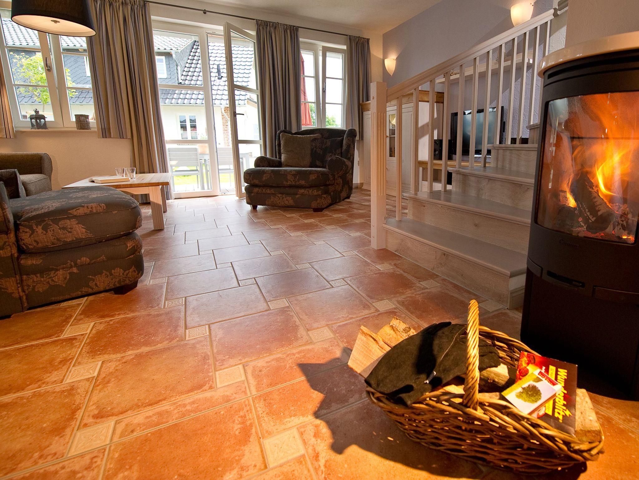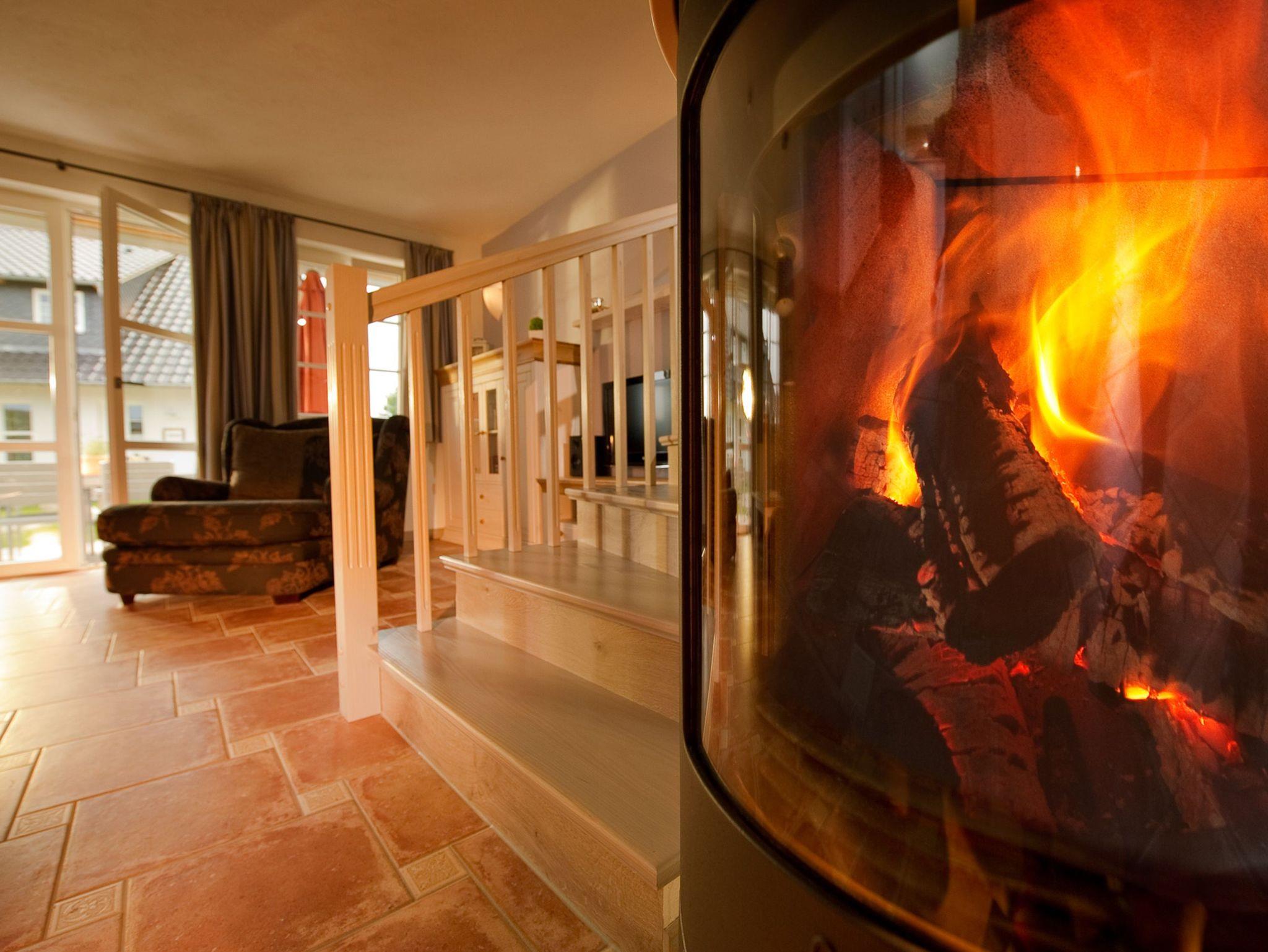 ? Wohnzimmer u.a. mit Kaminofen, Couch, XXL-Ohrensesseln, Flatscreen-TV, Stereoanlage mit DVD-Player, Fußbodenheizung