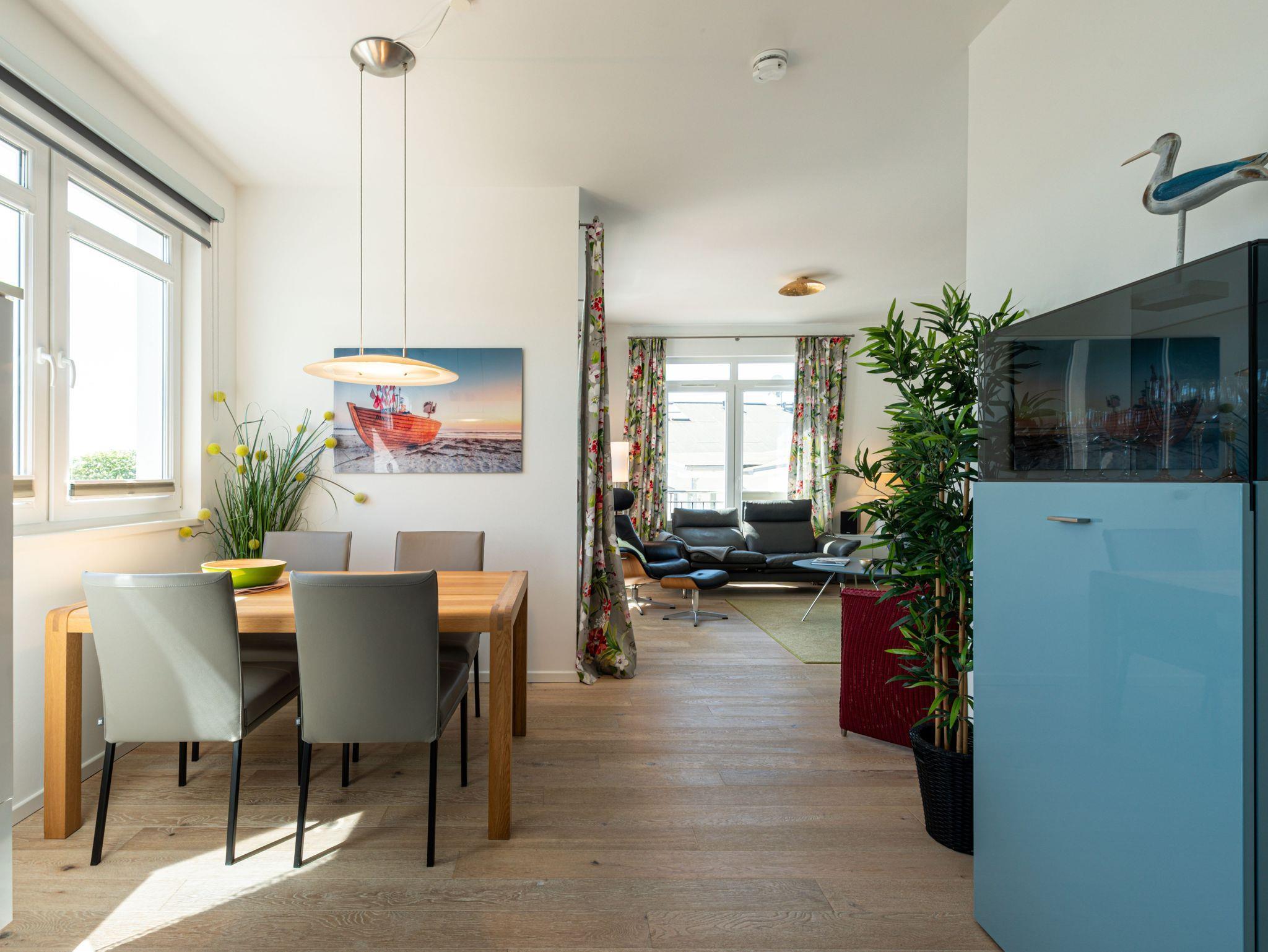 Herzlich willkommen im wunderschönen Urlaubs-Domizil WILHELMINE im zweiten OG der Villa Wiederkehr direkt an der berühmten Wilhelmstraße im Ostseebad Sellin. Die Villa Wiederkehr, im klassischen Bauhausstil errichtet, befindet sich am oberen Ende der Wilhelmstraße zentral gelegen und doch nicht mittendrin im Trubel. Bis zur historischen Seebrücke mit ihren Pavillions und dem feinsandigen Ostseestrand sind es ca. 700 Meter. Der Strand erstreckt sich von Sellin über 7 km, an Baabe vorbei bis zum Ostseebad Göhren. Von der Seebrücke aus startet (saisonal) die Weiße Flotte in Richtung Binz und Sassnitz, bis zu den weltberühmten Kreidefelsen. Von der Villa Wiederkehr ausgehend gelangen Sie in ca. 500 Metern an den Selliner See, der zu herrlichen Wanderungen und Radfahrten einlädt. Wer gerne ein Restaurant besuchen möchte, findet in unmittelbarer Nähe verschiedene Möglichkeiten. Ganz in der Nähe befindet sich auch die Haltestelle des Rasenden Roland, eine der Hauptattraktionen Rügens: die dampflokbetriebene historische Schmalspurbahn, mit der Sie vorbei am Jagdschloss Granitz auch nach Binz fahren können. Ein Spaß für Groß und Klein.