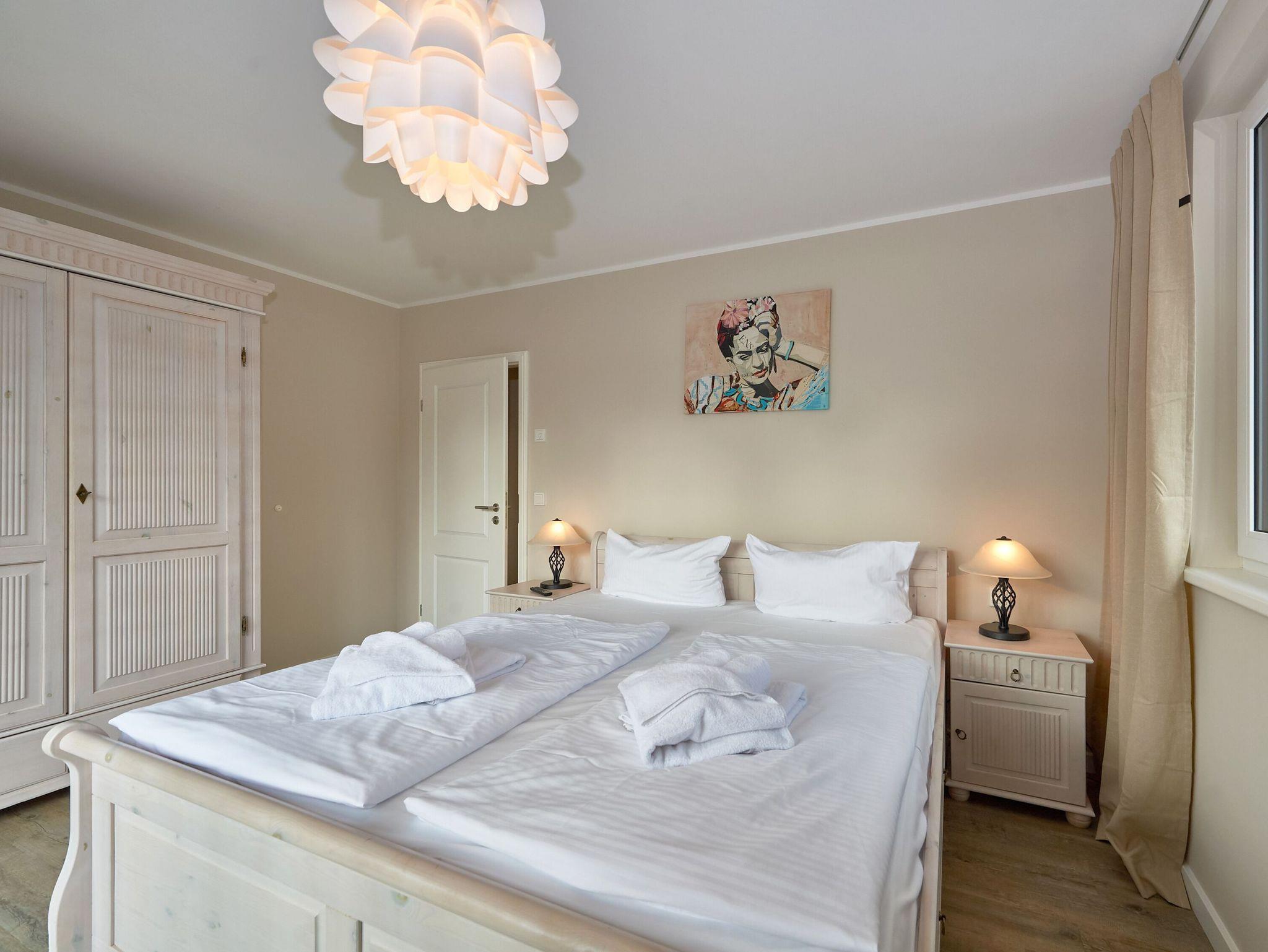 In den beiden Schlafzimmern finden Sie jeweils ein komfortables Doppelbett (1,80 x 2,00 m) und einen Kleiderschrank für die Urlaubsgarderobe, im größeren der beiden Schlafzimmer zusätzlich einen zweiten Fernseher.