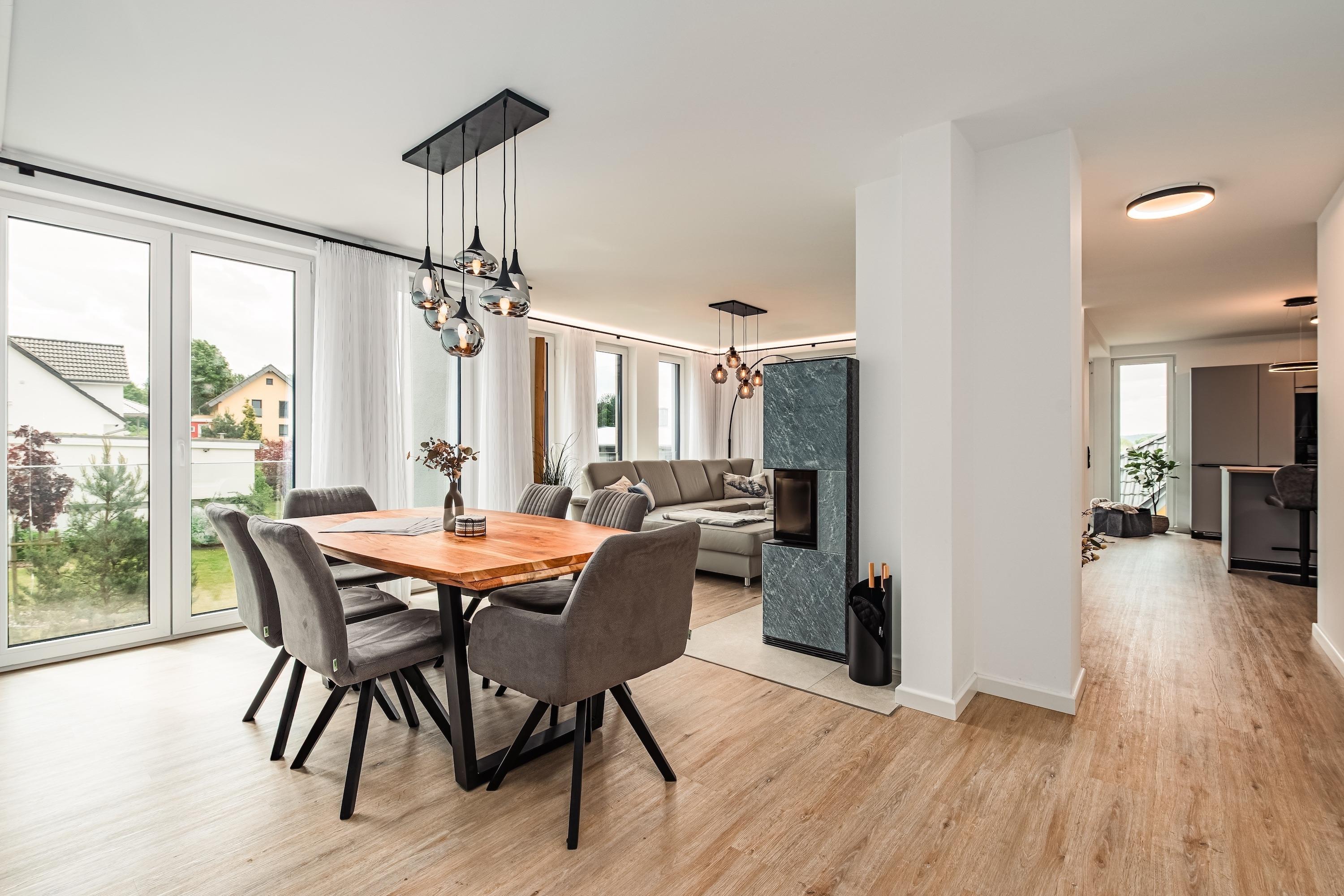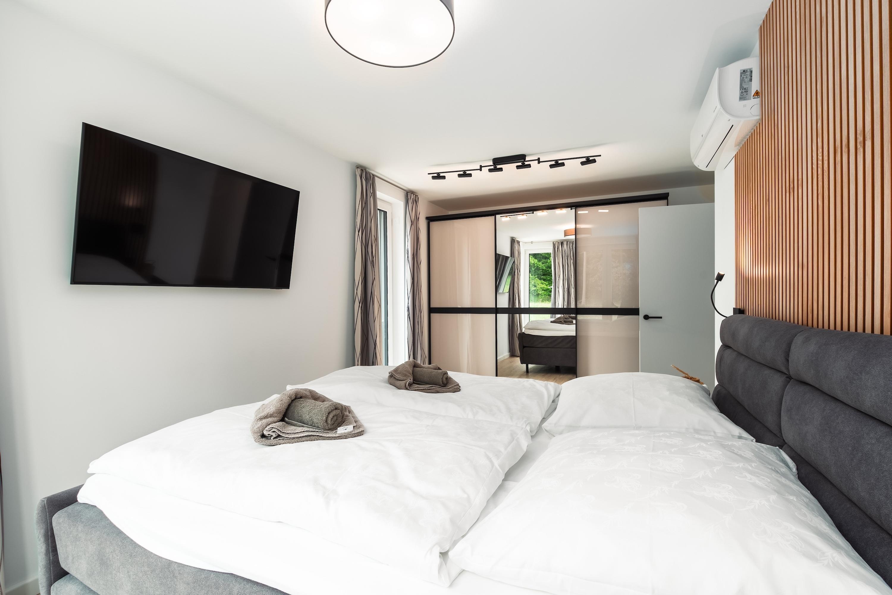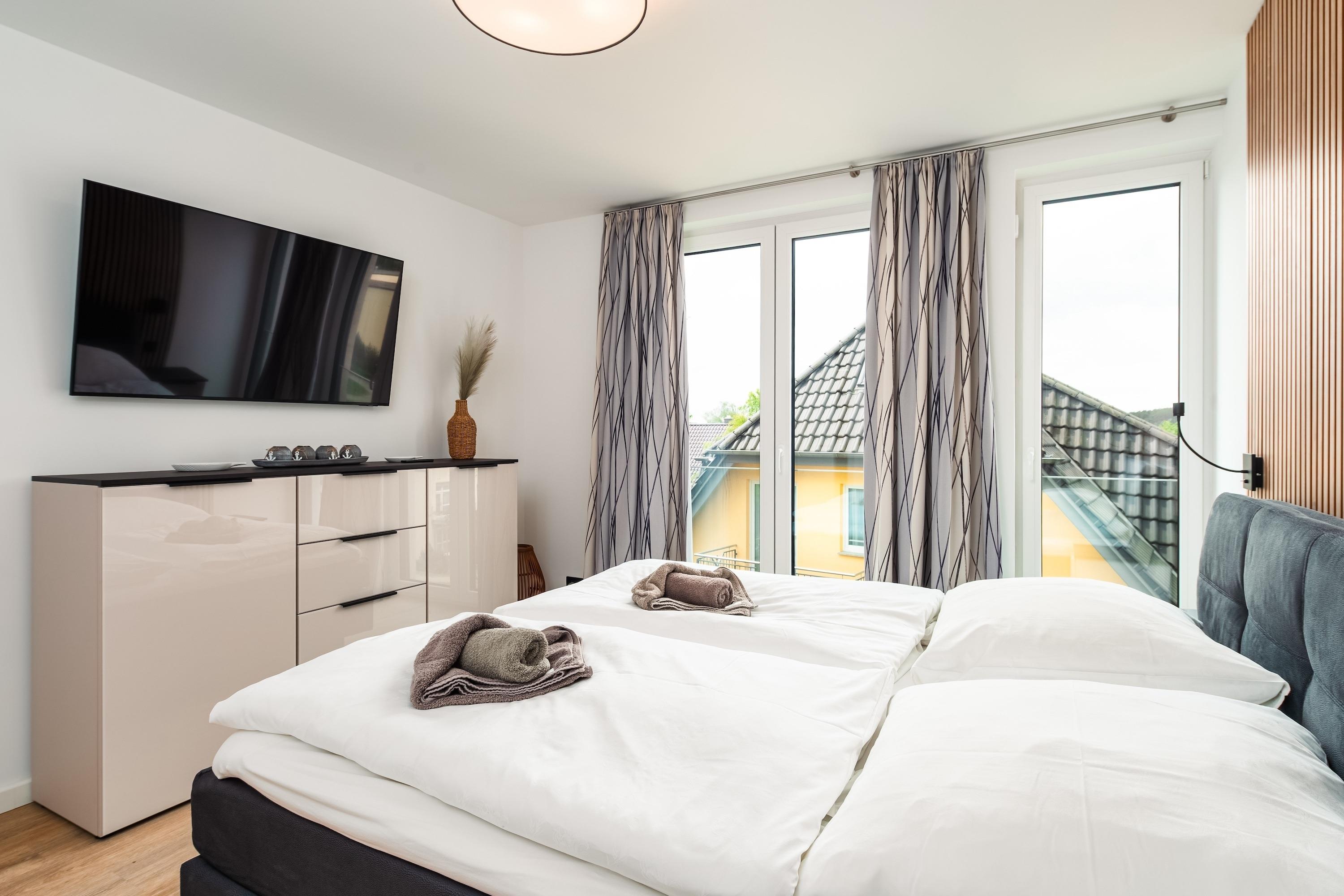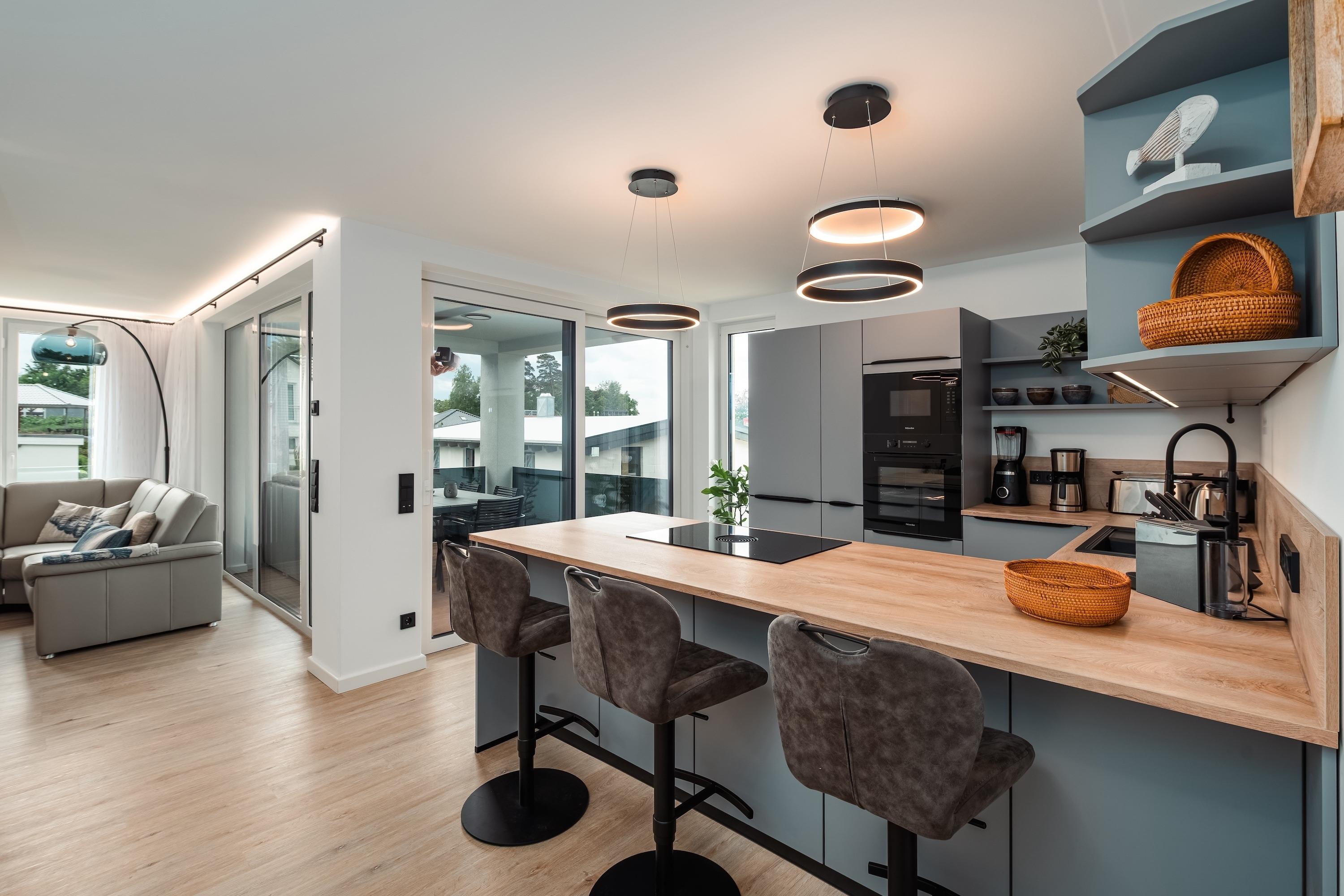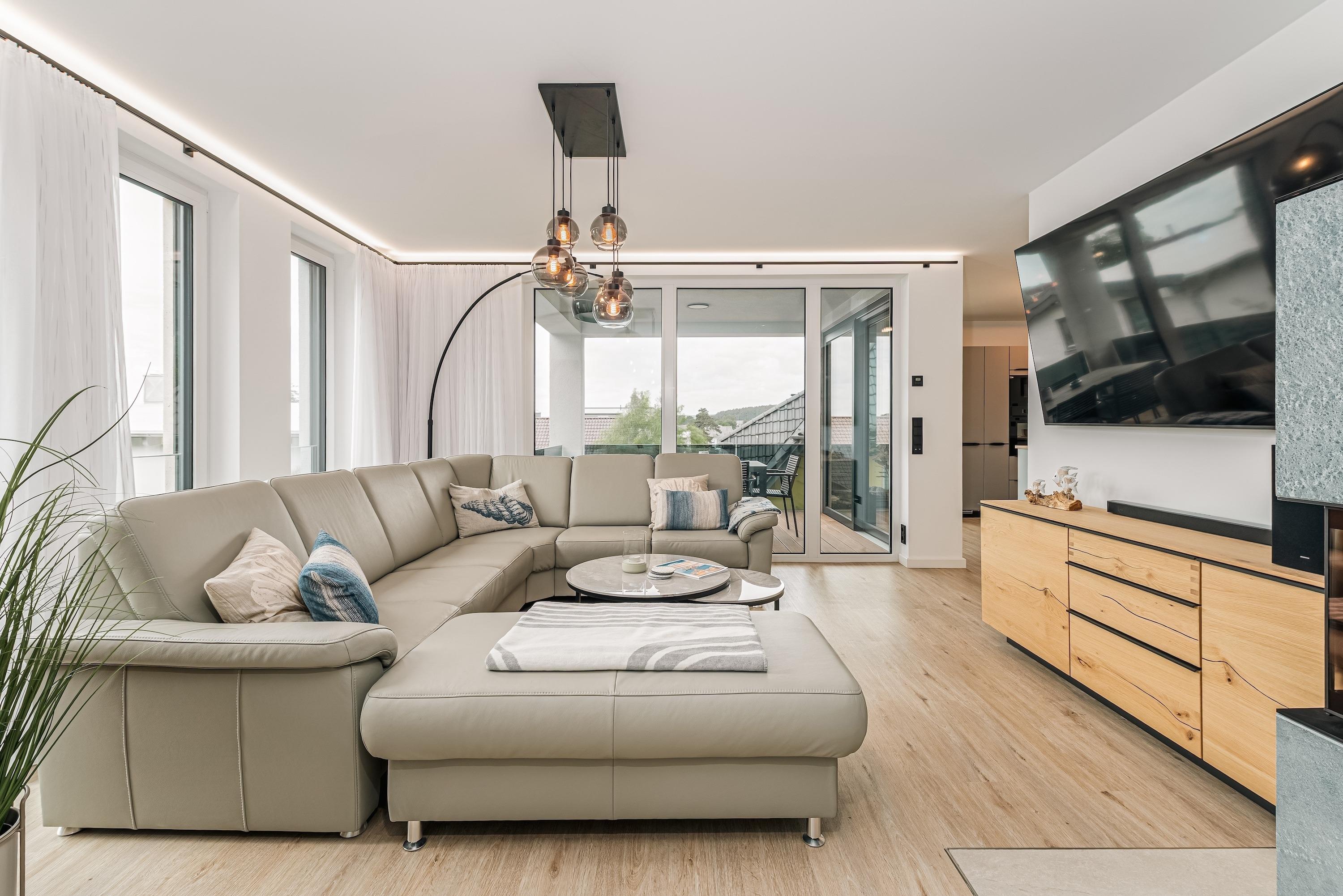 Zum weiteren Komfort zählen eine voll ausgestattete Küchenzeile, die auch für längere Aufenthalte geeignet ist, sowie die Möglichkeit, Ihren Hund mitzubringen. Genießen Sie die Sonne auf dem Balkon oder entspannen Sie am Kamin. Für Regentage sorgten Smart-TVs in dem Wohnbereich und in den Schlafzimmern für Unterhaltung. Für Gäste steht ein Garagenparkplatz zur Verfügung mit einer Ladestation.