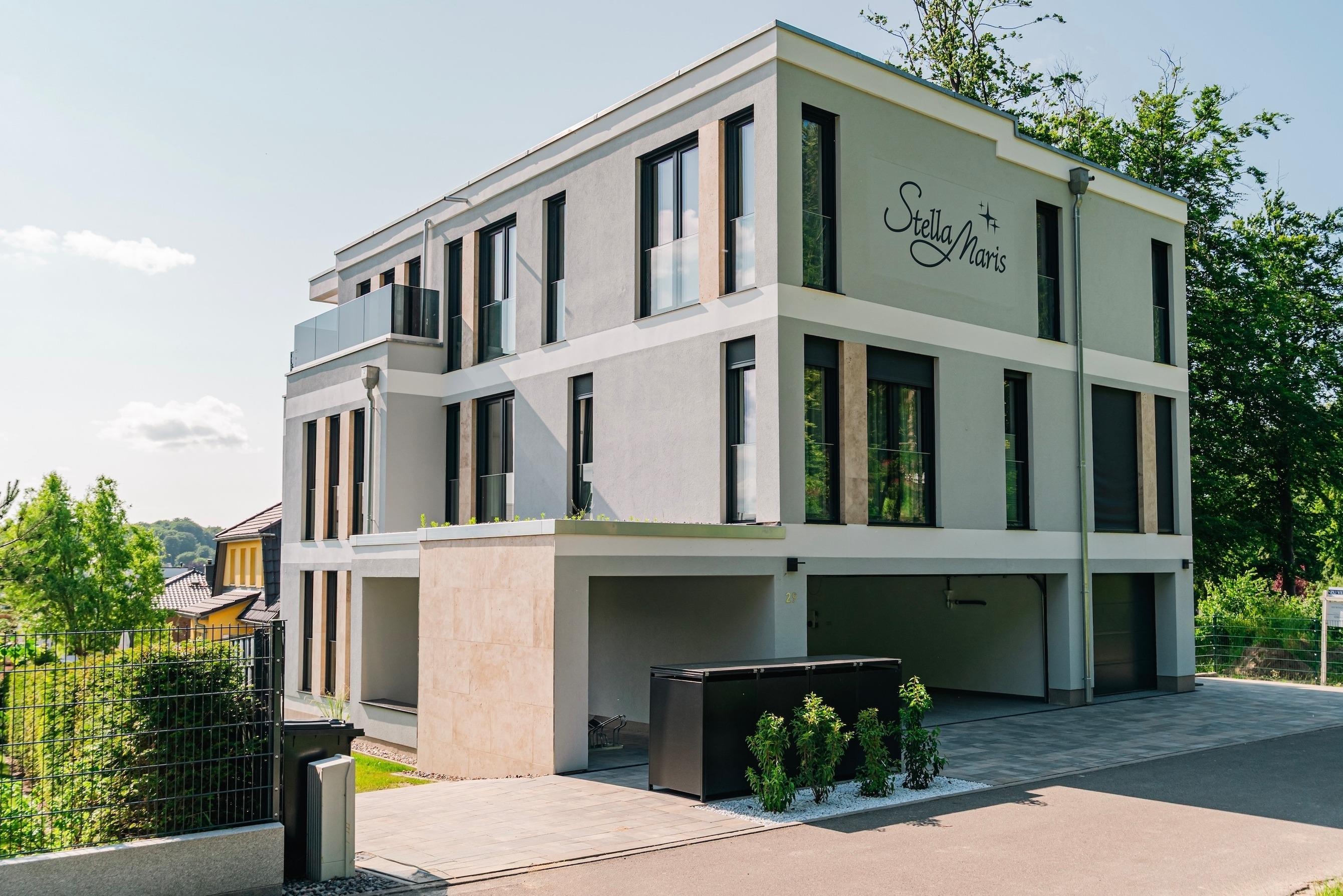 Die Villa "Stella Maris" bietet als Ferienwohnung "Poseidon" auf einer Fläche von 130 m² Platz für bis zu 6 Personen. Sie befindet sich in der 1. Etage und verfügt über 3 Schlafzimmer, darunter ein nach Süden ausgerichtetes Schlafzimmer mit Klimaanlage, sowie 2 Badezimmer eins mit Badewanne und eins mit Dusche. Zur Ausstattung gehören ein gemütlicher Kaminofen, eine Fahrradunterstellmöglichkeit und ein Parkplatz. WLAN/Internet-Anschluss ist ebenfalls vorhanden. Für die Zubereitung von Kaffee stehen sowohl eine Filterkaffeemaschine als auch eine Pad- oder Kapselmaschine bereit, und auch eine Mikrowelle ist vorhanden.