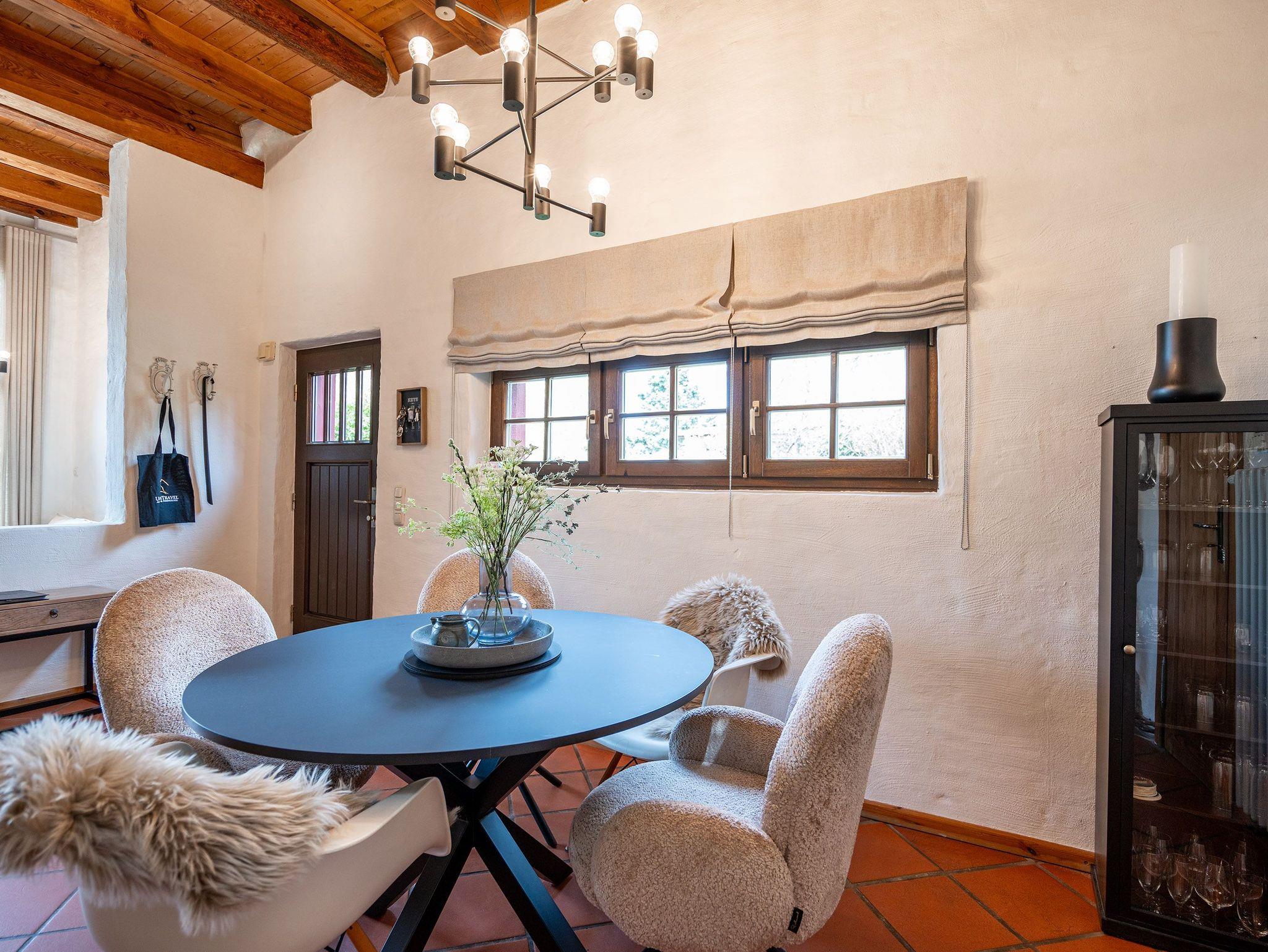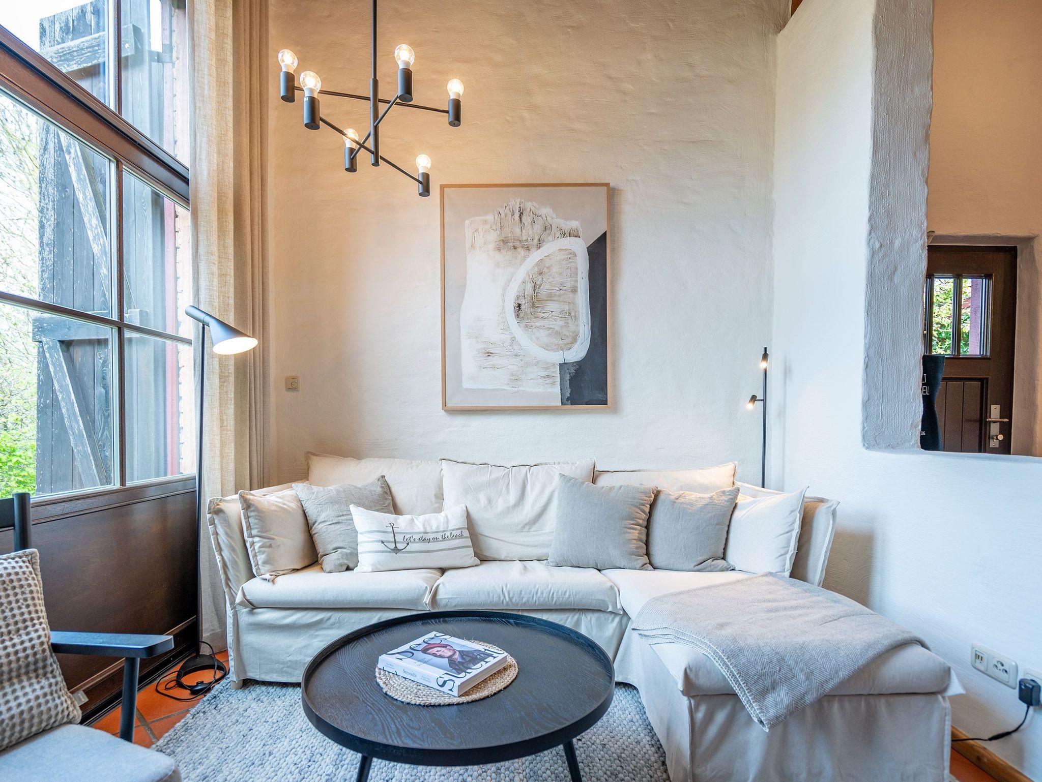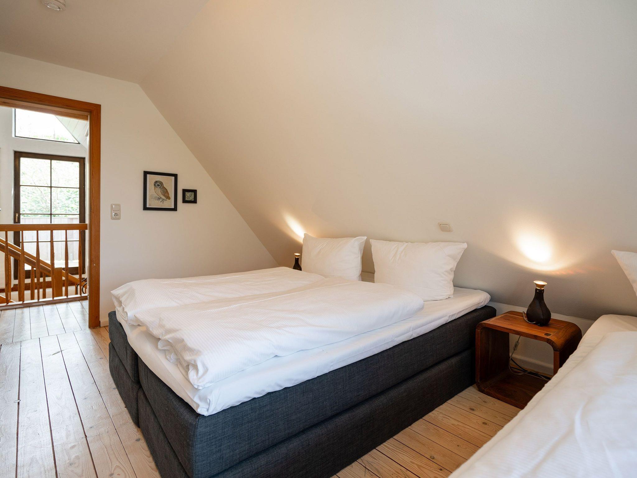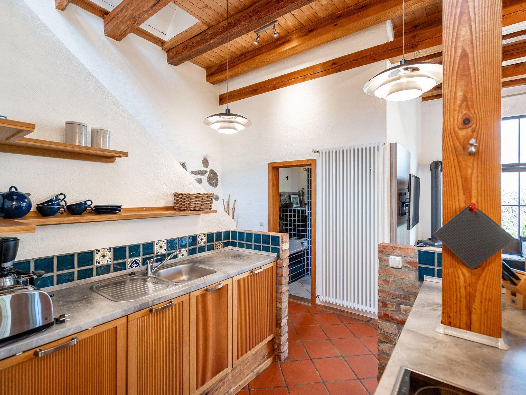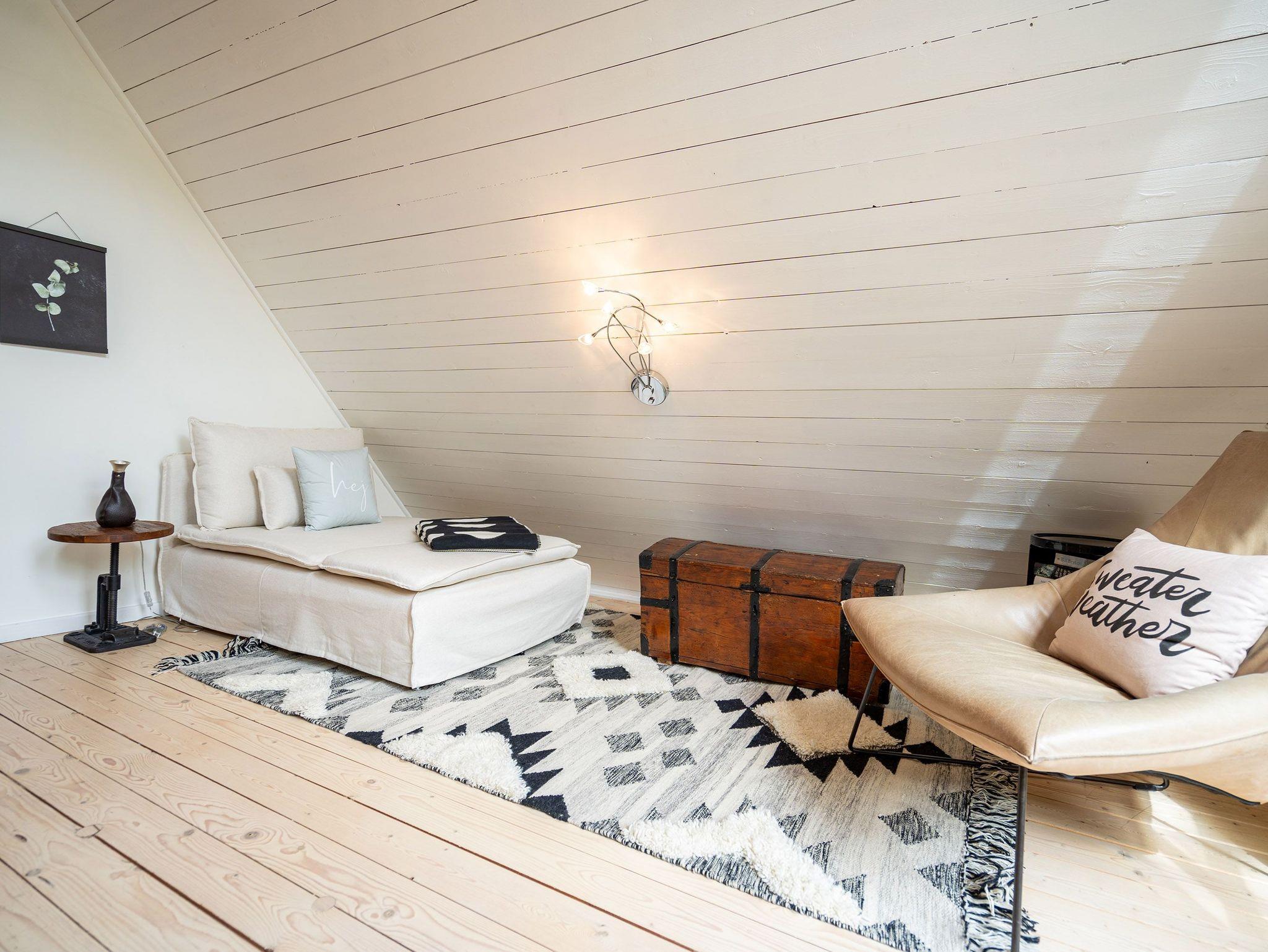 Das großzügige, helle Erdgeschoss ist in Wohnbereich, offene Küche, Bad und Sauna unterteilt. Überall lassen sich hier die alten Feldsteine der ehemaligen Scheune entdecken. Vor dem kuschligen Kamin macht man es sich auf dem Sofa gemütlich. Die offene Küche ist mit allem Komfort ausgestattet, der angrenzende Essplatz sorgt sicher für gesellige Runden, nicht nur beim Essen. Durch einen schwenkbaren Smart-TV müssen Sie auch von hier nicht auf Ihr Lieblingsprogram verzichten. Nach dem Saunagang erfrischt man sich im Bad mit Badewanne. Im Obergeschoss erwarten Sie zwei gemütliche Schlafzimmer mit Boxspringbetten (1x 1,60m und 1x 1,60m + Einzelbett / zusätzlich Flat-TV) die einen erholsamen Schlaf garantieren. Auf der Galerie davor lädt ein gemütlicher Lese- und Spielbereich ein. Und Außen? Ein kleiner Garten, eine Terrasse und eine schöne Holzveranda bieten für jeden Gast einen Rückzugsort zum Erholen im Freien. Auf Wunsch stellen wir für unsere kleinen Gäste ein Kinderreisebett (ohne zusätzliche Matratze [&] Bettzeug) und einen Kinderhochstuhl (gegen einen Aufpreis) zur Verfügung.
