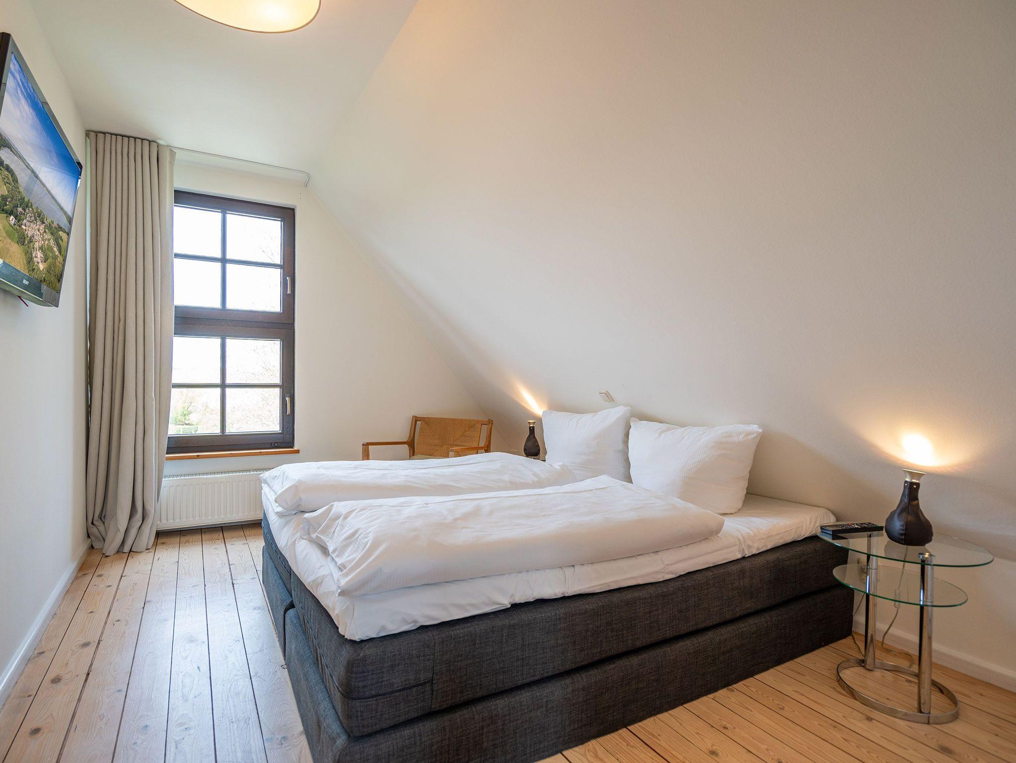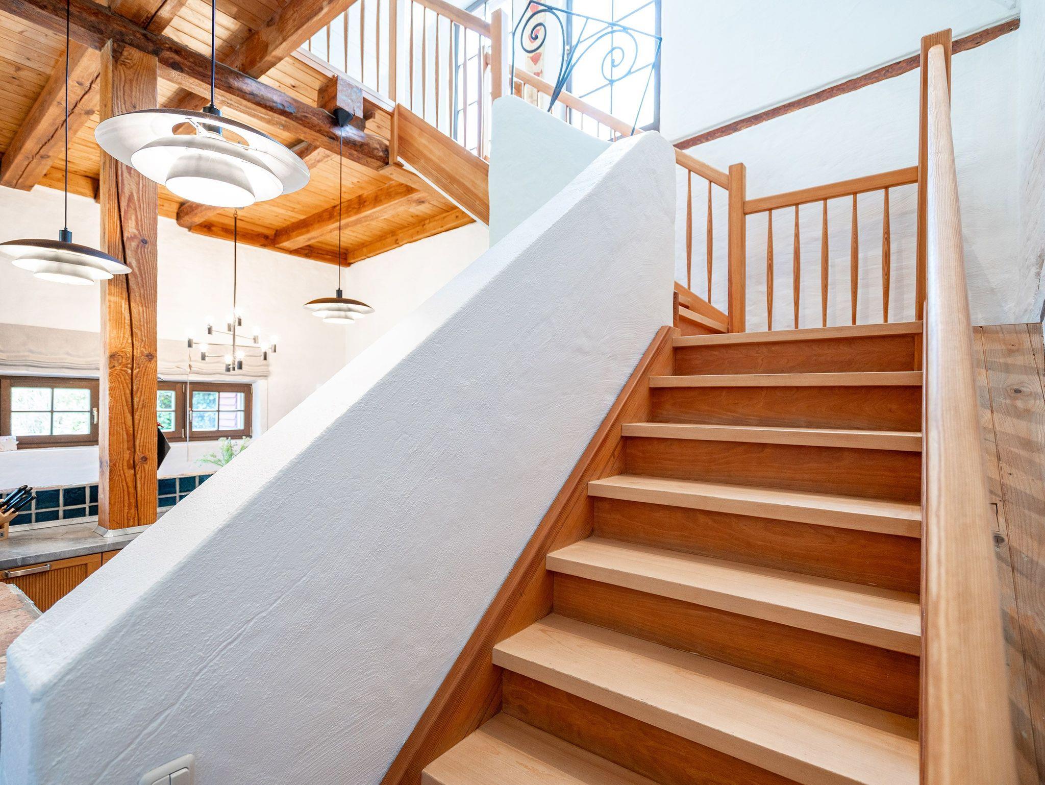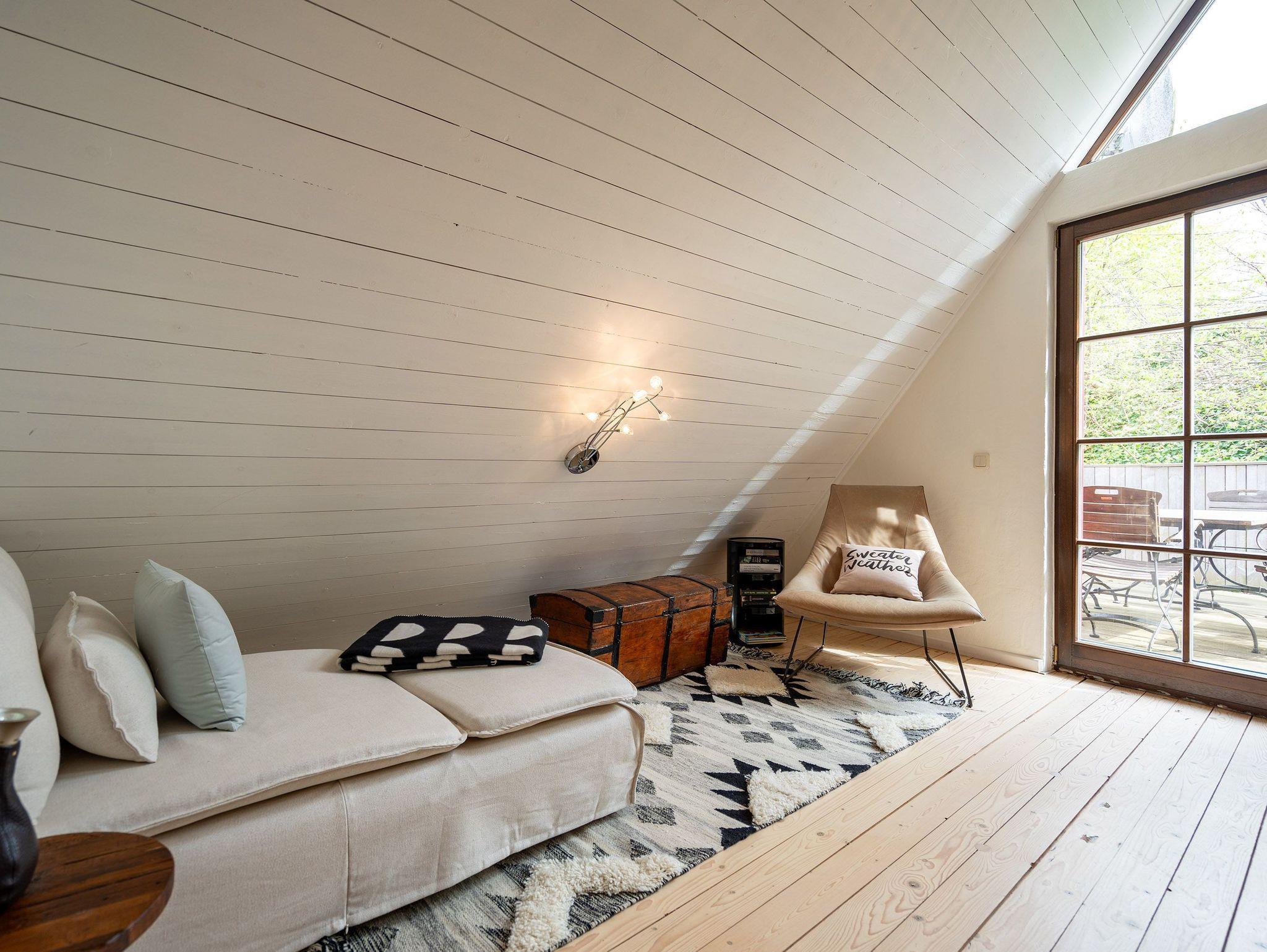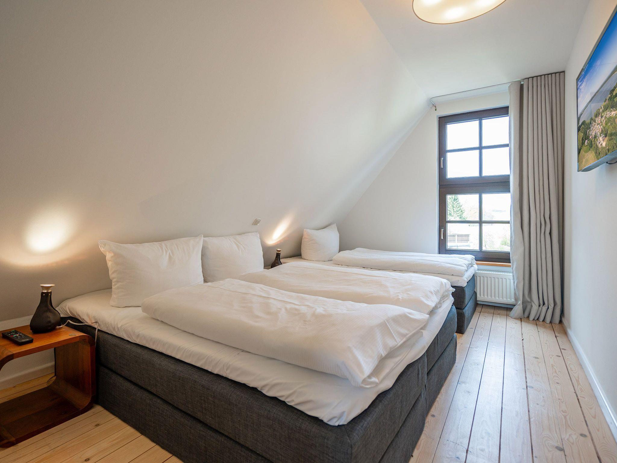 Das großzügige, helle Erdgeschoss ist in Wohnbereich, offene Küche, Bad und Sauna unterteilt. Überall lassen sich hier die alten Feldsteine der ehemaligen Scheune entdecken. Vor dem kuschligen Kamin macht man es sich auf dem Sofa gemütlich. Die offene Küche ist mit allem Komfort ausgestattet, der angrenzende Essplatz sorgt sicher für gesellige Runden, nicht nur beim Essen. Durch einen schwenkbaren Smart-TV müssen Sie auch von hier nicht auf Ihr Lieblingsprogram verzichten. Nach dem Saunagang erfrischt man sich im Bad mit Badewanne. Im Obergeschoss erwarten Sie zwei gemütliche Schlafzimmer mit Boxspringbetten (1x 1,60m und 1x 1,60m + Einzelbett / zusätzlich Flat-TV) die einen erholsamen Schlaf garantieren. Auf der Galerie davor lädt ein gemütlicher Lese- und Spielbereich ein. Und Außen? Ein kleiner Garten, eine Terrasse und eine schöne Holzveranda bieten für jeden Gast einen Rückzugsort zum Erholen im Freien. Auf Wunsch stellen wir für unsere kleinen Gäste ein Kinderreisebett (ohne zusätzliche Matratze [&] Bettzeug) und einen Kinderhochstuhl (gegen einen Aufpreis) zur Verfügung.