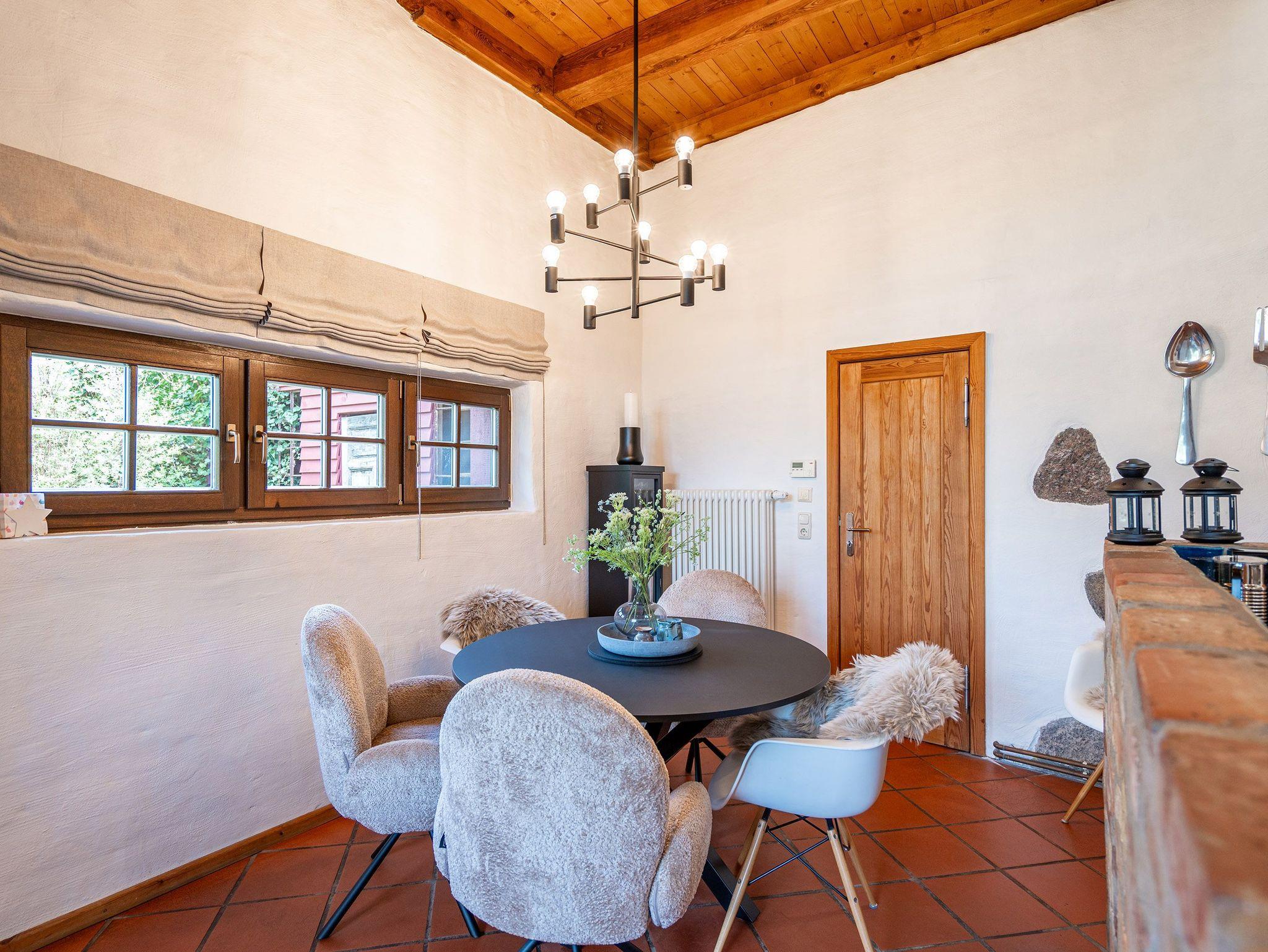 Kuschlig wohnen in der Roten Scheune! Unter dem charmanten Reetdach entdecken Sie ein außergewöhnliches Wohnerlebnis auf zwei Ebenen. Liebevoll bis ins kleinste Detail gestaltet, finden Sie hier ein traumhaftes Urlaubsziel für 5 Personen und ein Kleinkind. Nutzen Sie die hauseigene Sauna, entspannen Sie sich vor dem Kaminofen oder relaxen Sie auf der Terrasse und im Garten. Zwei Pkw-Stellplätze befinden sich direkt am Haus.