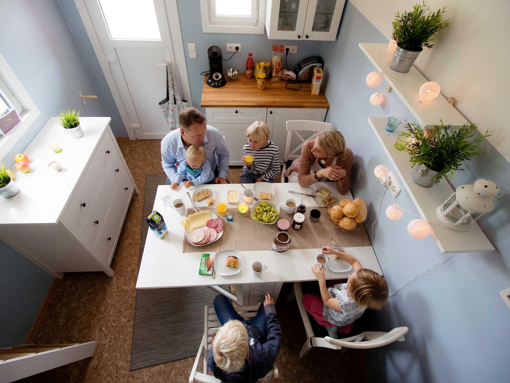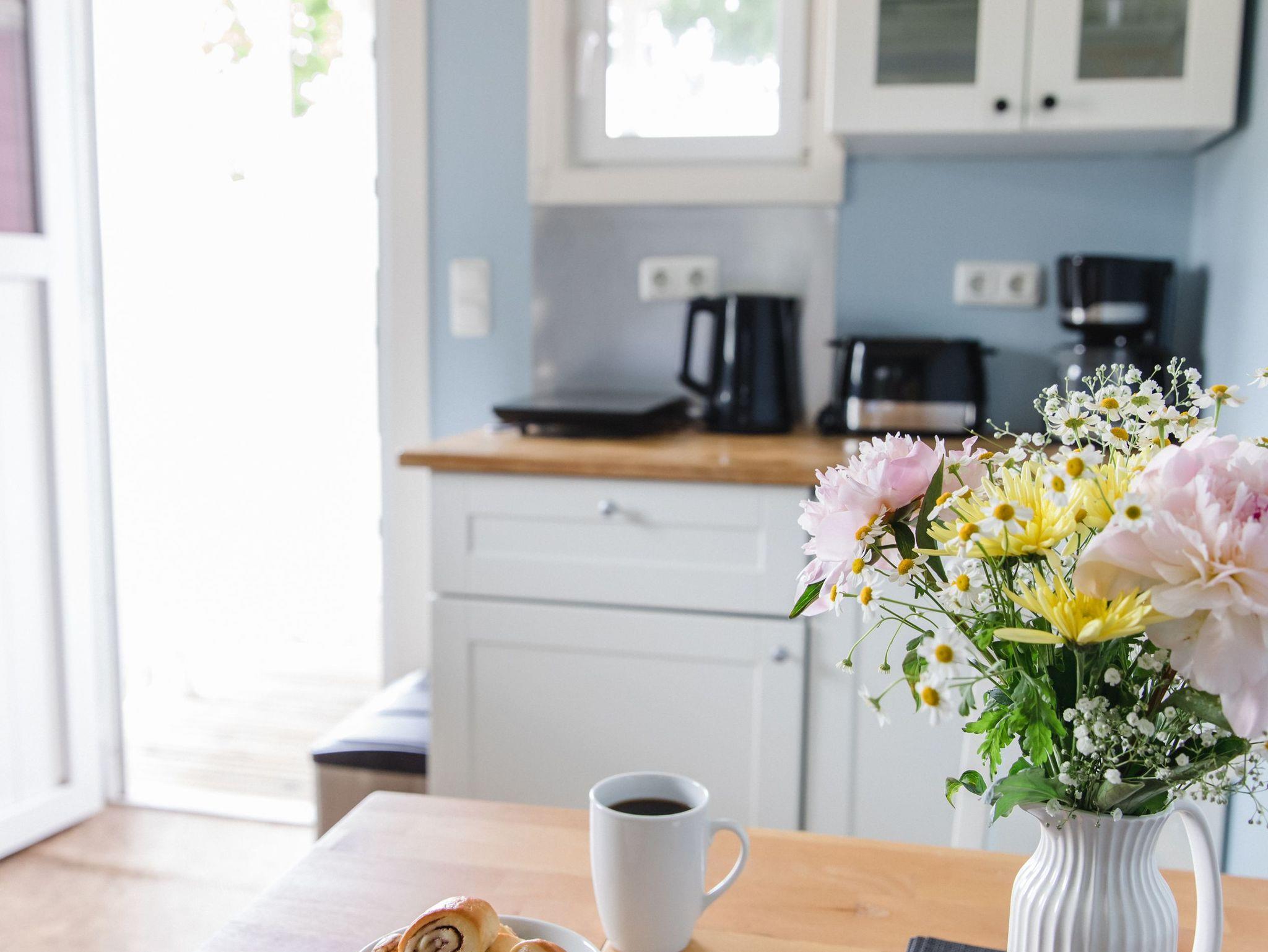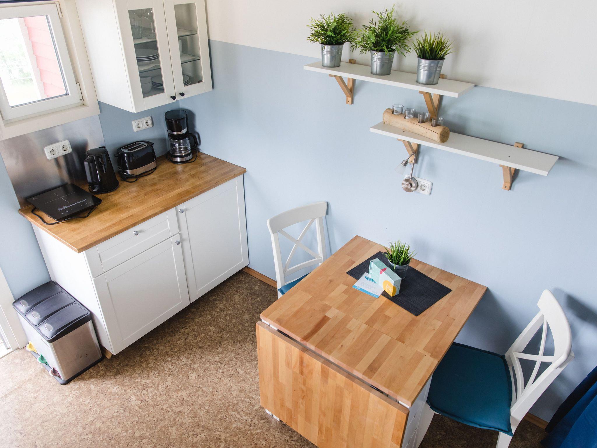 Das Schwedenhaus ist komplett mit Geschirr, Kaffeemaschine, Kochplatten etc. ausgestattet und ermöglicht so das gemütliche Familienfrühstück oder Abendessen drinnen wie auch draußen auf der geräumigen Veranda mit Seeblick. Das Schwedenhaus ist für max. 4 Personen geeignet.